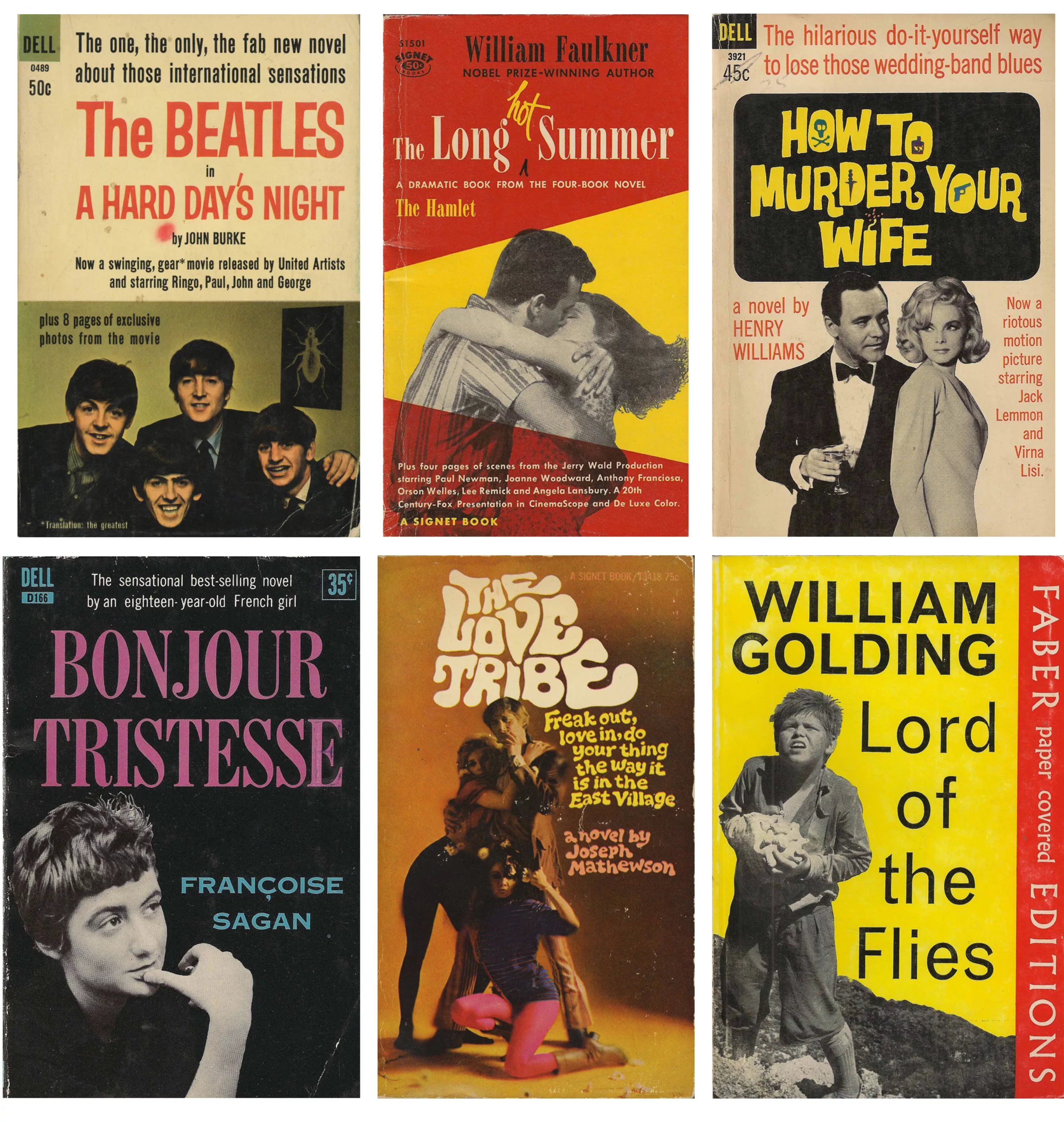 Certains livres cultes sont adaptés à l’écran – comme Mutiny on the Bounty en 1935 (cf image ci-dessous) – et les couvertures évoluent peu à peu en suivant la même construction que les affiches de films, surtout aux États-Unis dans les années 1950.