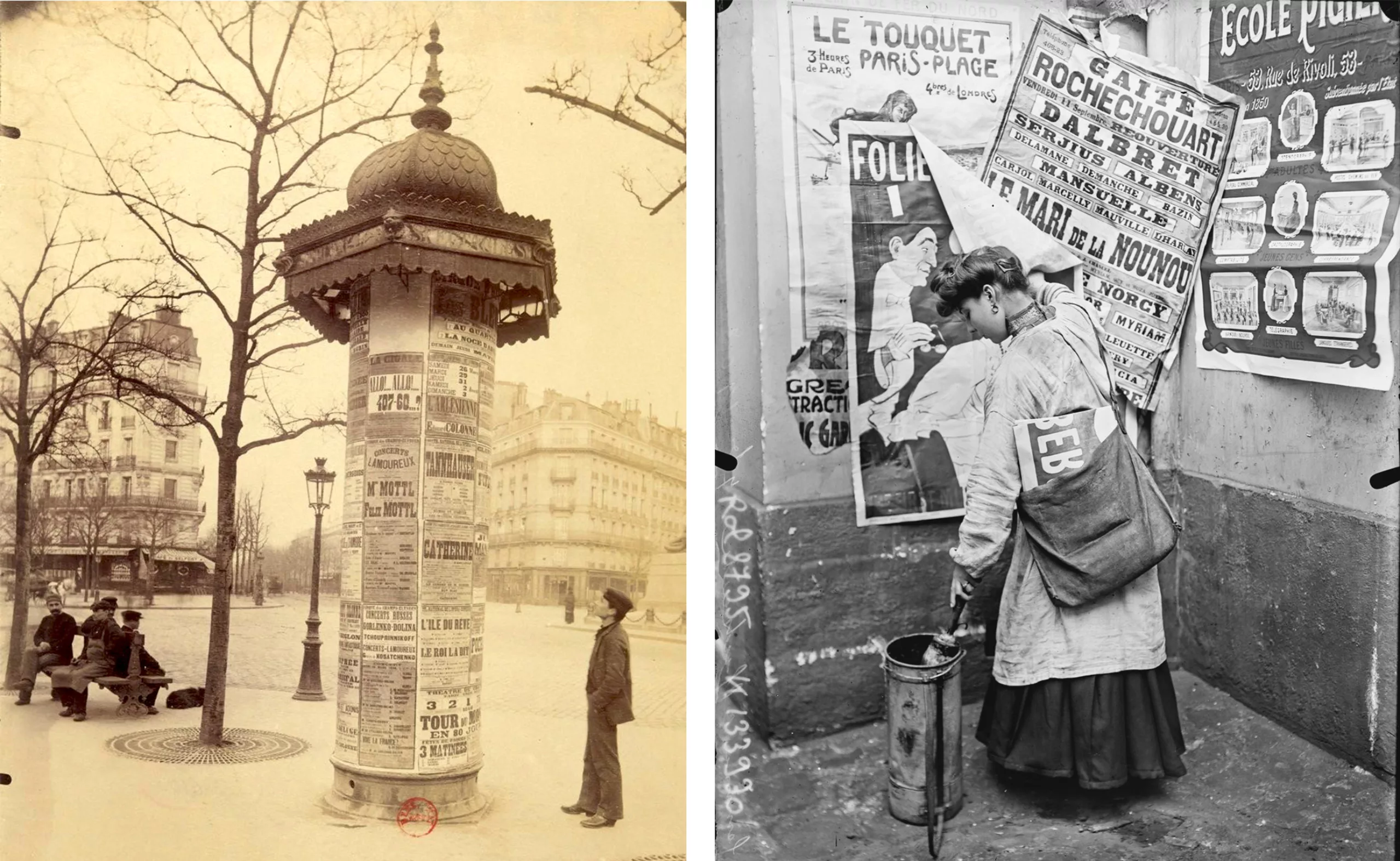 “Les murailles autrefois laissées à la réclame banale ou purement industrielle, les palissades froides et nues de nos édifices en construction, sont devenues de véritables musées où la masse pensante, amoureuse d’art, trouve à satisfaire quelques-unes de ses aspirations. Ce mode d’éducation était fait pour la séduire : (…) la rue, qu’elle aime, s’est faite plus colorée, plus chantante qu’elle ne l’a jamais été.” Lit-on dans le recueil Les affiches illustrées (1886-1895) d’Ernest Maindron, 1896. Et c’est à chaque fois dans un contexte très chargé visuellement que naît le besoin d’aller vers plus de simplicité et de lisibilité, ou de rompre avec le passé.