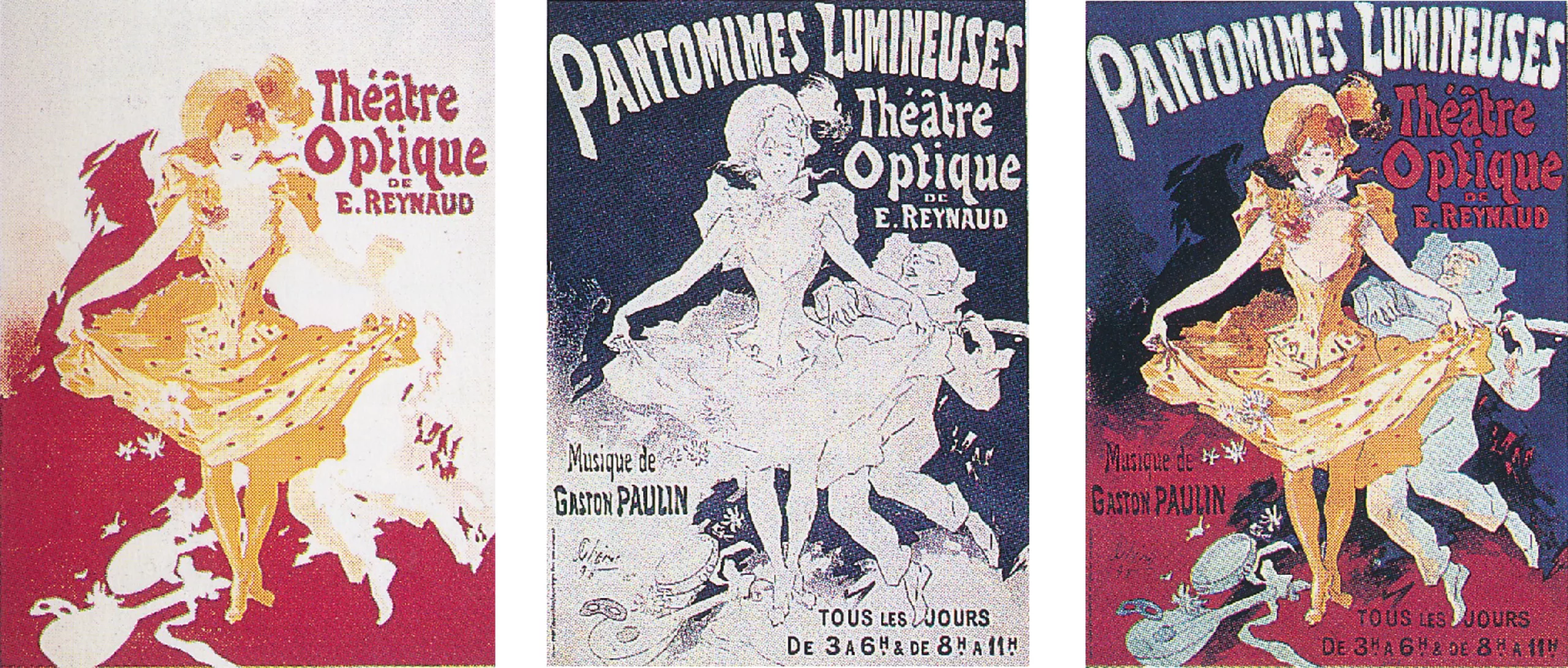 Vers 1860, la chromolithographie se perfectionne et vient révolutionner l’impression en y apportant des couleurs : elle permet de peindre à la main sur la pierre, couleur après couleur (il faut parfois plus de 15 pierres colorisées pour former une seule image, en passages successifs comme le ferait une imprimante) et sera utilisée jusqu’à bien après la Seconde Guerre mondiale. L’illustrateur Jules Chéret en France met son art au service de l’industrie. Il développe cette technique d’impression avec 3 ou 4 couleurs en passages successifs après un voyage à Londres en 1860 (voir les affiches ci-dessous, rouge et orange, puis bleu foncé) en peignant une silhouette sur fond uni et sans perspective accompagnée d’un texte minimal ; ce style deviendra la référence en Europe et aux États-Unis.