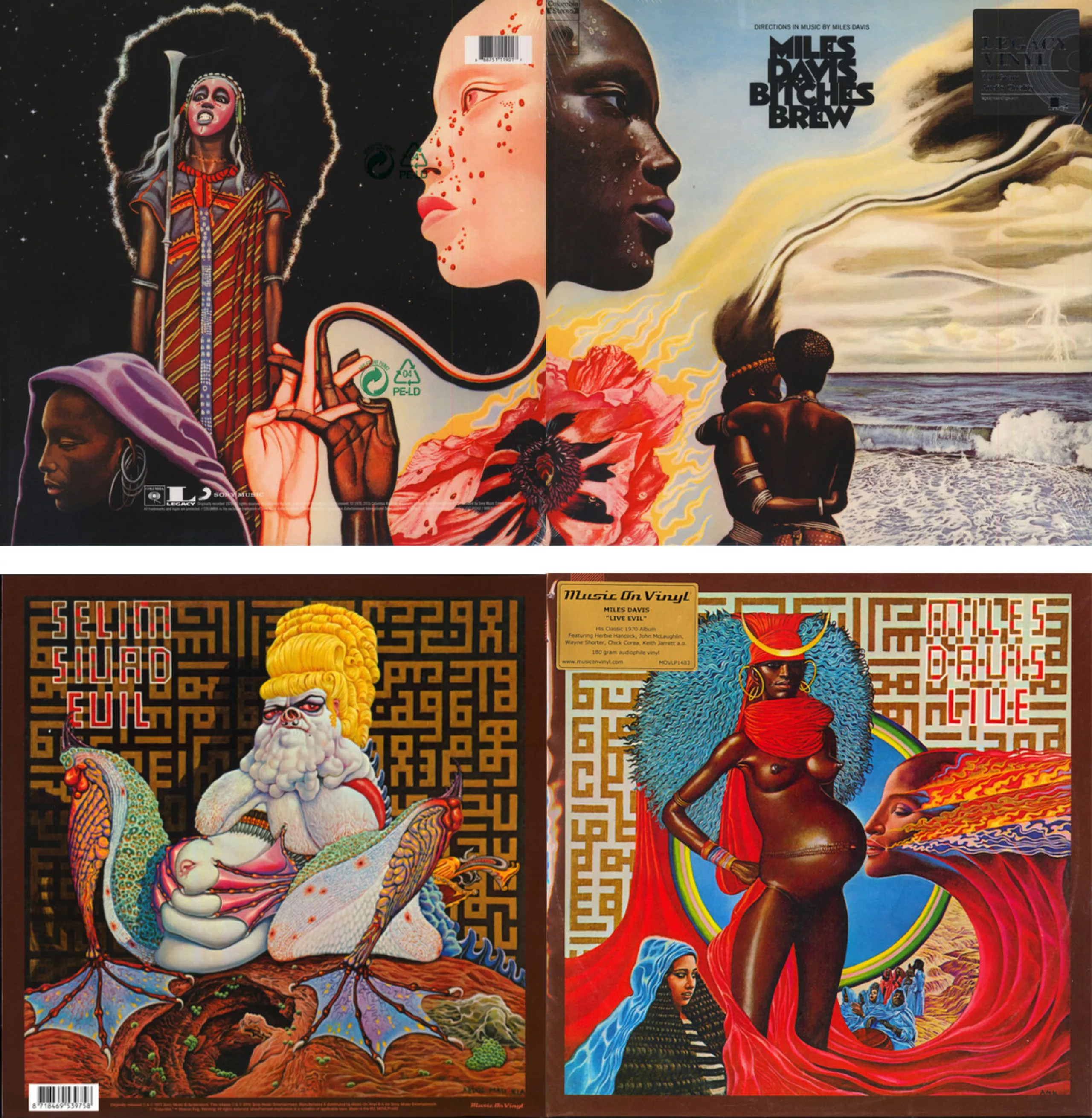 Petite anecdote, pour la couverture de Live-Evil ci-dessus, David lui avait demandé de peindre un crapaud pour faire le diable… Klarwein décide alors de peindre J. Edgar Hoover en drag queen reptilienne dégoulinante. Pour mieux comprendre ce choix, Hoover était le premier directeur du FBI ; il s’est servi de ses fonctions pour mener ses propres vendettas contre des organisations ou des personnalités qu’il jugeait dangereuses, notamment contre Martin Luther King qu’il qualifiait de “négro le plus dangereux de la nation”. Il constitue un faux dossier pour prouver à tout prix l’appartenance de King au communisme et son soit-disant comportement sexuel déviant, avant que le pot-aux-roses et les pratiques illégales de Hoover ne soient dévoilées en 1971, l’année de création de l’album.