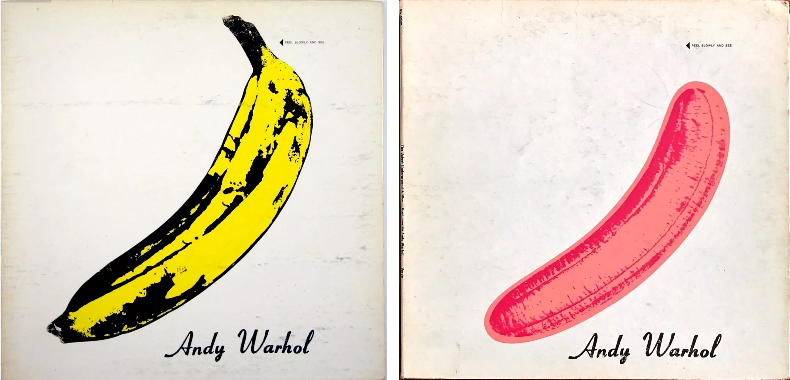 “L’album à la banane” du Velvet Underground & Nico, est enregistré à la Factory de Warhol qui produit l’album. La fameuse pochette à la banane autocollante signée Andy Warhol (ce qui prête à confusion parce que ni le groupe ni le titre de l’album ne sont en réalité mentionnés sur le recto de la pochette ; les gens pensaient que c’était Andy qui chantait), invite les usagers à la “peler doucement et voir”, avant de découvrir sous cet autocollant une banane rose chair assez suggestive…
