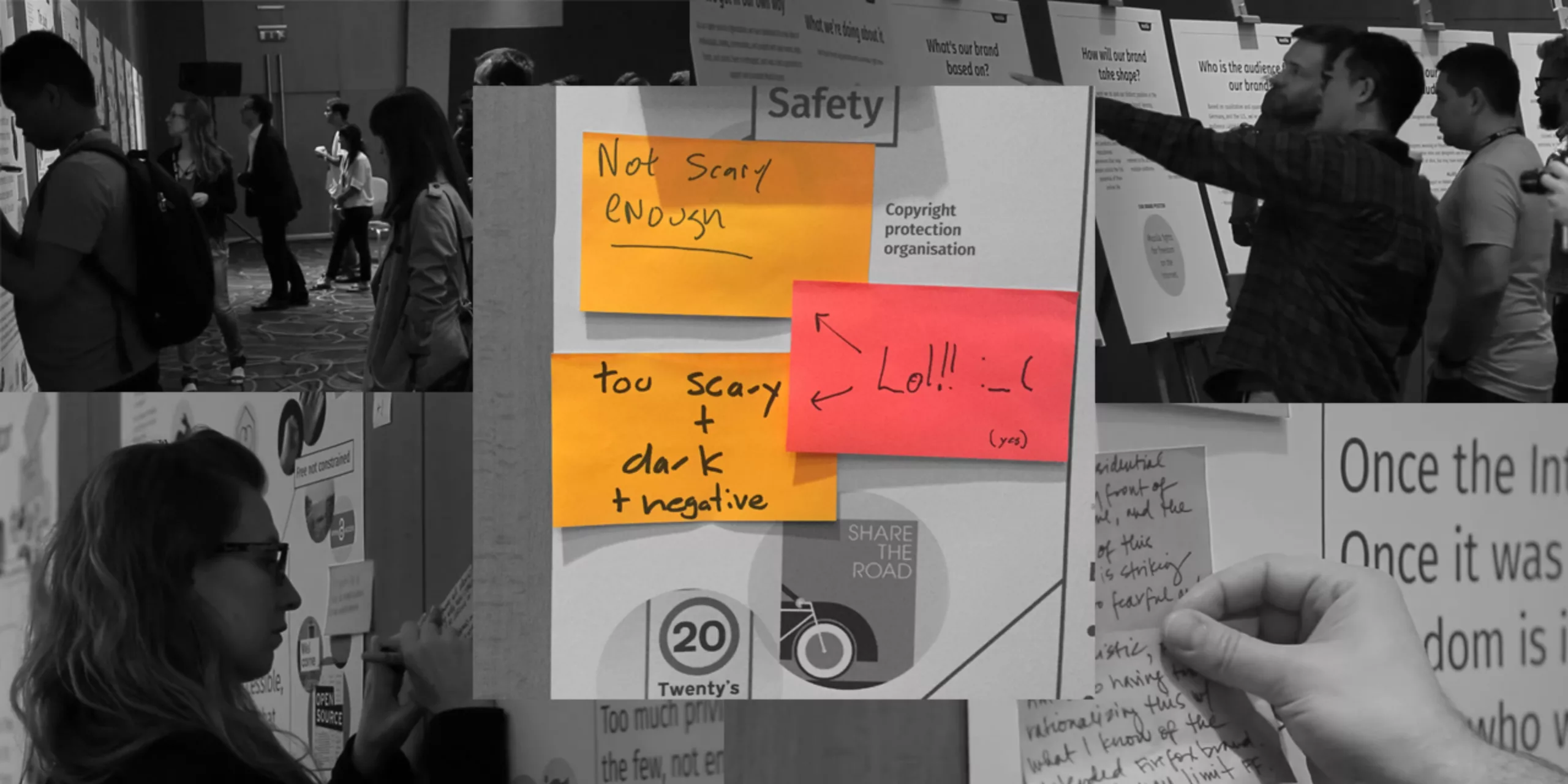 De ce brief ont été tirées les 7 valeurs de Mozilla puis le Mozilla Open Design project, invitant les gens à collaborer “en vrai” avec des post-it et crayon :
