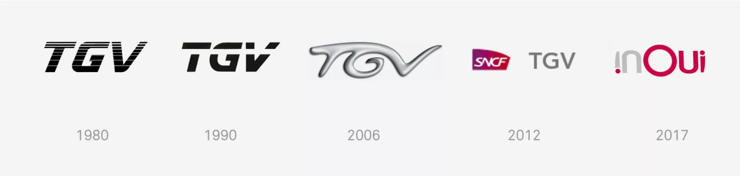On se souviendra du logo TGV des années 80 et 90, dont la simplicité n’a pas à démériter au regard des tendances actuelles de logos minimalistes. On se souviendra aussi du lancement du logo TGV qui dessine un escargot lorsqu’on le retourne (l’un des premiers “bashing de logo” !). Pour le coup, avec l’ambigramme “inoui”, pas de risque à retourner le logo !