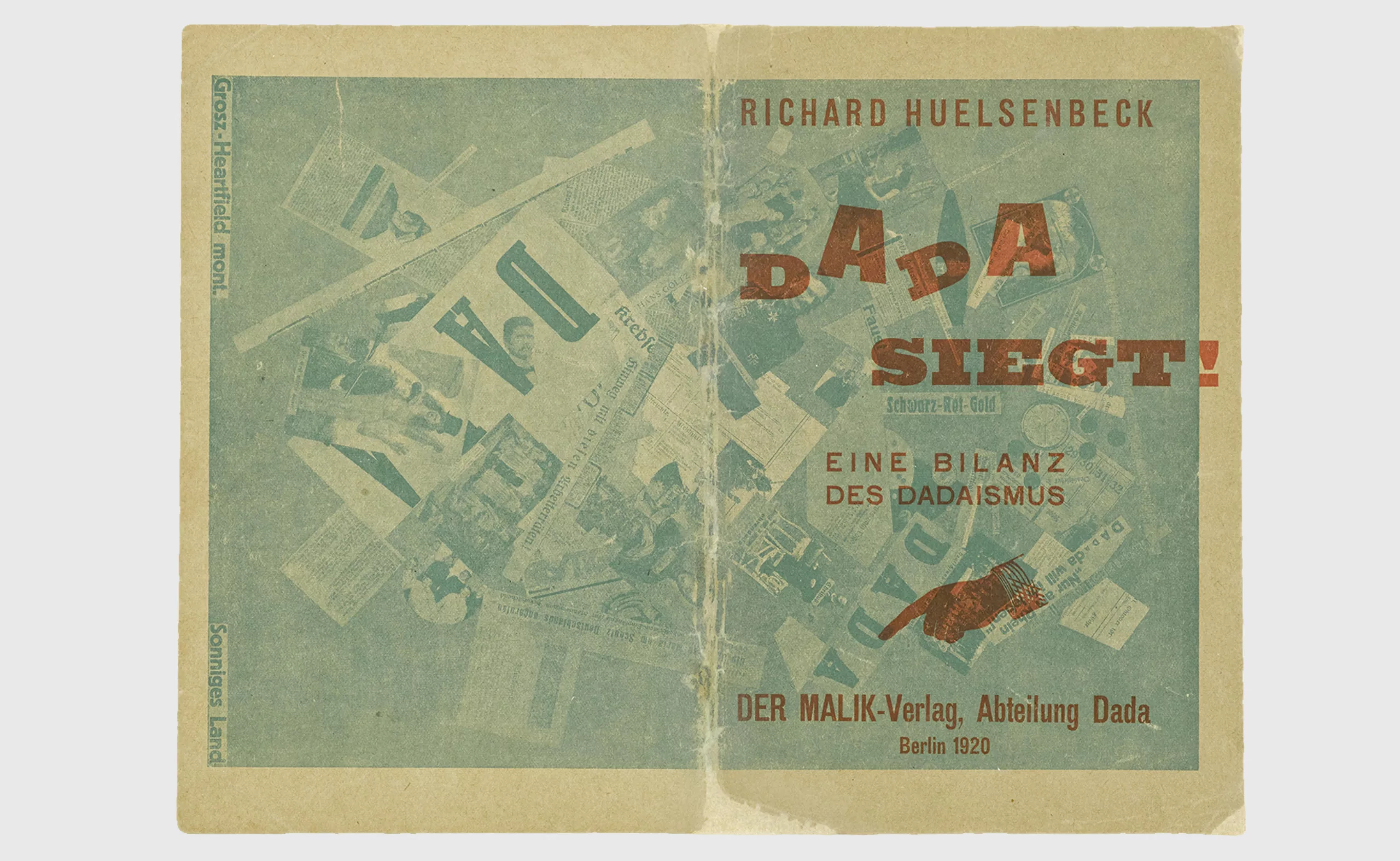 Le mouvement dada célèbre la mécanisation à travers l’expression artistique ou graphique et Heartfield préfère ainsi se qualifier de “photomonteur”, à la sémantique plus technique, qu'”artiste”. Heartfield révolutionne le monde de l’imprimerie et du graphisme et éclatant tout d’abord la norme verticale/horizontale du texte en jouant avec les caractères typographiques qu’il éparpille dans ses œuvres dada. En 1915, il a l’idée de verser du plâtre autour des blocs de caractères pour les maintenir dans un autre angle pendant l’impression, ce qui permet de rompre avec la tradition linéale du mot et de la lettre. John Heartfield considère le dada comme “un effort pour perturber les impulsions élevées de l’intellect – le spirituel, le mystique et le subjectif – mais uniquement pour atteindre la la vérité qui se cache derrière elles. “