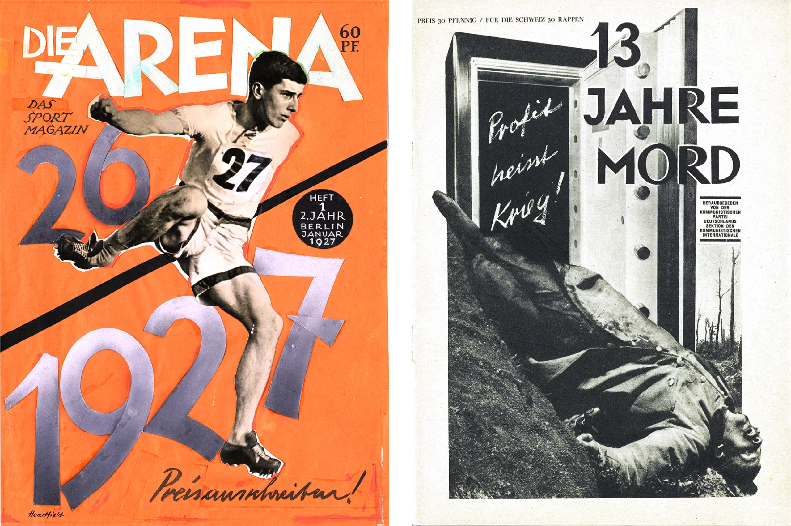 Heartfield a le don pour révéler instantanément au grand public l’évidence cachée des manigances des grandes institutions. Son travail est publié dans les parutions de Jan Tschichold (l’Art de la publicité) aux côtés des autres graphistes de la Typographie Nouvelle. Dès 1929 Heartfield entame sa longue collaboration avec un hebdomadaire communiste très réputé, l’AIZ (Arbeiter Illustrierte Zeitung, le Journal illustré des travailleurs), le magazine le plus diffusé durant la République de Weimar, dans lequel il publiera 237 photomontages le plus souvent engagés contre la montée du nazisme. Les collages d’Heartfield seront exposés à Berlin en 1932 dans l’exposition “Fotomontage” aux côtés des avant-gardistes russes El Lissitzky et Alexander Rodtchenko, ou de pionniers du Bauhaus comme Herbert Bayer ou László Moholy-Nagy.