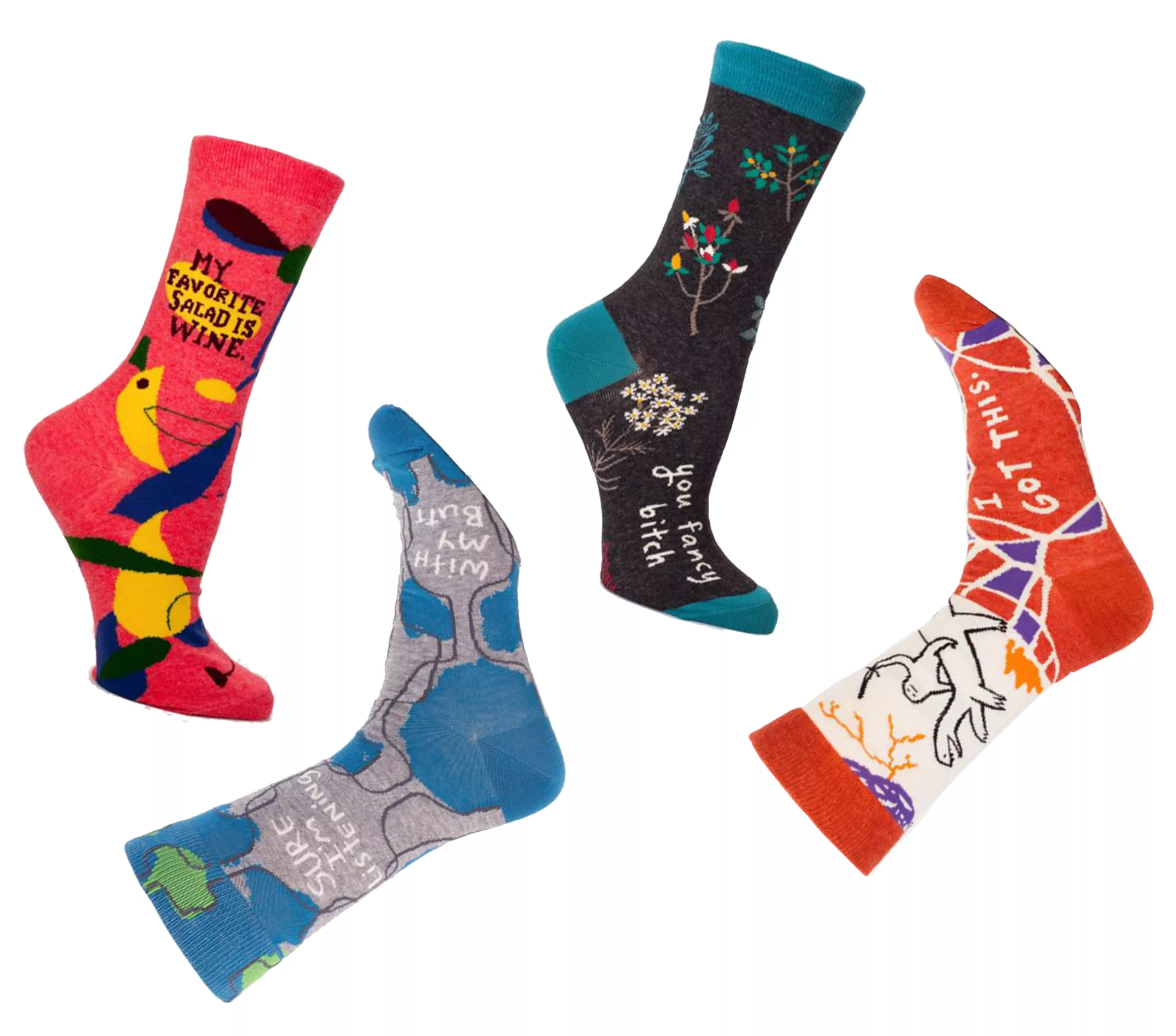 Des chaussettes bad-ass faites avec amour et sans prise de tête, à vocation altruiste puisqu’elles soutiennent aussi médecin sans frontières. Sur vos pieds, des messages plus ou moins sérieux comme “ma salade préférée, c’est le vin”, “bien sûr que je t’écoute… avec mon cul”, “on voit du chou kale partout… même sur des chaussettes”. Voilà voilà.