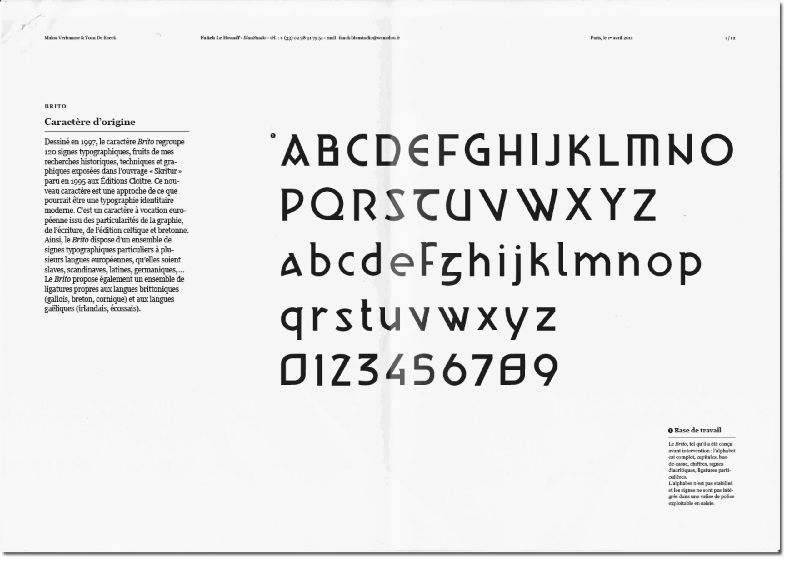 S’il insiste lui aussi pour qu’on n’oublie pas le tilde sur son ñ (« sinon ça se prononce “Fantche” et non “Fanch” »), le graphiste et typographe Fañch Le Henaff se passionne depuis une vingtaine d’années pour les particularismes de la graphie du breton. C’est ainsi qu’il a créé en 1995 le caractère Brito prenant en compte les signes diacritiques et autres lettres propres à la langue bretonne.