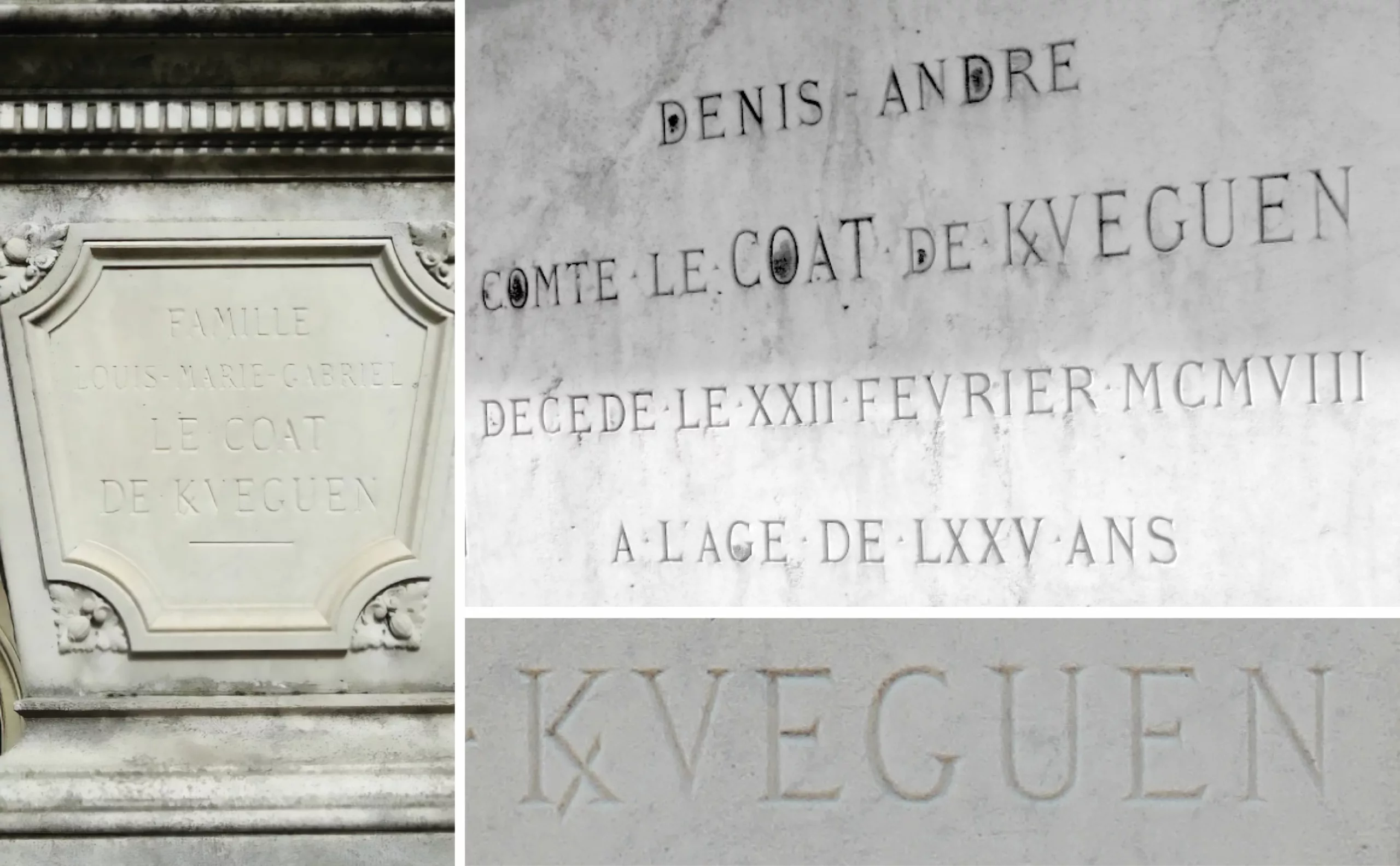 Des traces de survivance du K barré que s’amuse toujours à pister Yann Riou. « Sur les sites de généalogie, dans les répartitions géographiques, c’est plus souvent hors de Bretagne qu’on va en trouver : île Maurice, La Réunion, région parisienne, le Var… Des endroits où les Bretons et Bretonnes se sont expatriées au fil des siècles et où ils ont réussi à garder, plus facilement qu’ici, leur particularité orthographique. Il est d’ailleurs intéressant de voir que lorsqu’on croise des K/Bidi ou des K/Ros aujourd’hui en Bretagne, ce sont généralement des gens qui sont revenus après deux ou trois générations d’exil. » S’il semble avoir presque totalement disparu du paysage, le Ꝃ se déniche également à de rares occasions aux détours du fronton d’une maison ou sur d’anciennes pierres tombales.