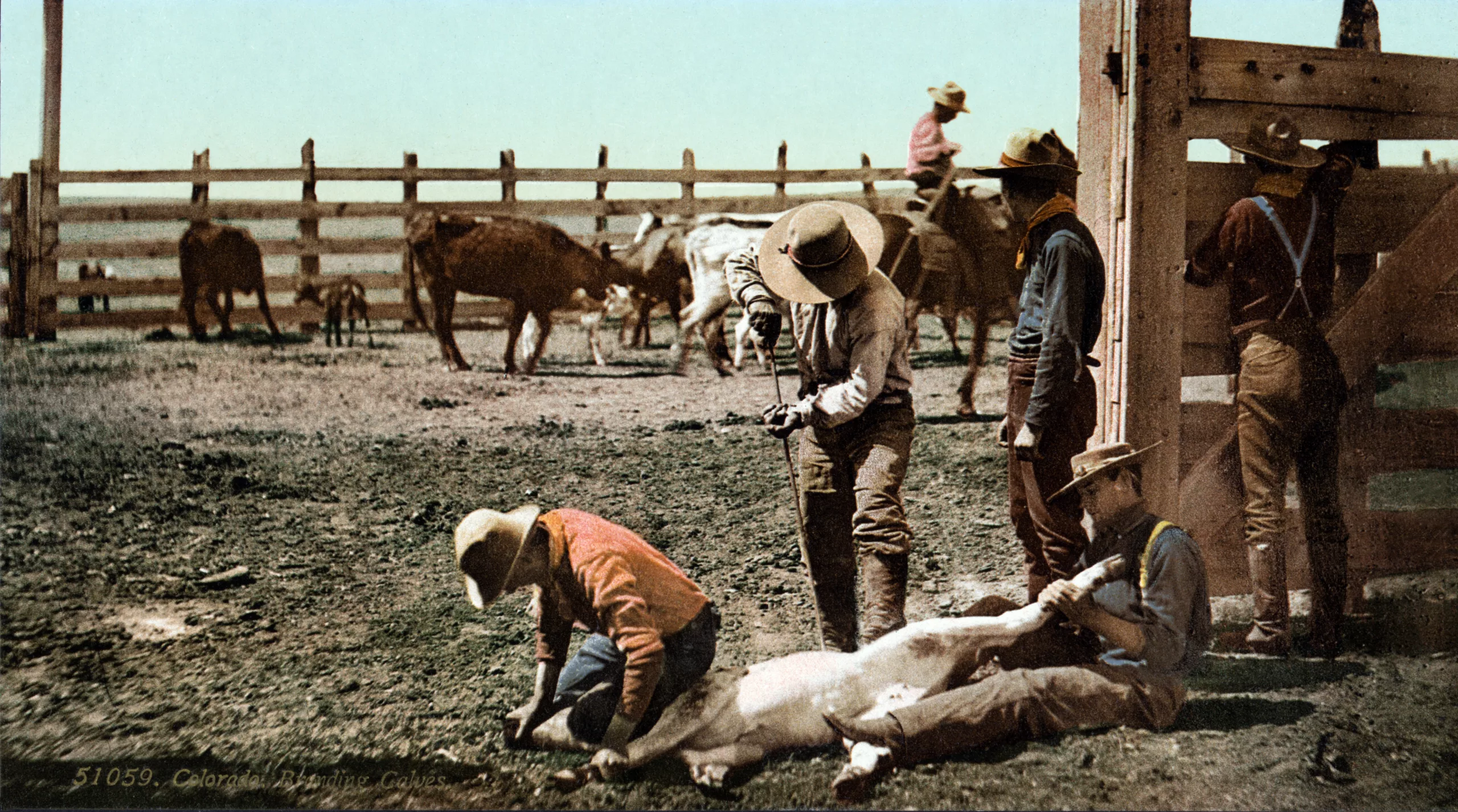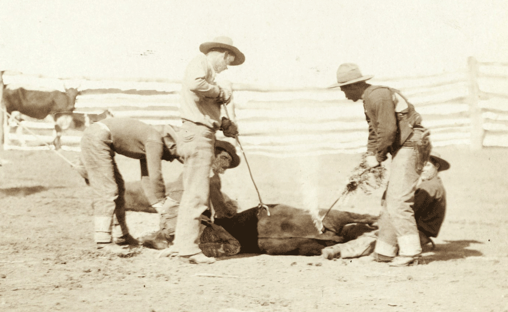 Les espagnols étaient les rois du branding. Ils avaient pour habitude de marquer leurs possessions du blason familial, y compris leur bétail. Au début du 16e siècle, les conquistadors espagnols débarquent en Amérique et importent leurs troupeaux par bateau. Ils construisent un empire du Pérou au Mexique, et les fortunes se créent avec l’élevage des bêtes, qui possèdent les marques de leurs propriétaires. Peu à peu, les rancheros remontent jusqu’au Nord de l’Amérique, au “Nouveau-Mexique” (sud-ouest américain) au Texas et en Californie où les descendants de conquistadors font travailler la population locale. Au départ des espagnols vers 1820, les terrains sont rachetés par les colons, et certains américains travaillent en tant que vaqueros, les cowboys.