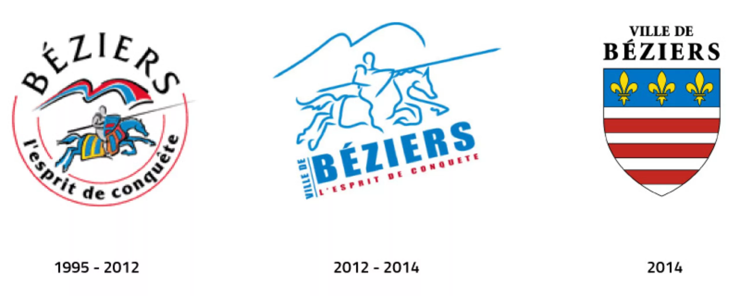 Fini “l’esprit de conquête” cher à l’ancien maire de Béziers Raymond Couderc. Son successeur, Robert Ménard (FN), a visiblement décidé de changer le logo de la Ville qui représentait un chevalier lancé, épée en main, sur son cheval au galop. Ce logotype reprenait les grandes lignes du sceau de Raymond-Roger Trencavel, l’un des derniers vicomtes de Béziers. (source)