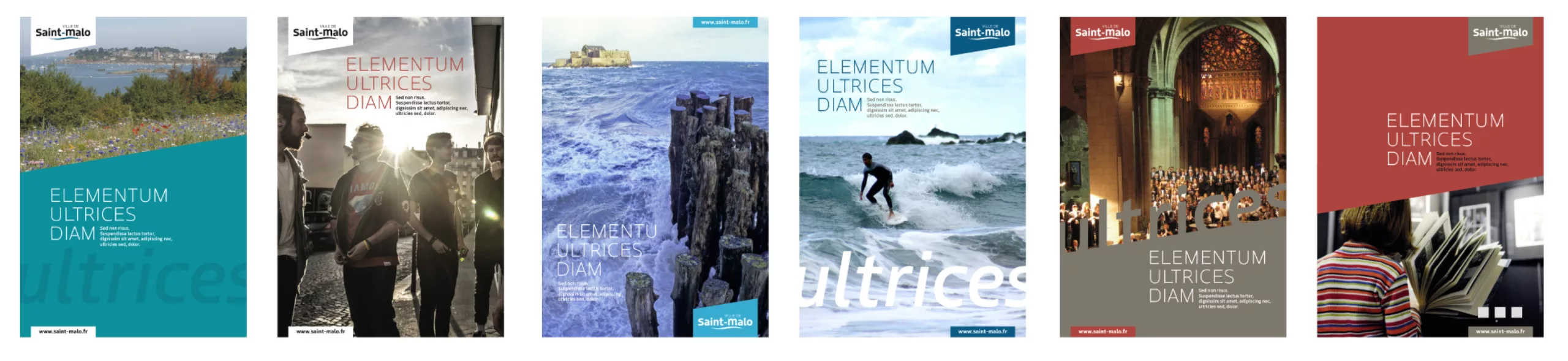 Côté couleurs, c’est évidemment un bleu qui a été choisi, une nuance profonde en rapport avec la situation littorale de la ville. Mais 5 déclinaisons de couleurs seront utilisées : bleu marine pour l’institutionnel, le cyan pour l’économie et le milieu marin, le vert pour l’écologie, le rouge orangé pour la culture et la communication, et le marron pour l’histoire et le patrimoine.