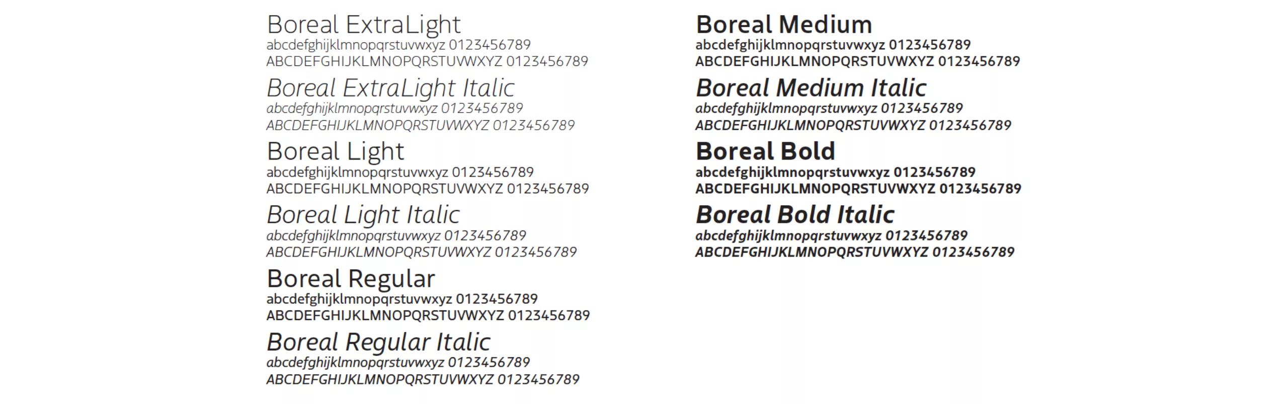 Côté typographie, c’est la Boreal, de Jean-Baptiste Levée (Production Type) initialement dessinée pour Air Inuit.