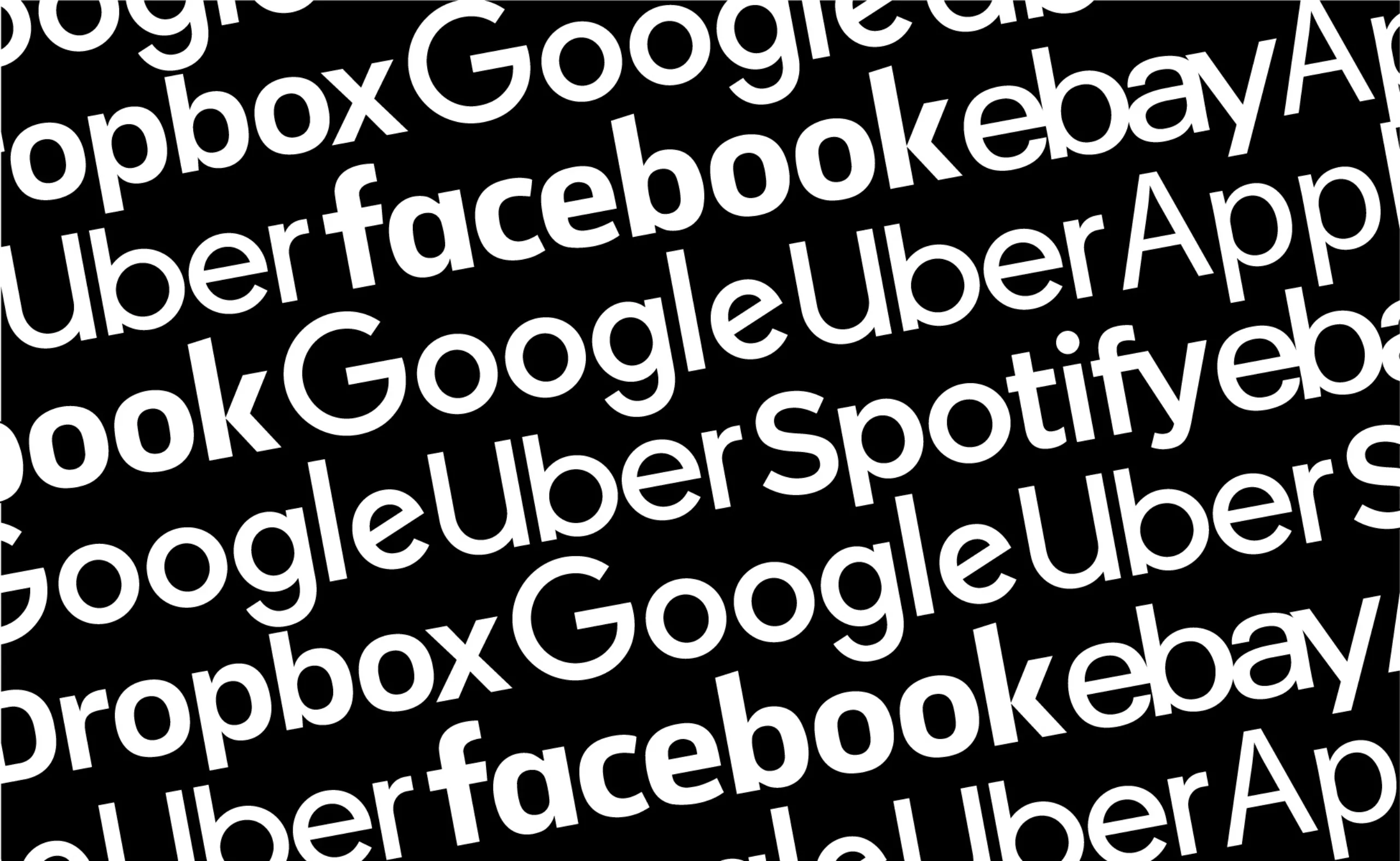 Appliqué au design graphique, on voit fleurir aujourd’hui et depuis quelques années une tendance de logos flat (plats, sans effets), avec des linéales géométriques sans serif (avenir, helvetica, proxima nova), dans des couleurs monochromes. Et il faut croire que ça plaît, car cette homogénéisation des identités de marques tous domaines confondus est aujourd’hui une réalité confortablement installée et visible aux quatre coins du monde. Ce “style minimaliste” (ou “neutral“) a été propulsé par les géants de la Silicon Valley (Facebook, Uber, Google et Spotify) en 2010 lorsqu’elles abandonnent les effets 3D et de textures de leurs anciennes identités, en parallèle avec les évolutions technologiques. Et toutes les agences jouent le jeu… nous compris.
