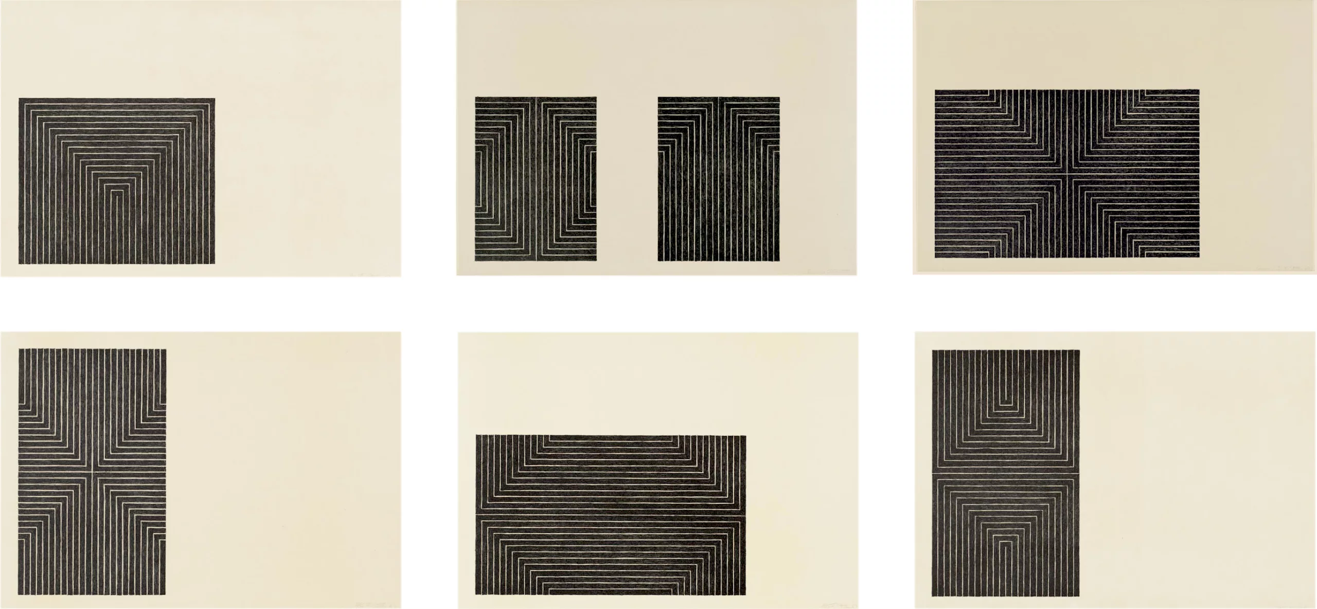 Franck Stella (ci-dessus), figure majeure de l’art minimaliste dira que “ce que vous voyez est ce que vous voyez”, empêchant le spectateur d’analyser ce qu’il voit, et l’invitant à ne voir que l’efficacité de la forme telle qu’elle est, sans superflu. Héritier du Bauhaus, issu lui-même du mouvement de Stijl et du suprématisme russe, le minimalisme est avant tout un langage visuel qui symbolise la foi dans la forme pure.