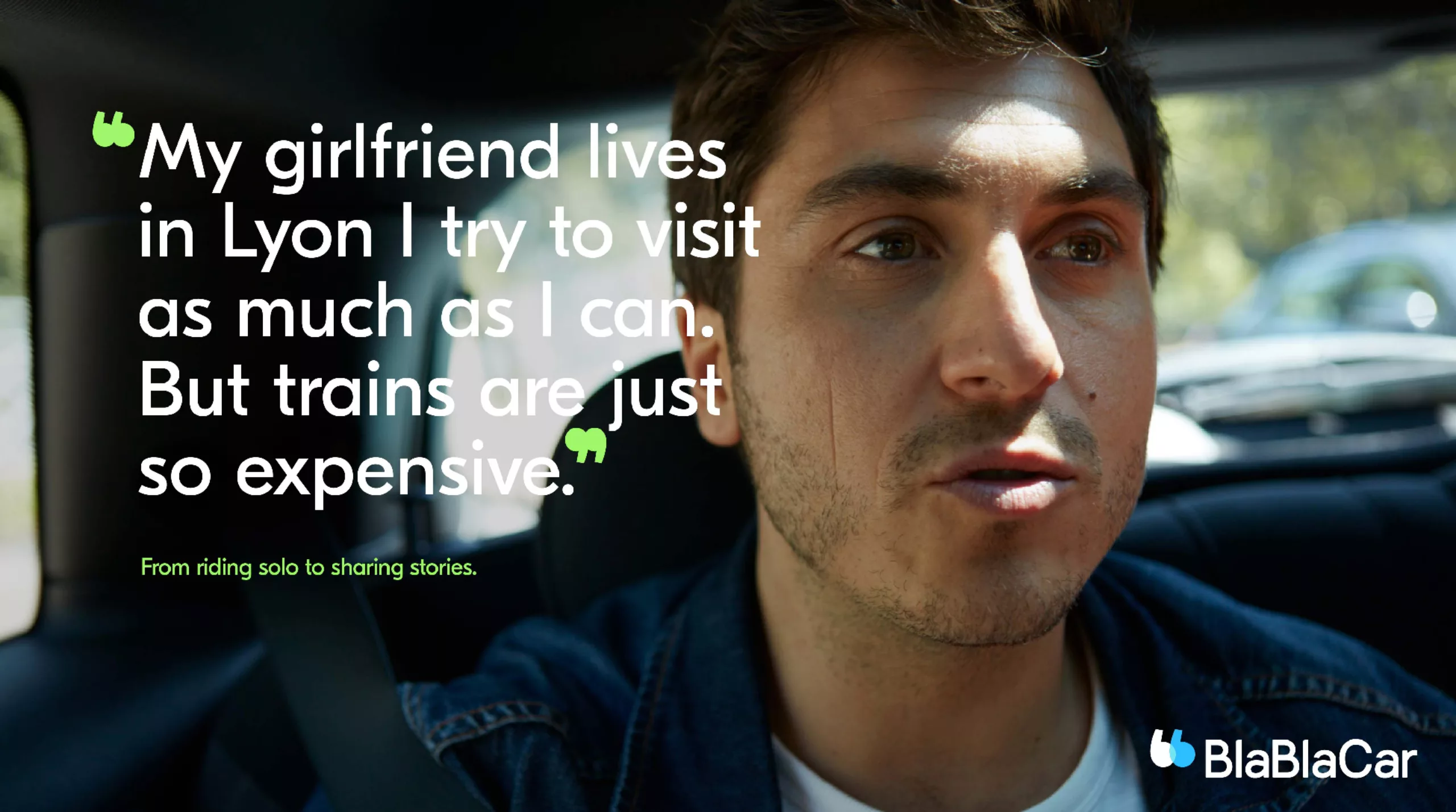 Et puisque la conversation et le rapprochement sont à l’honneur, les campagnes sont appuyées par des photographies, des instants de vie tirés de voyages en voiture. Les personnes ont les lèvres ouvertes, prises en pleine conversation. Un extrait de ces échanges de paroles sont placardées en gros sur l’image, entre les fameux guillemets BlaBlaCar.