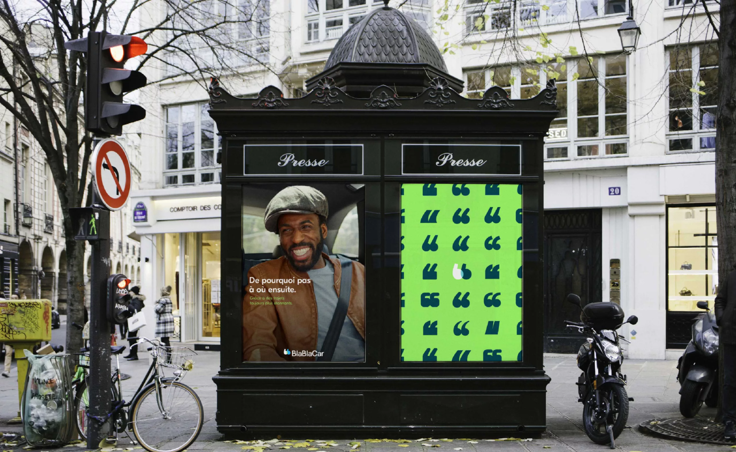 Comme l’agence l’explique sur son site, “les deux B de BlaBlaCar ont été travaillés comme des guillemets, une abréviation universelle qui exprime l’interaction sociale. Le chevauchement des deux signes illustre la connection qui se crée pendant le voyage et entre le passager et conducteur.” La marque ajoute “nous ressemblons maintenant à ce que nous sommes vraiment”.