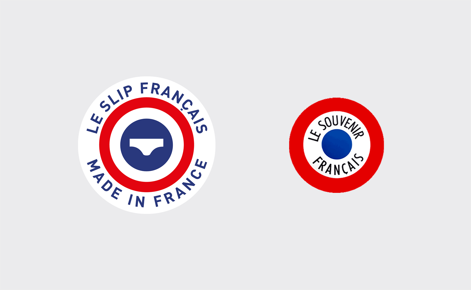 À ses débuts, et depuis dix années, le logo du slip français affichait un slip dans une cocarde bleu-blanc-rouge, à la manière de celle portée par les révolutionnaires de 1789 (plutôt portés sur la culotte) qui inspira notre drapeau tricolore. Le lien Slip français = révolution se faisait de lui-même dans les esprits. D’autant plus que les marques affichant fièrement le bleu-blanc-rouge étaient peu nombreuses à l’époque.