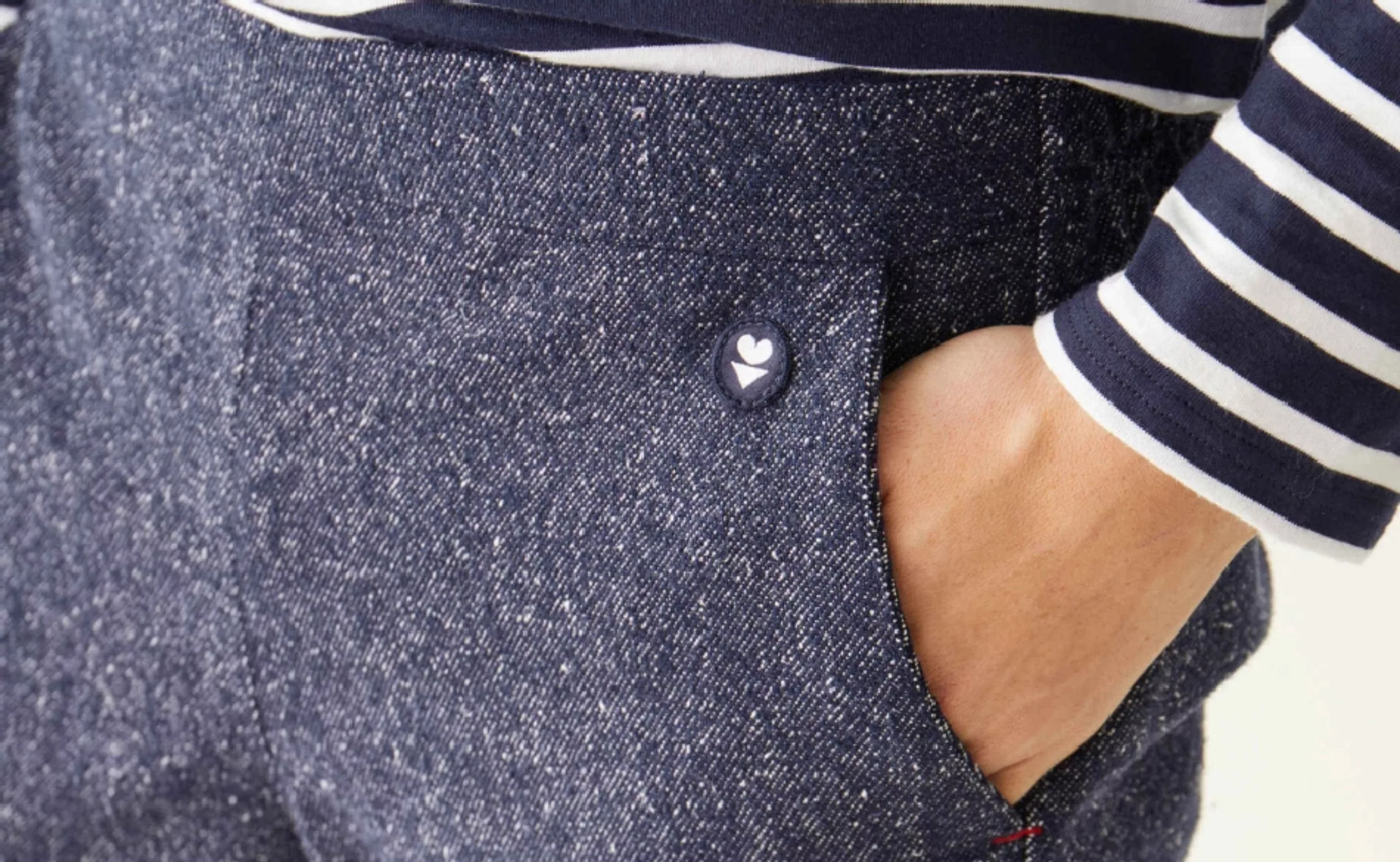 Un cœur et un triangle cerclés d’un rond. Simple, basique ; un peu comme un slip. Le nouveau logo du Slip français ne met plus ni la Révolution ni la France à l’honneur, car la marque affirme vouloir désormais se différencier des autres qui ont elles aussi adopté les couleurs du drapeau tricolore. Si le Slip français garde le rouge et le bleu -rouge pour le fond et bleu pour le cœur- il intègre désormais un triangle vert « symbole d’engagement dans les filières et matières responsables » (comme on peut lire sur leur page Facebook) qui « indique la voie, pour apporter plus de clarté à notre identité » et montrer la direction à prendre.