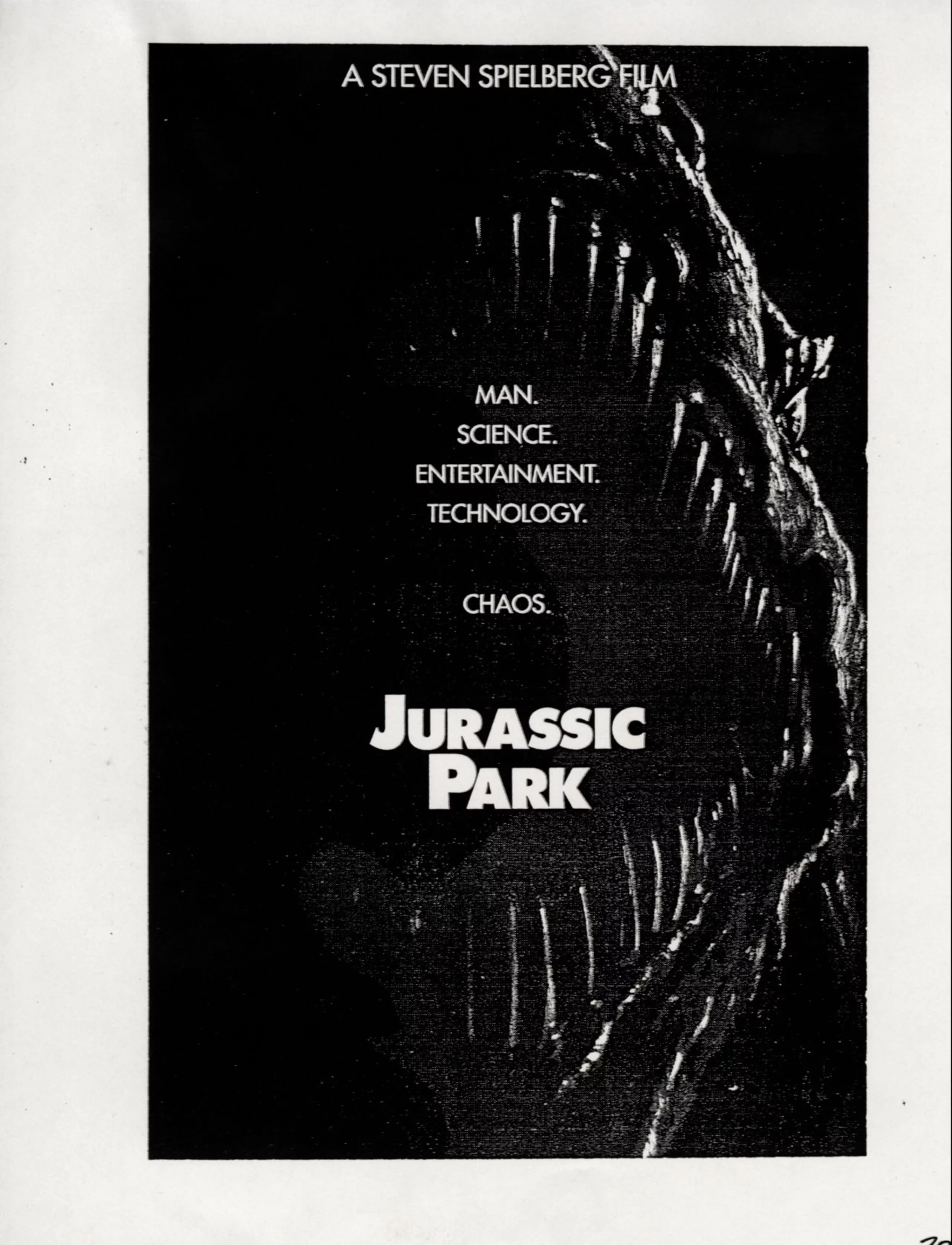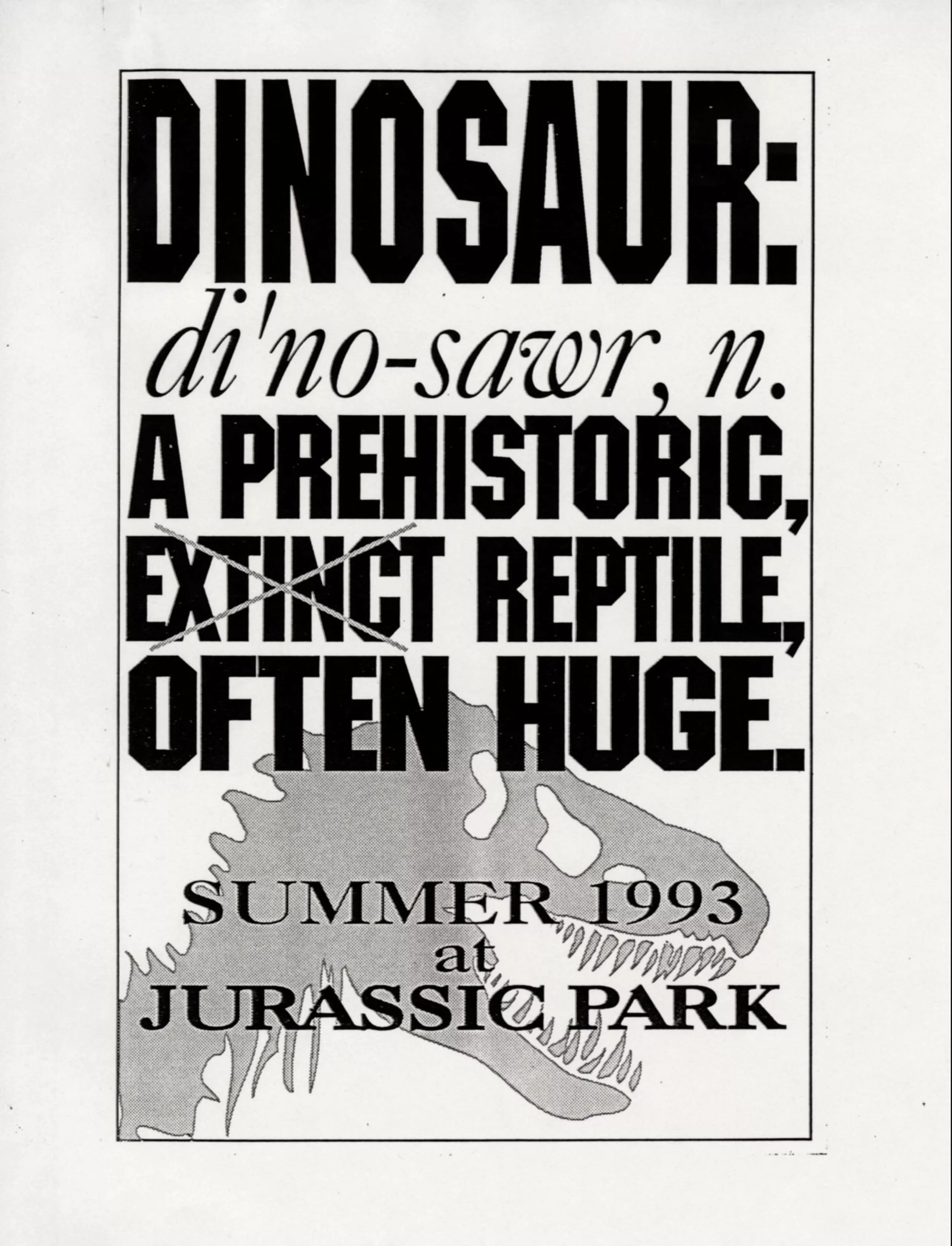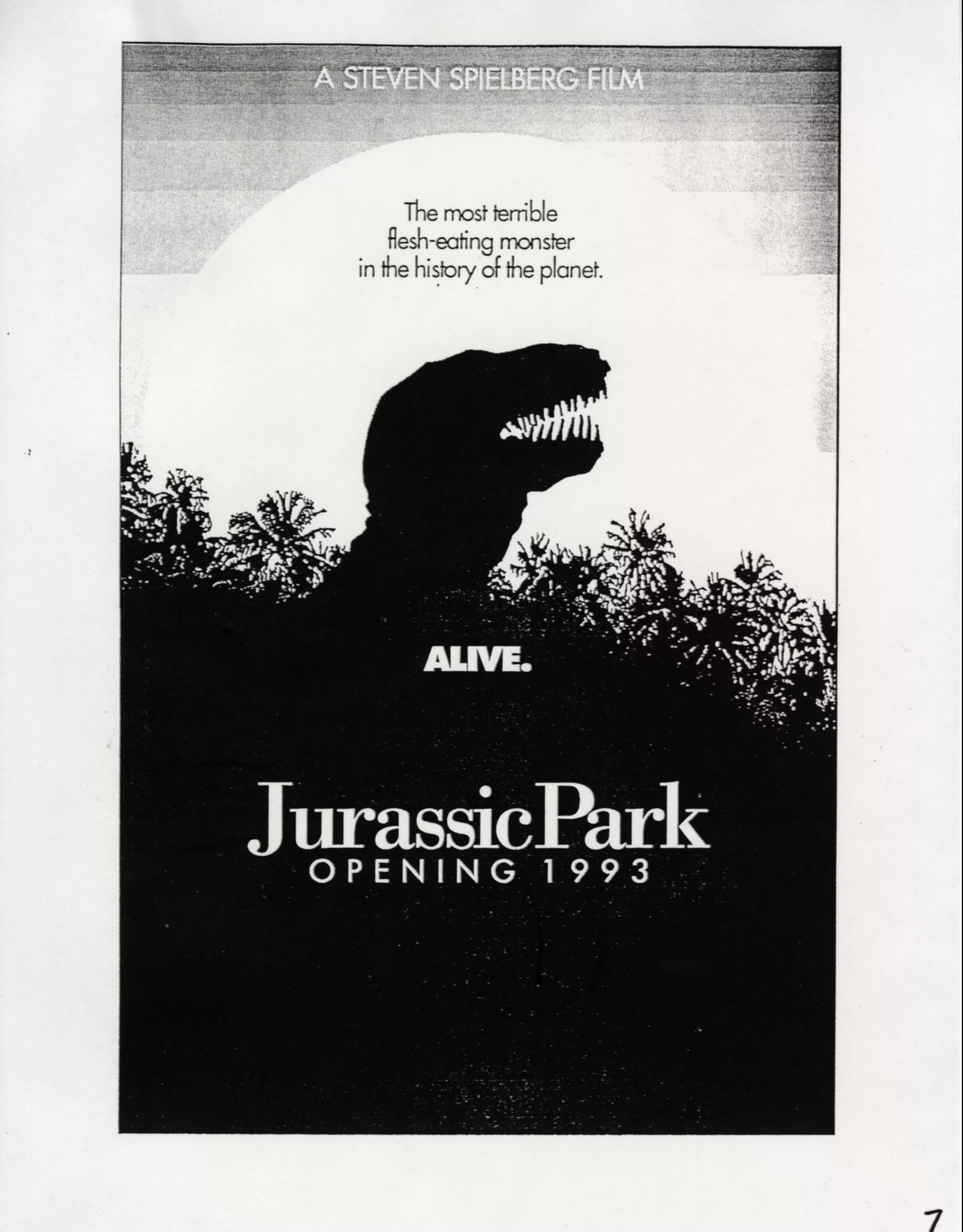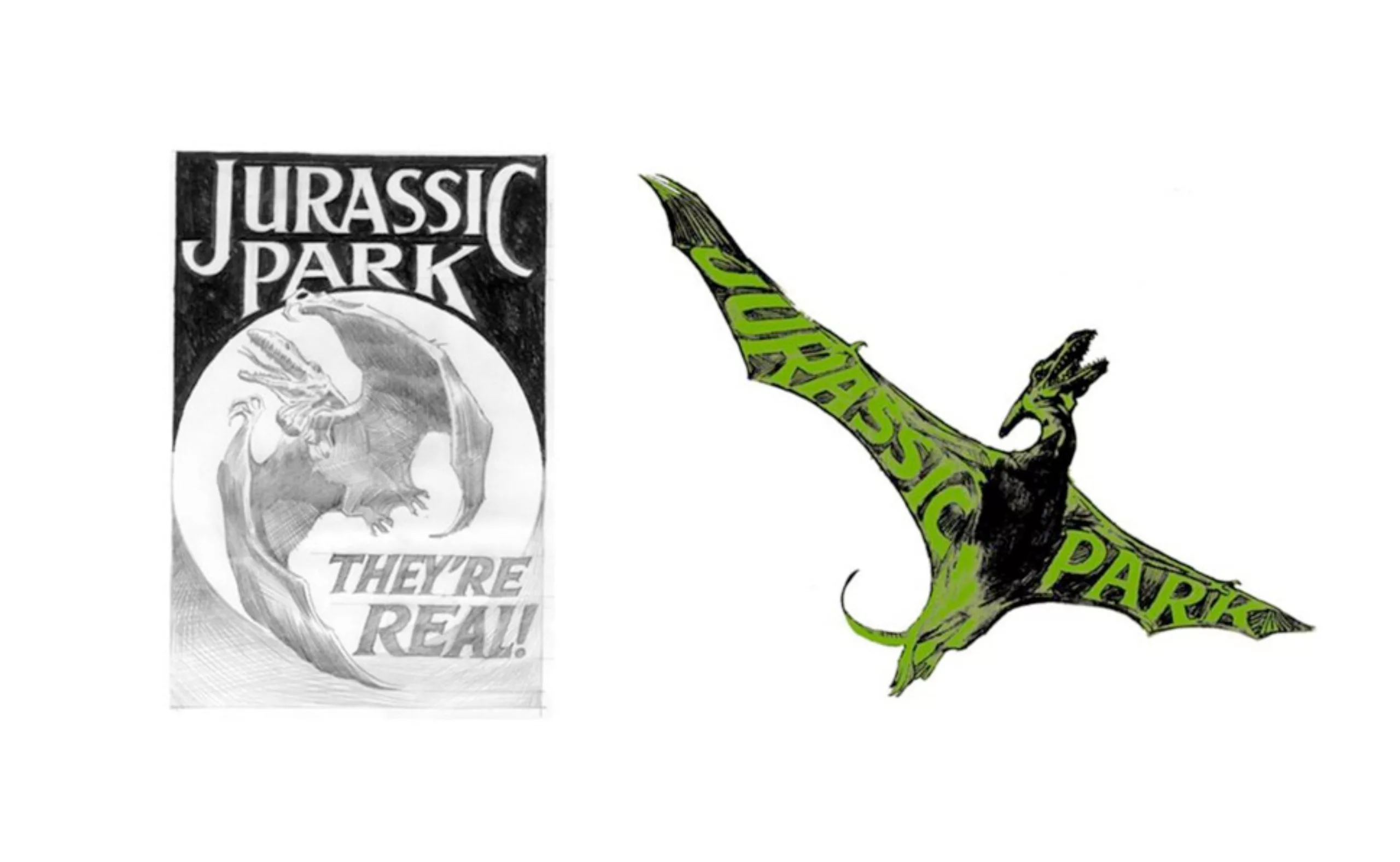 Alors qu’il a presque terminé une version finale de l’affiche de Jurassic Park représentant la porte du parc de laquelle s’échappent des empreintes de dinosaures (ouf on a échappé au remake d’E.T.), Universal l’arrête : le logo sera finalement utilisé tel quel sur l’affiche.