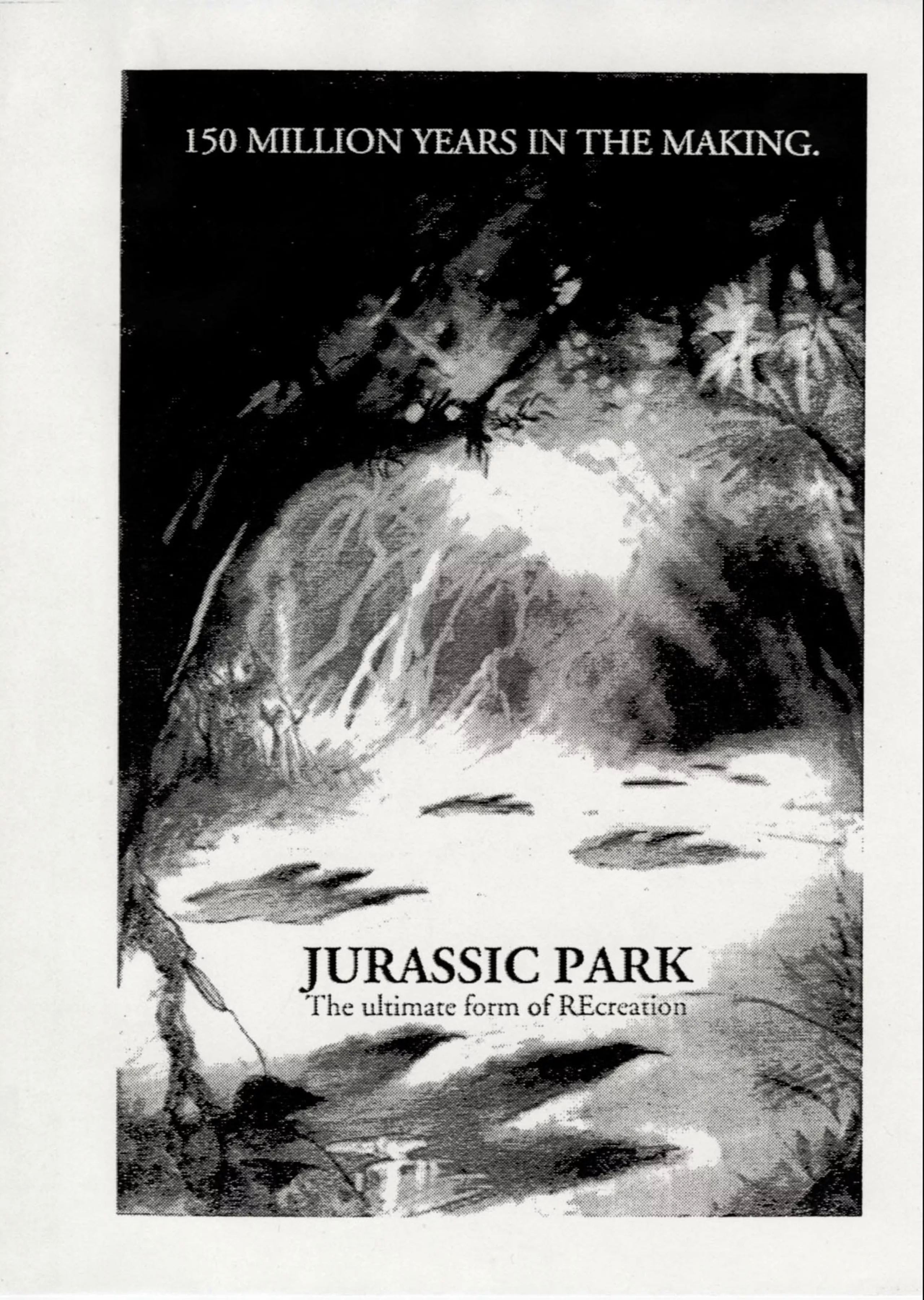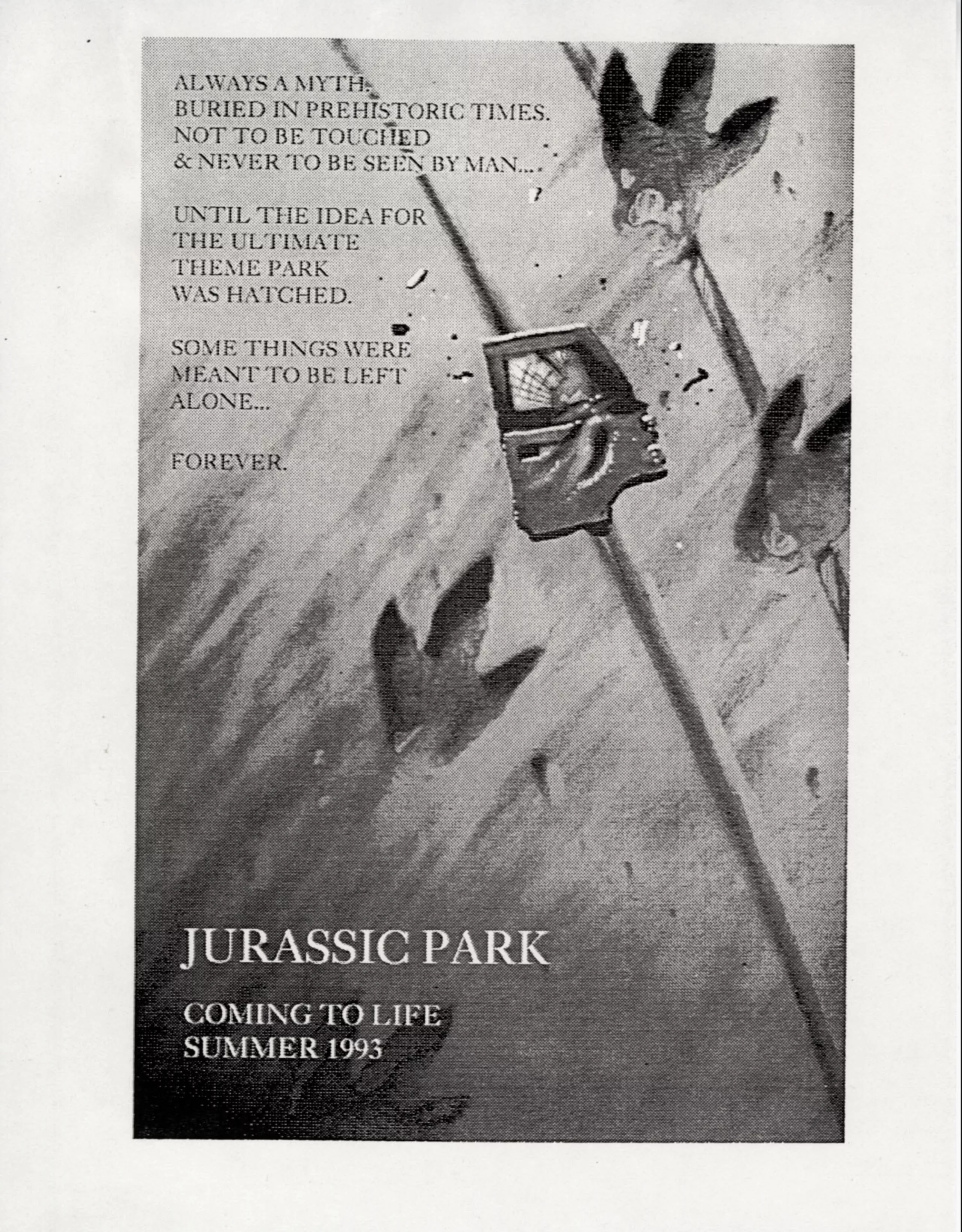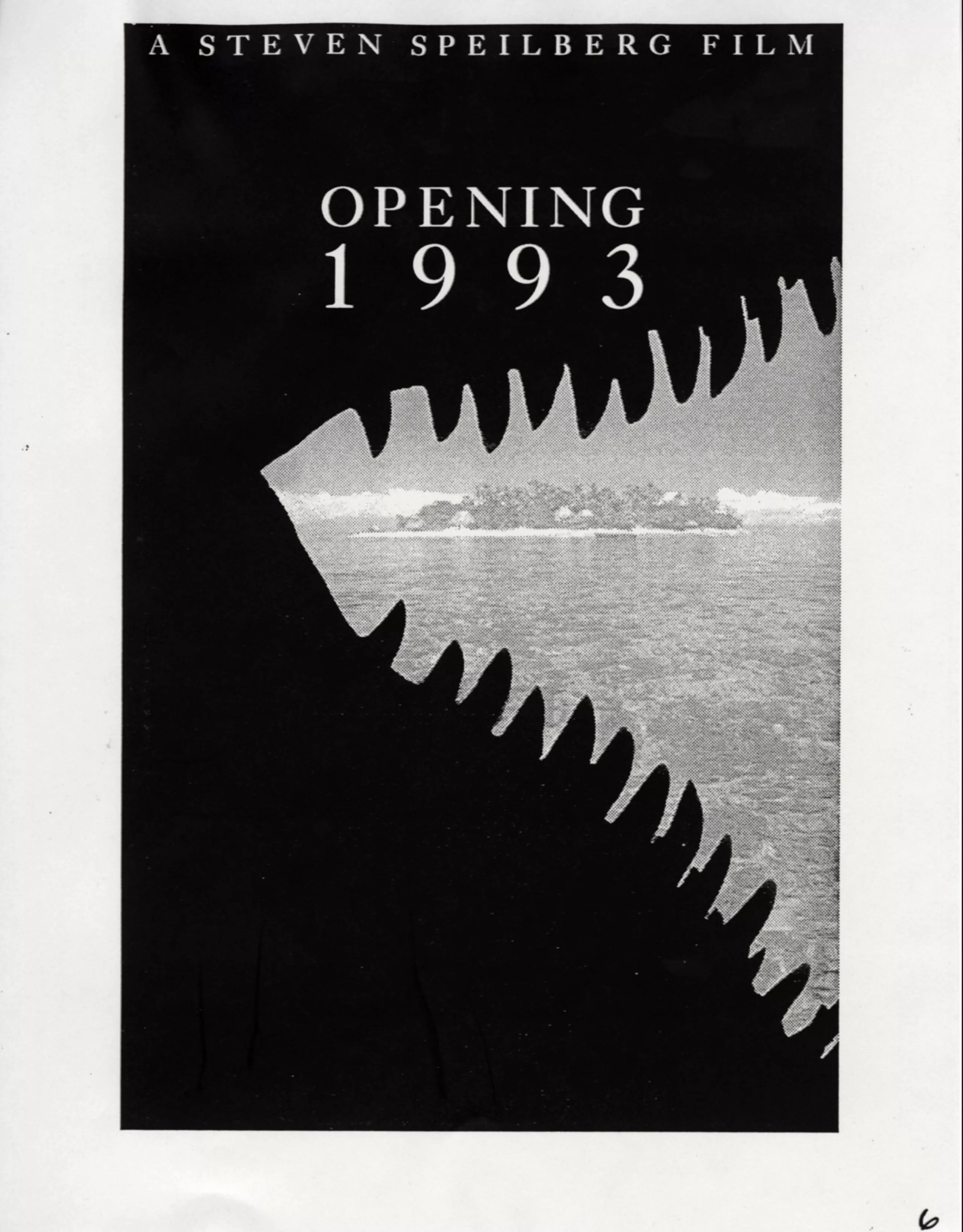 En parallèle des recherches pour un logo de dino, il faut également créer une affiche pour Jurassic Park ! Tom Martin travaille avec John Alvin, un peintre qui a développé de très nombreux visuels de film (dont E.T. l’extraterrestre), qui s’engage lui aussi sur des pistes qui n’aboutissent à rien.