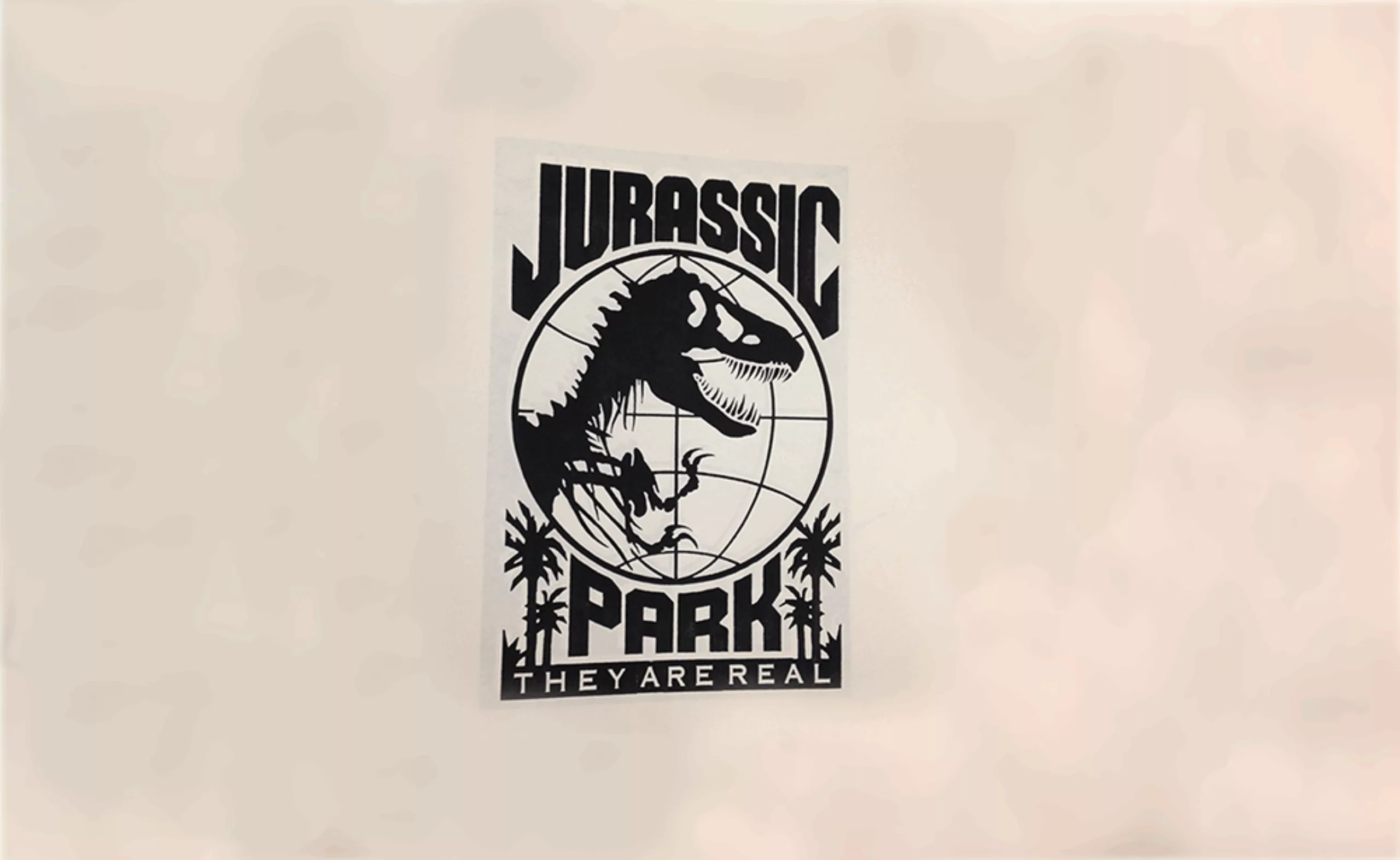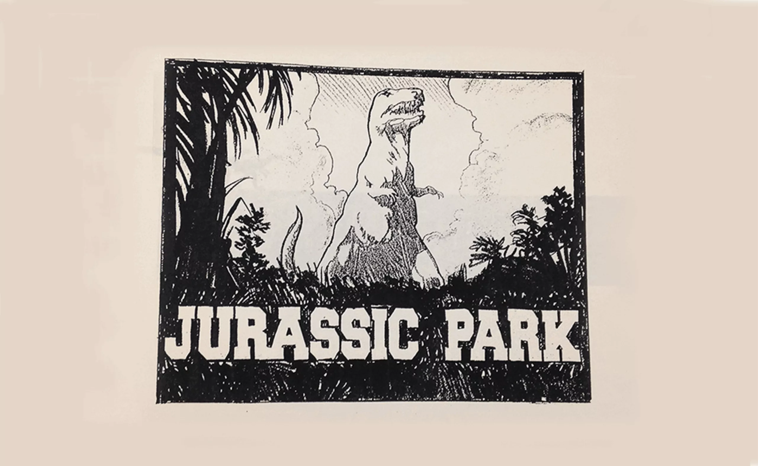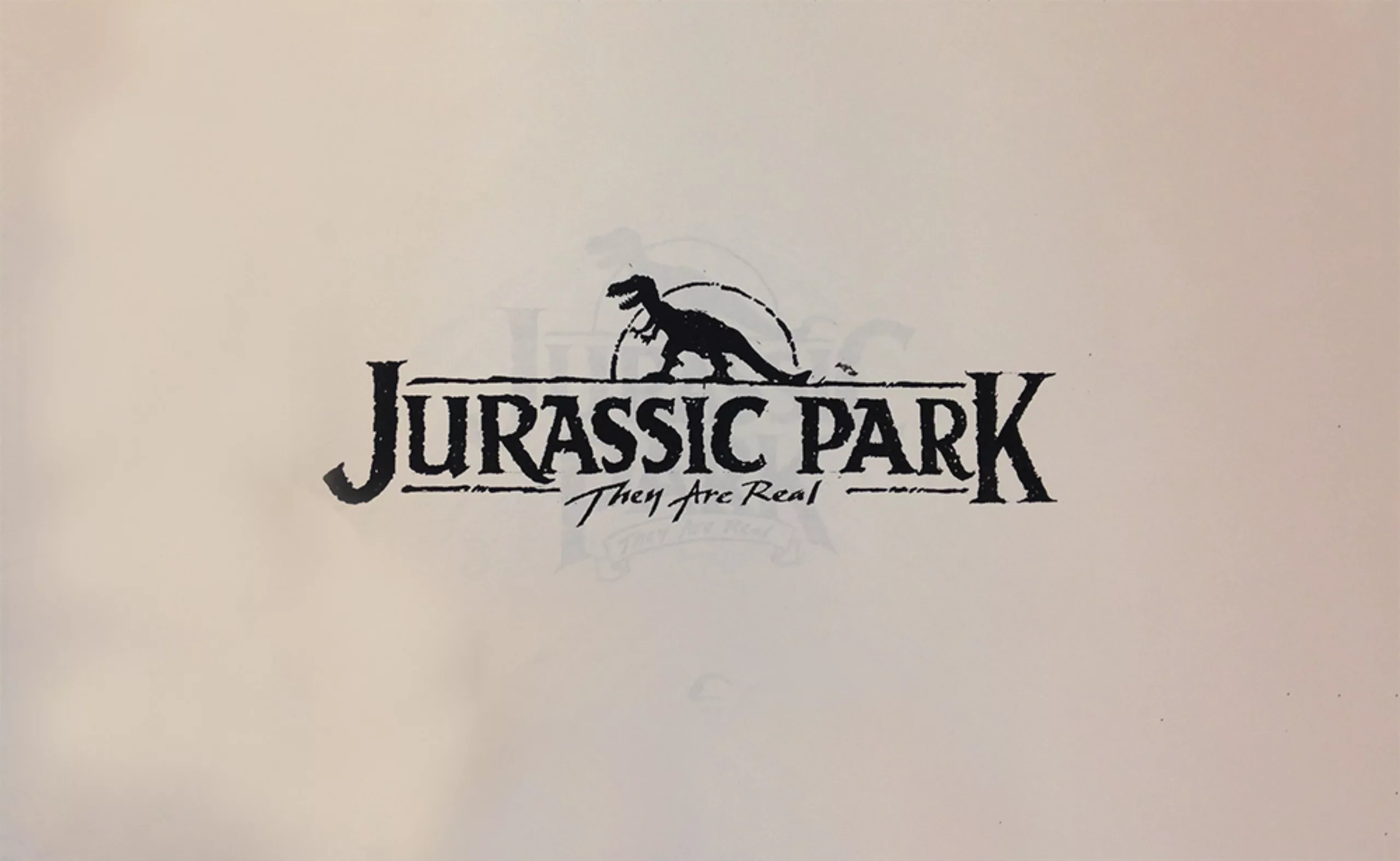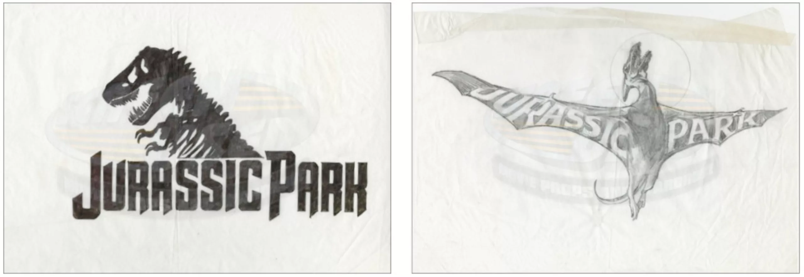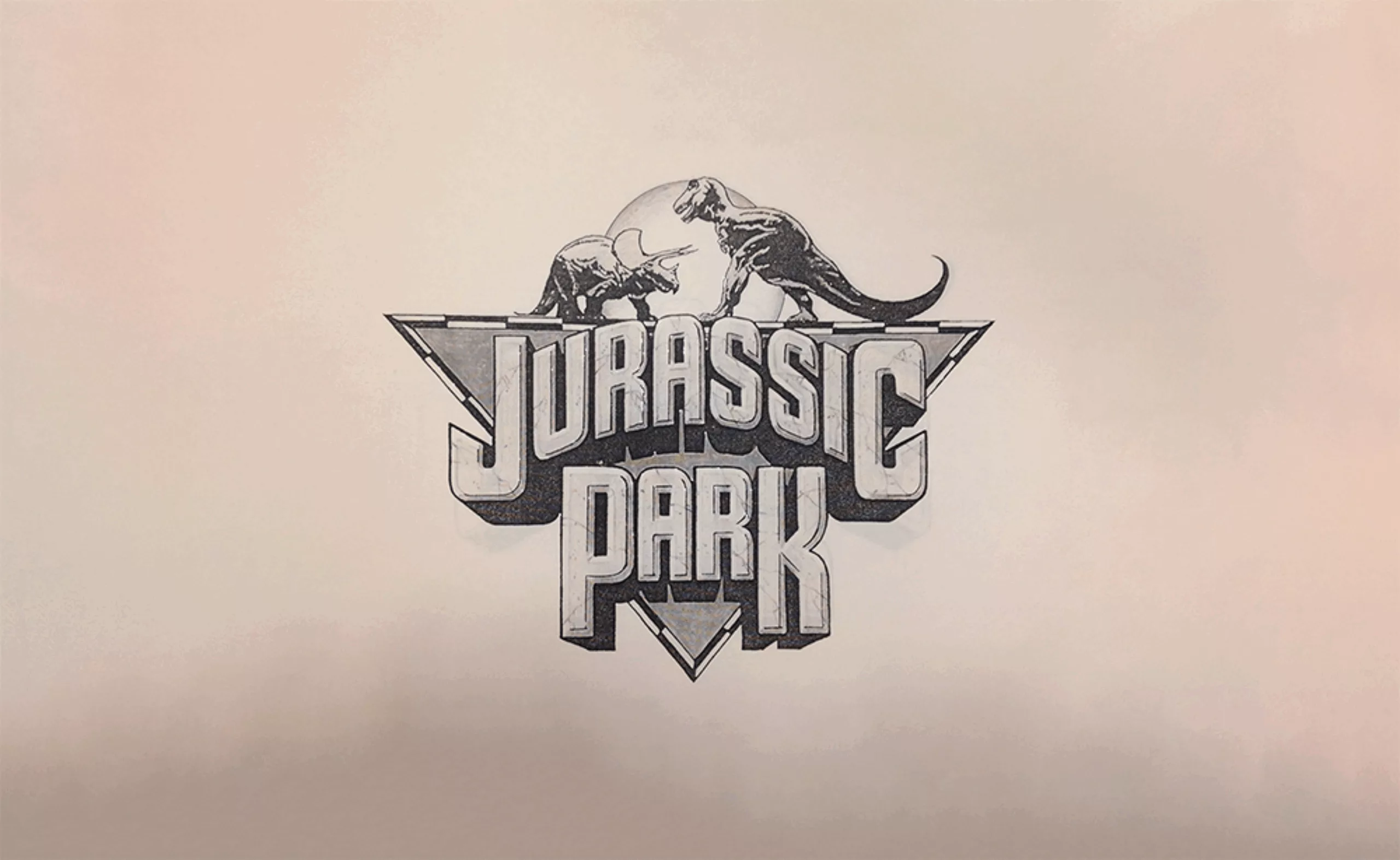 Pour les besoins du film il faut créer le logo de Jurassic Park qui soit rapidement reconnaissable, sous forme de badge, et déclinable sur tout un tas de supports; de l’uniforme à la portière, en passant par les supports promotionnels du Parc lui-même (t-shirts, boîtes repas…). Quelque chose « qui rende bien et ne soit pas trop cher à décliner » comme le souhaite Spielberg. Car il faut concevoir à la fois l’identité visuelle du film Jurassic Park et ses supports publicitaires pour le public, ainsi que celle du parc fictif à l’intérieur de ce film.