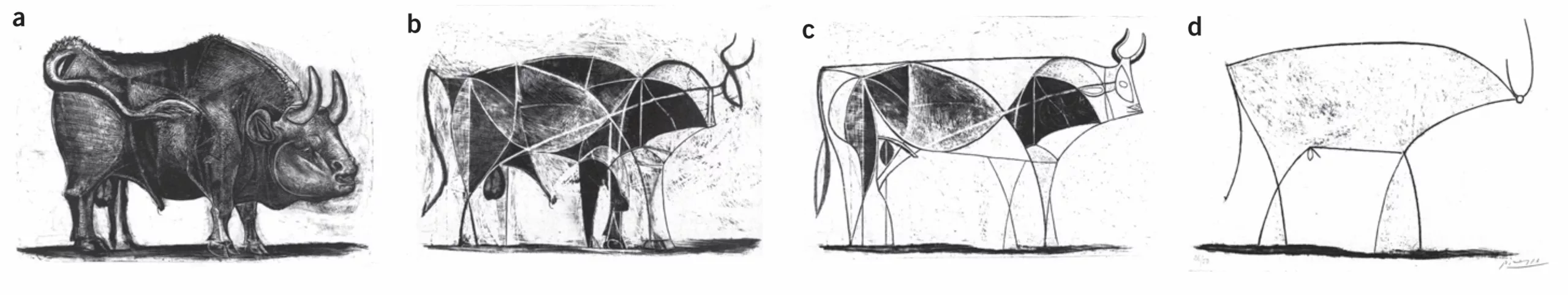 Faire simple est toujours plus compliqué que l’on ne le pense, et demande plus de travail et d’expérience. Il faut analyser, comprendre puis extraire l’essence de la ville ou du territoire pour mieux en parler. Rappelons que Picasso ou Mondrian ont acquis leur style épuré et minimaliste après plusieurs dizaines d’années de travail, comme l’illustrent ces études de taureau par Picasso (1945-46).