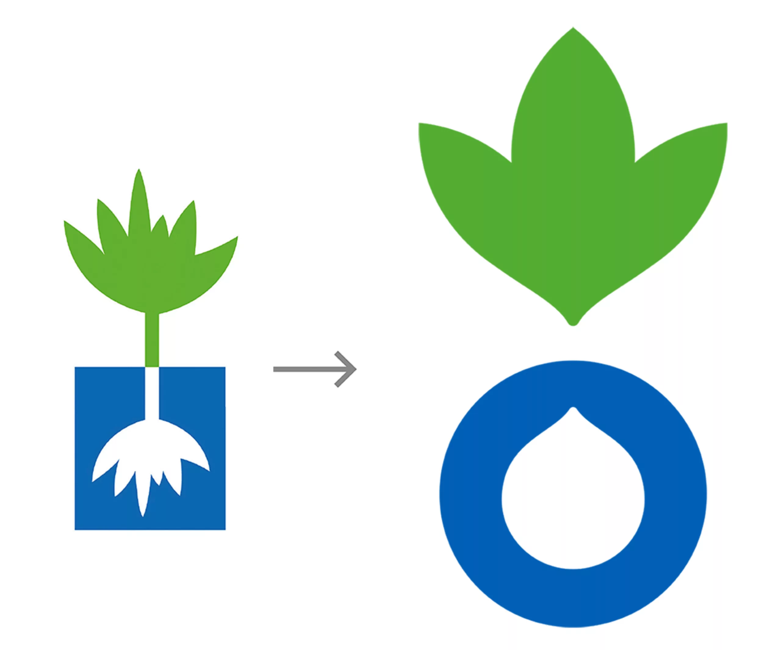 Quant au symbole, c’est évidemment le changement le plus notable. Adieu l’arbre et sa racine, source de confusion auprès des nouveaux venus, qui y voyaient plutôt un symbole purement agricole. C’est un tout nouveau symbole, beaucoup plus simple qui prend place, composé d’une feuille (pour la nourriture) et d’une goutte d’eau (pour l’accès à l’eau potable, l’un des grands combats de l’association). Tout en gardant les couleurs d’origine, ce nouveau symbole est doué d’une forte intégration dans de nombreuses applications, vestimentaires, matérielles et même textuelles, la goutte bleue pouvant servir de lettre O dans certaines communications.