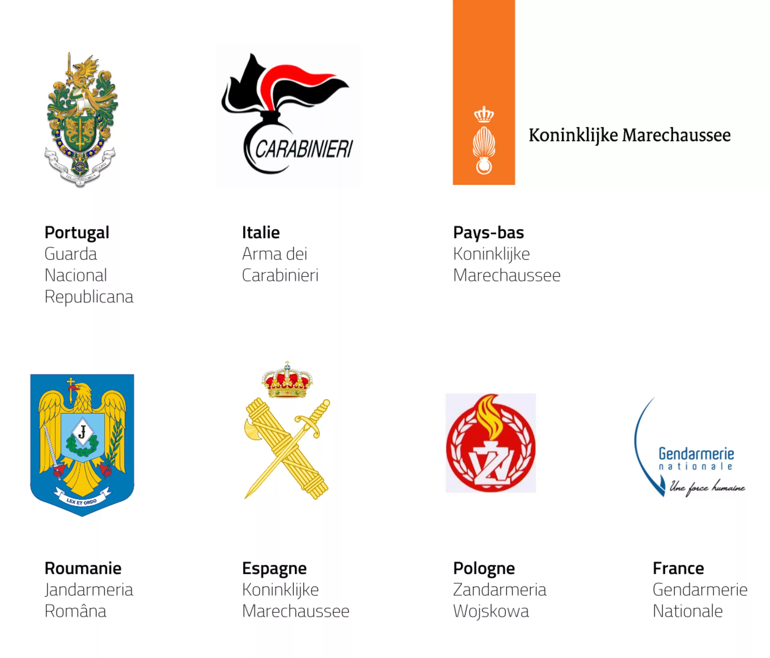 Un rapide tour d’horizon des logos d’autres gendarmeries en Europe nous montre que ce symbole de la bombe est souvent utilisé ( ex: Italie, Pays-bas, Pologne). Mis à part les Pays-Bas, rien de vraiment bien intéressant à remarquer dans ces logos…