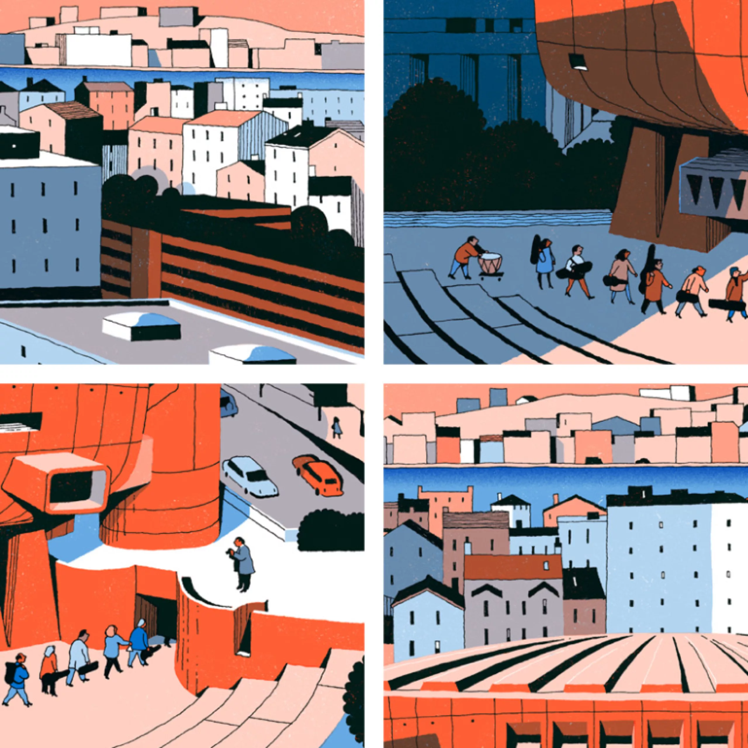 On peut aussi noter qu’apparemment cette année ils n’ont pas lancé d’appel d’offres non rémunéré auprès de x graphistes, mais on fait le choix de passer commande à cet illustrateur dont le travail leur semblait pertinent pour offrir un nouveau regard, chaud et sensible, sur leur vaisseau amiral de béton brut.