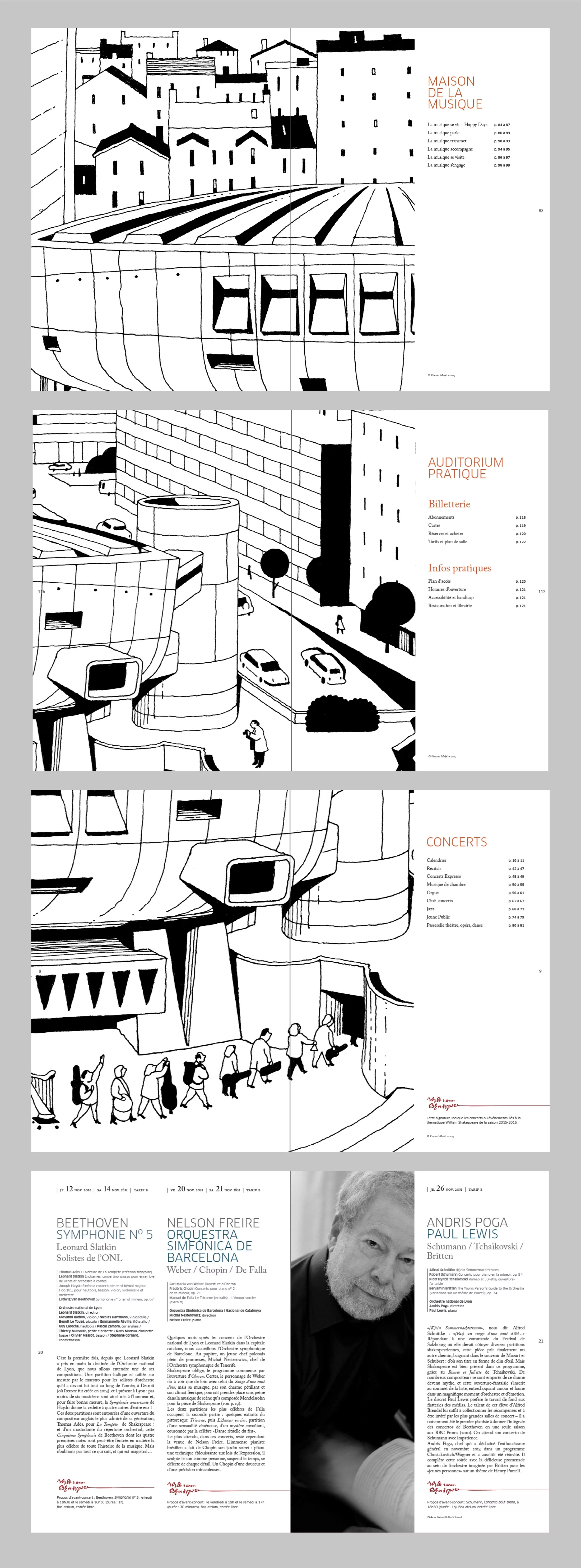 Le visuel de la saison 2015-2016 de l’Auditorium-Orchestre national de Lyon a été confié à Vincent Mahé. Pour avoir déjà planché sur le même sujet par le passé, je dois avouer ma surprise en découvrant le visuel de cette nouvelle saison. C’est si rare de voir de l’illustration mise à l’honneur ! Bravo !