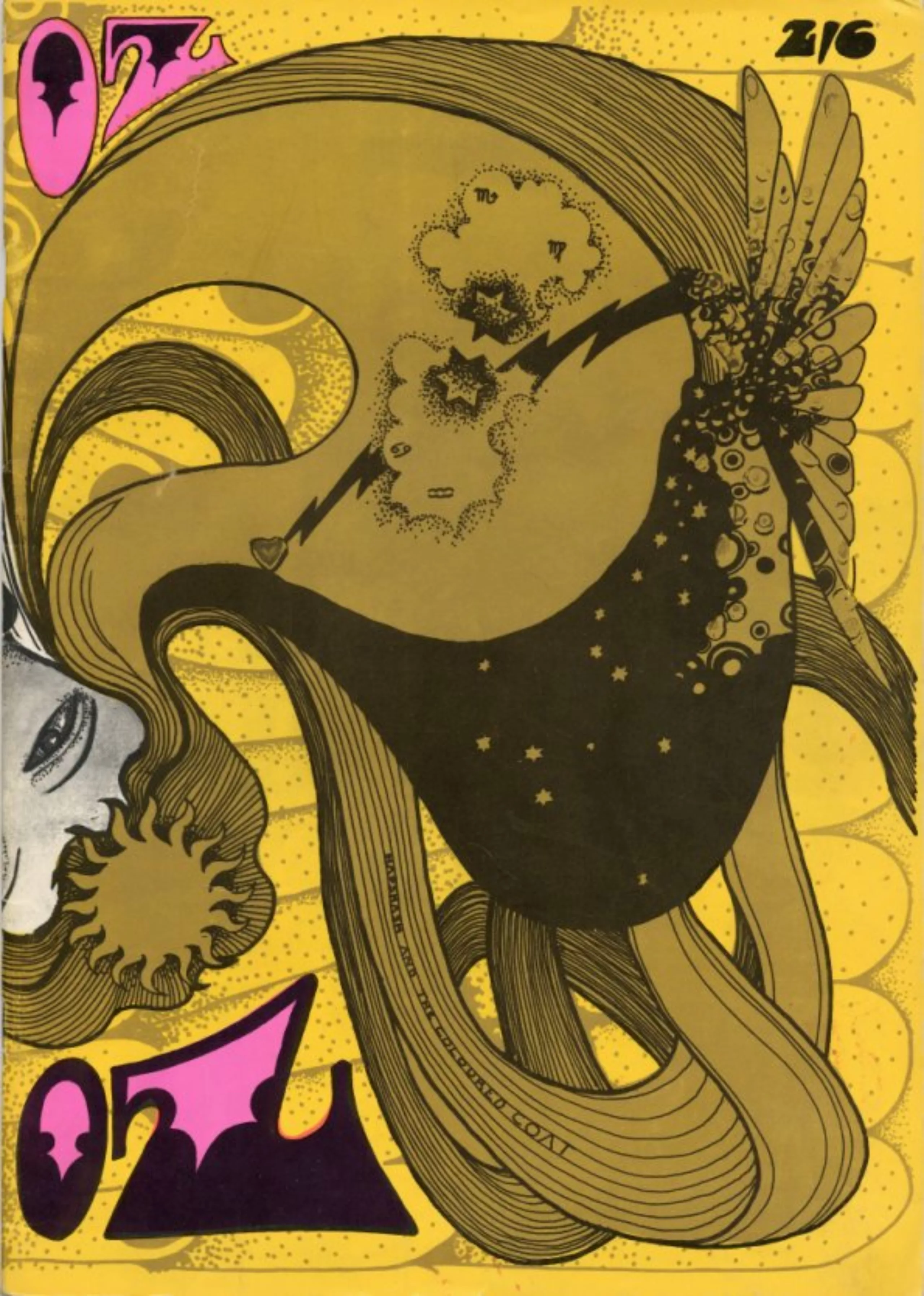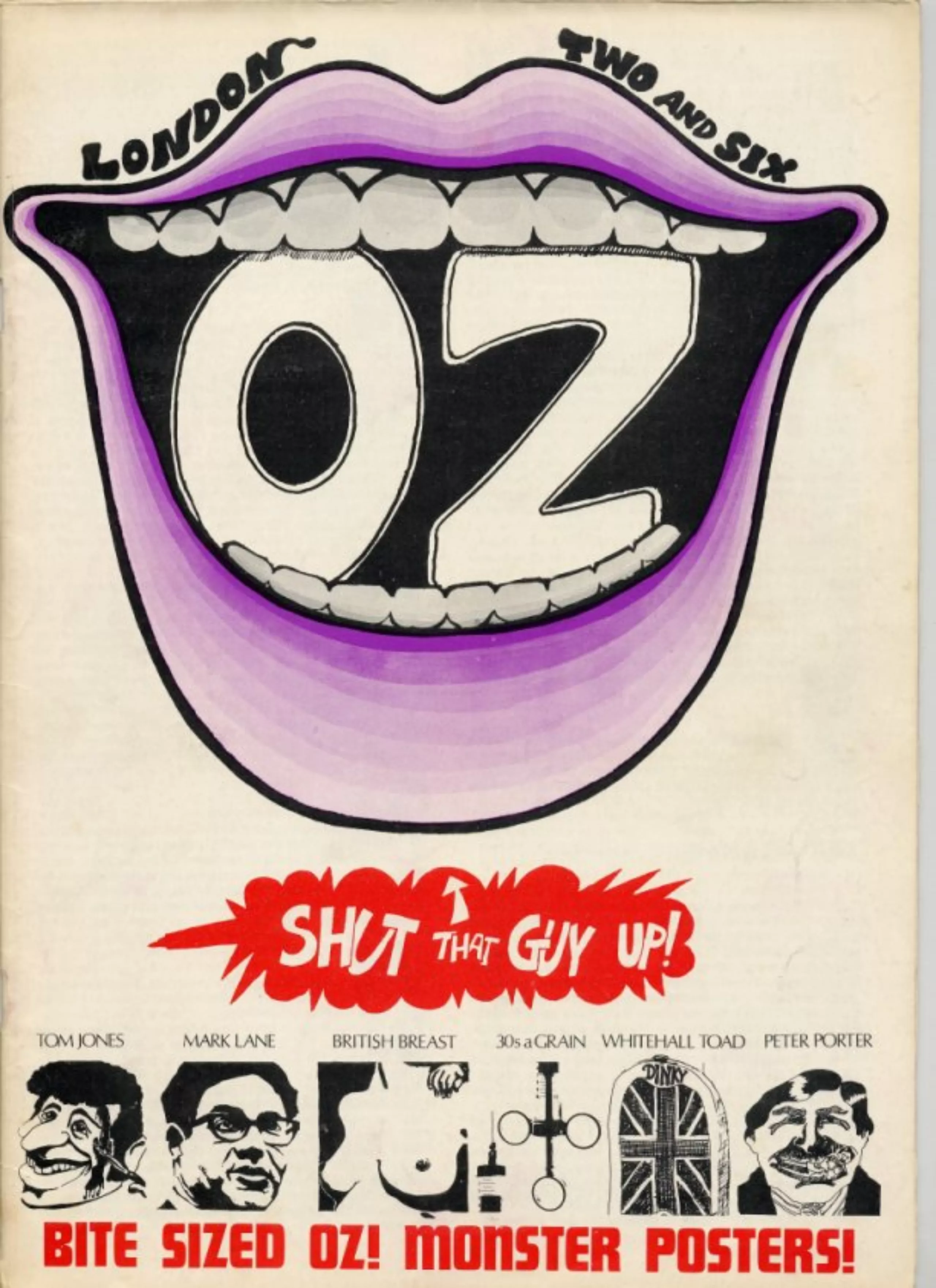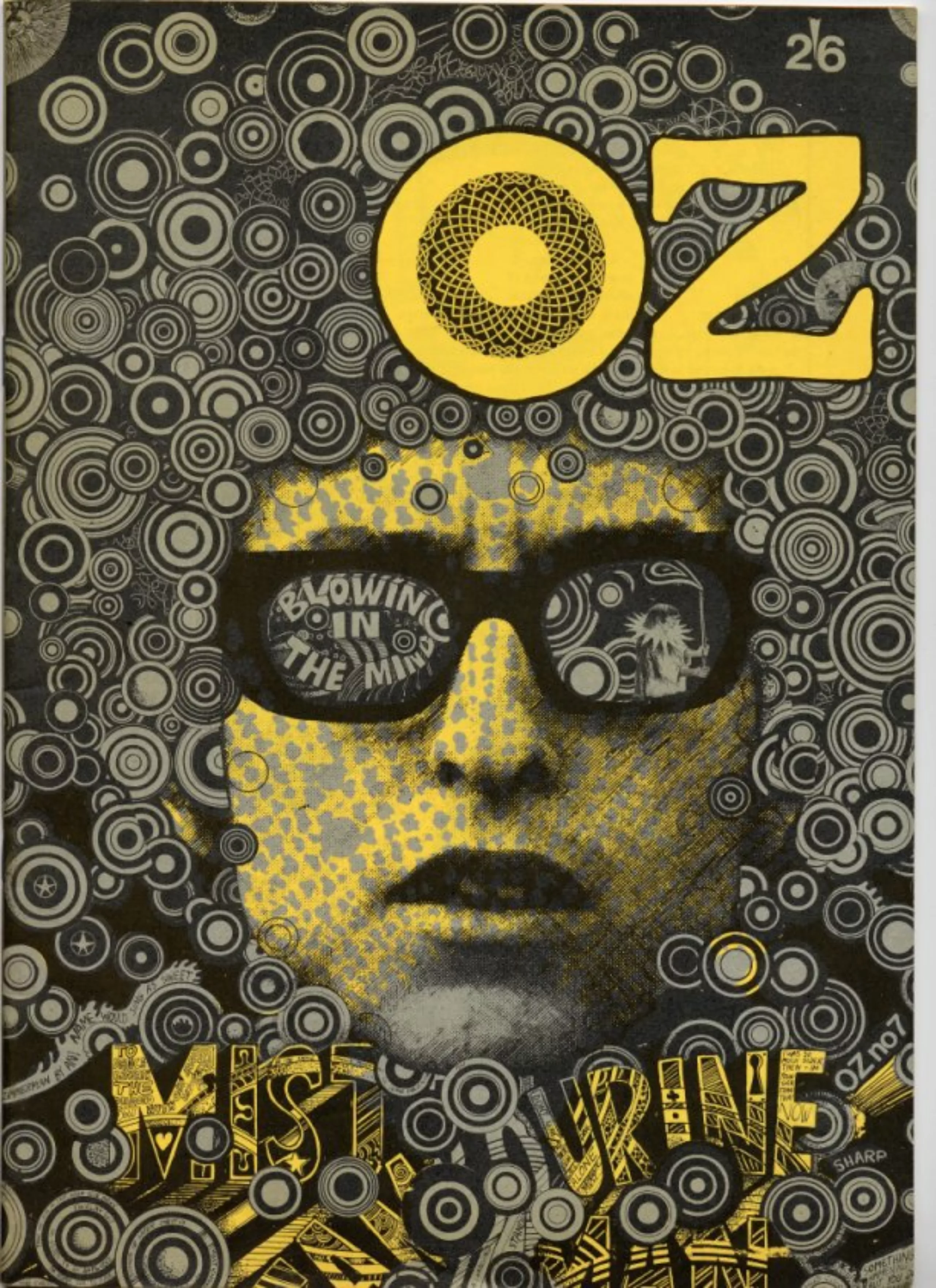 Vers la fin des années 60, Sharp et Neville viendront s’installer à Londres. Une fois sur place, ils vont poursuivre avec une version londonienne d’OZ. C’est à cette période-là que Sharp se met au graphisme psychédélique. Le magazine est alors tiré à 100 000 exemplaires. OZ London devient le fer de lance du design graphique anglo-saxon. Le magazine fait l’objet du plus long procès d’obscénité de l’histoire britannique. Des peines de prison furent là encore prononcées, avant d’être annulées en appel. En revanche, le magazine ne s’en remit pas tout à fait, et le numéro de novembre 1973 fut le dernier.