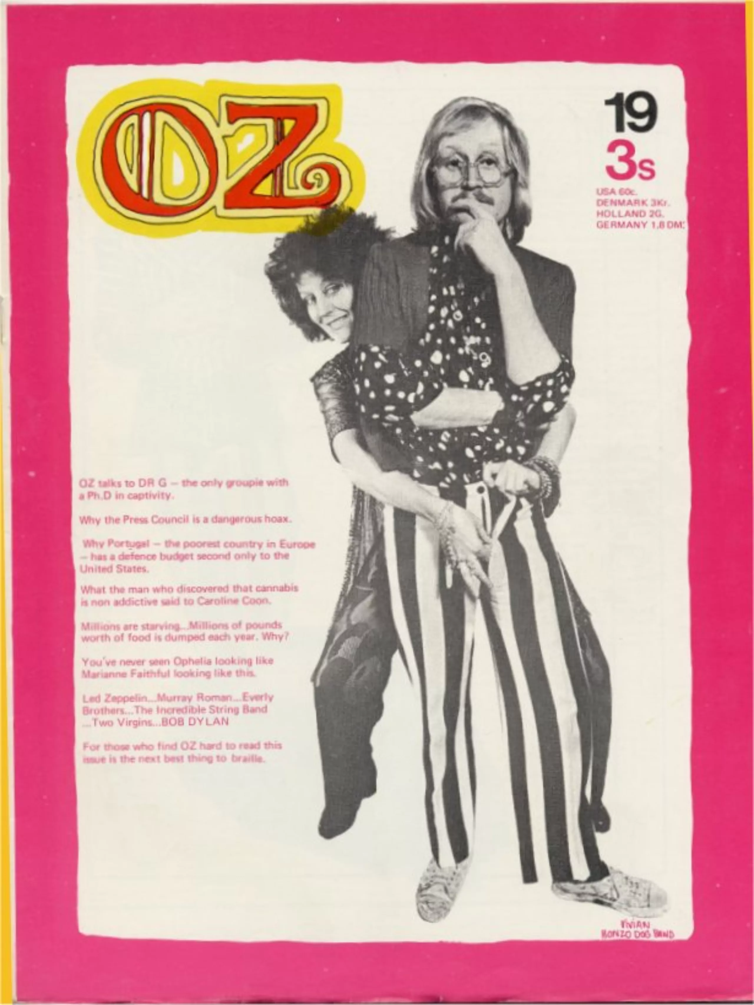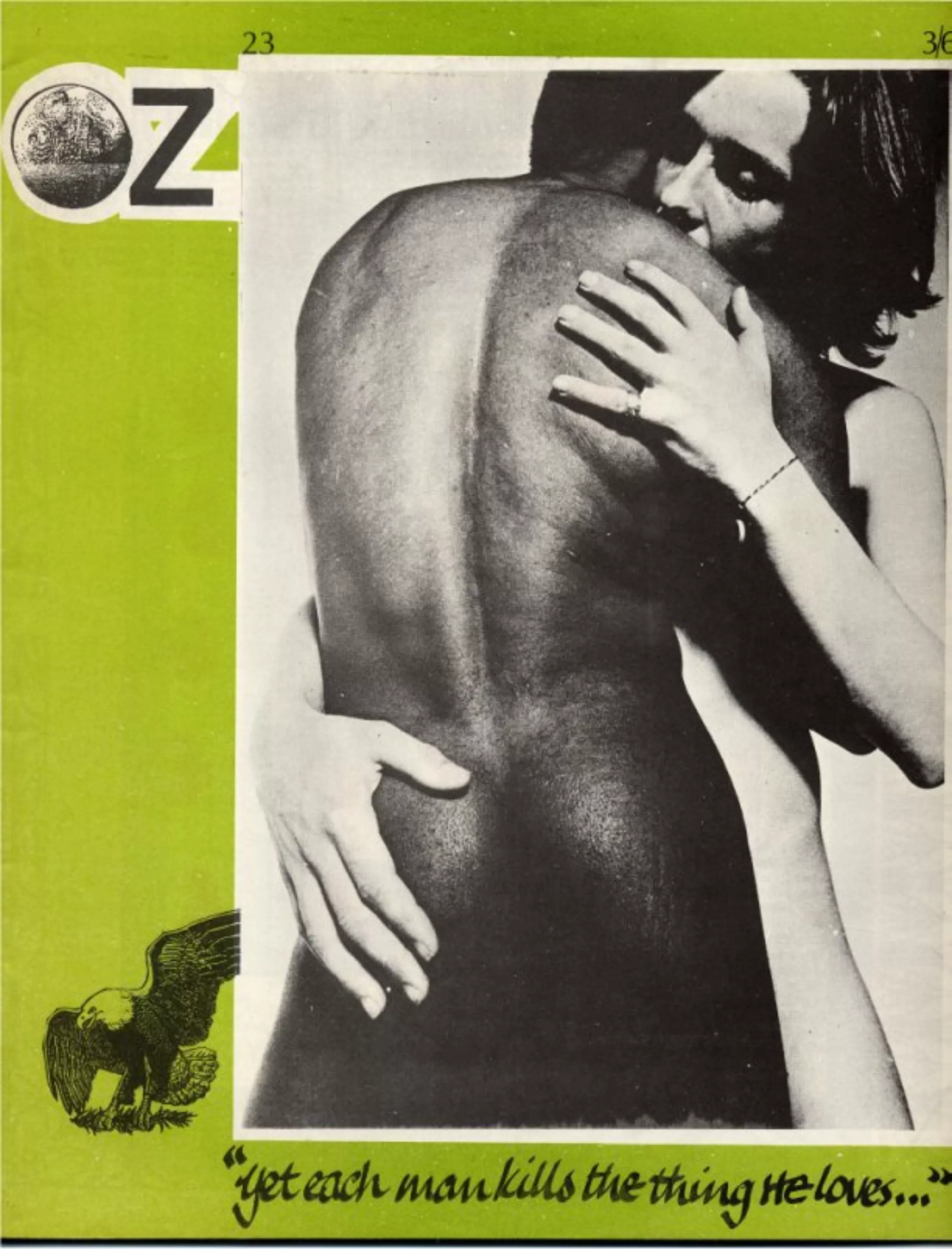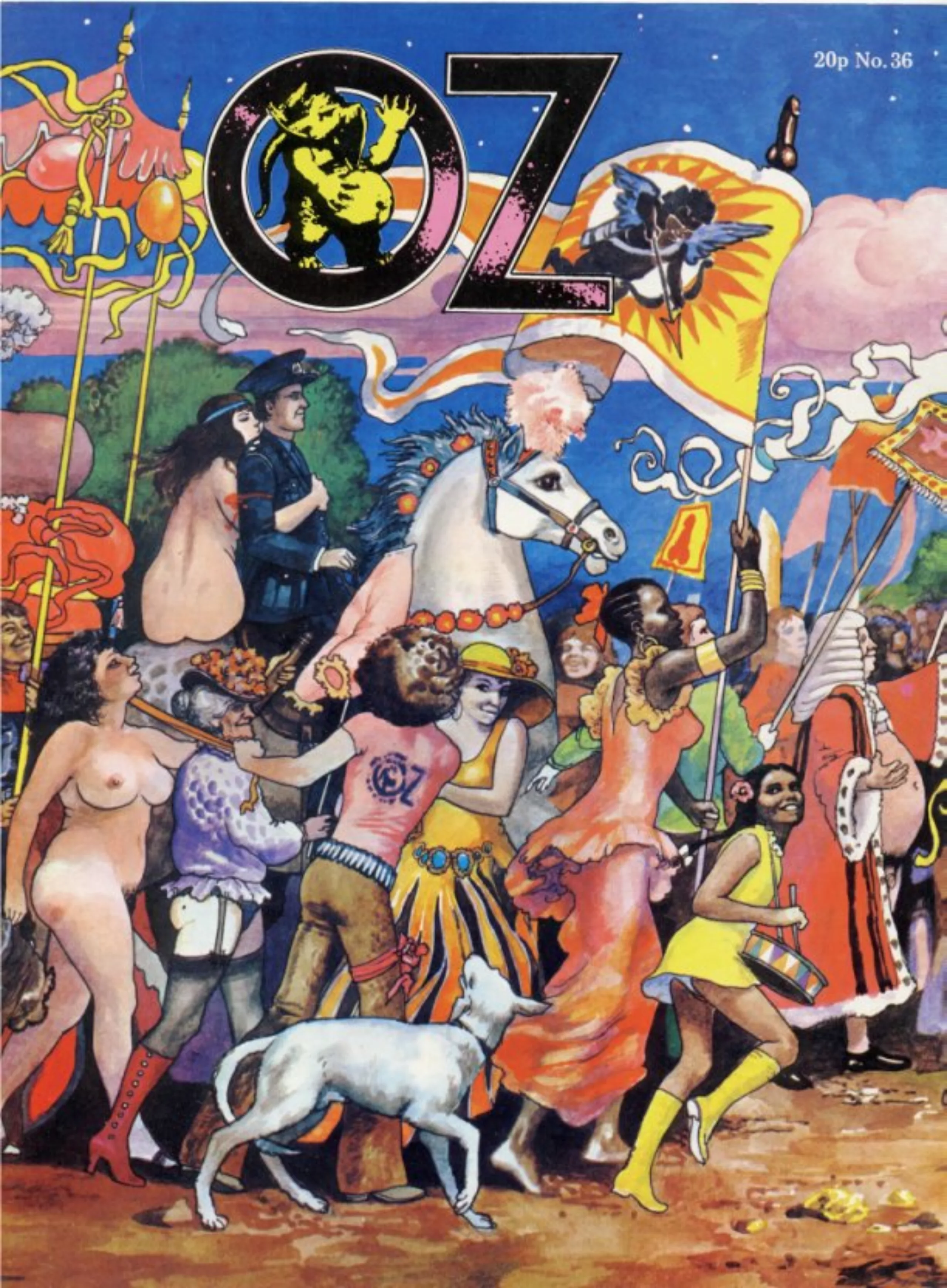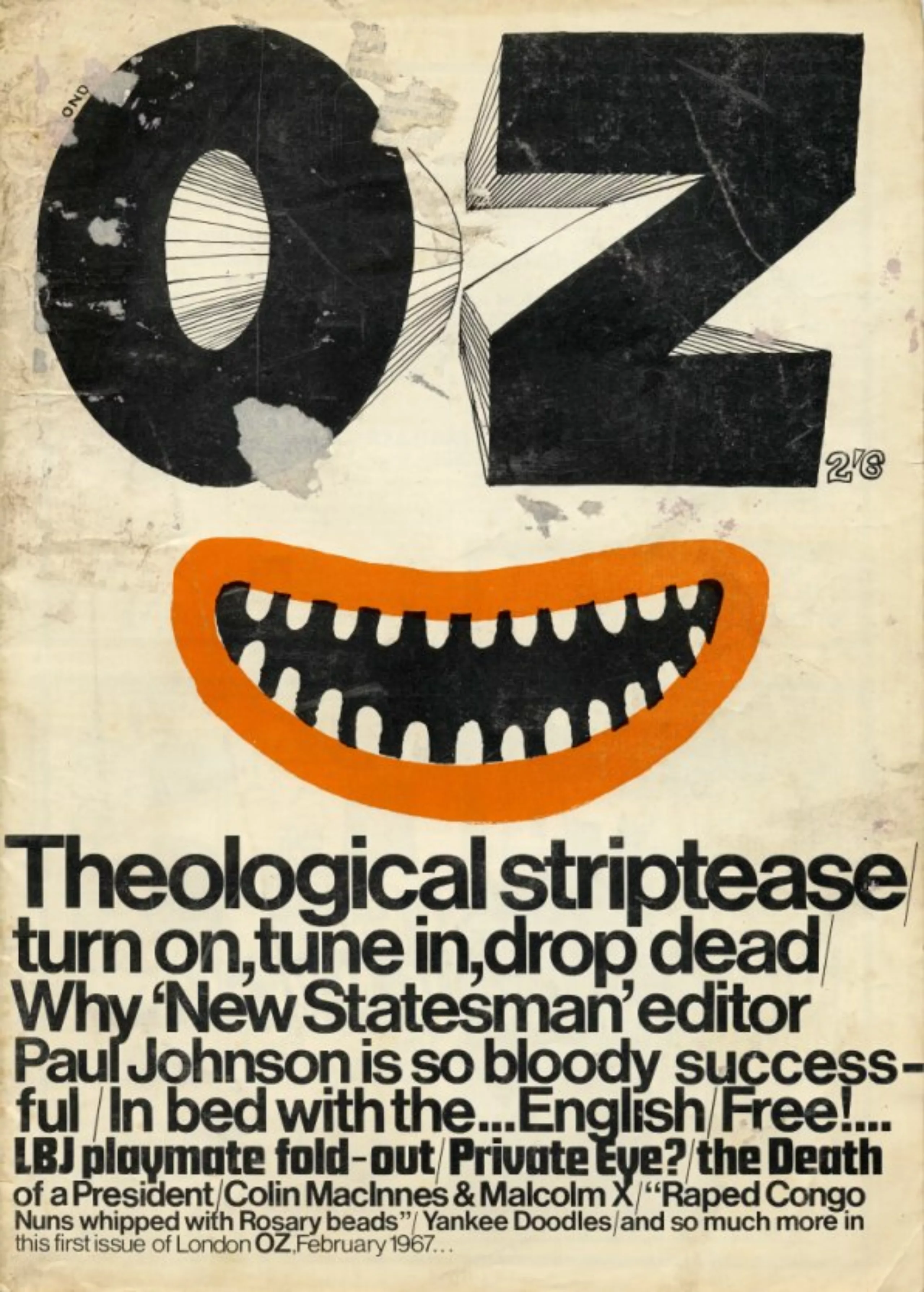 Vers la fin des années 60, Sharp et Neville viendront s’installer à Londres. Une fois sur place, ils vont poursuivre avec une version londonienne d’OZ. C’est à cette période-là que Sharp se met au graphisme psychédélique. Le magazine est alors tiré à 100 000 exemplaires. OZ London devient le fer de lance du design graphique anglo-saxon. Le magazine fait l’objet du plus long procès d’obscénité de l’histoire britannique. Des peines de prison furent là encore prononcées, avant d’être annulées en appel. En revanche, le magazine ne s’en remit pas tout à fait, et le numéro de novembre 1973 fut le dernier.