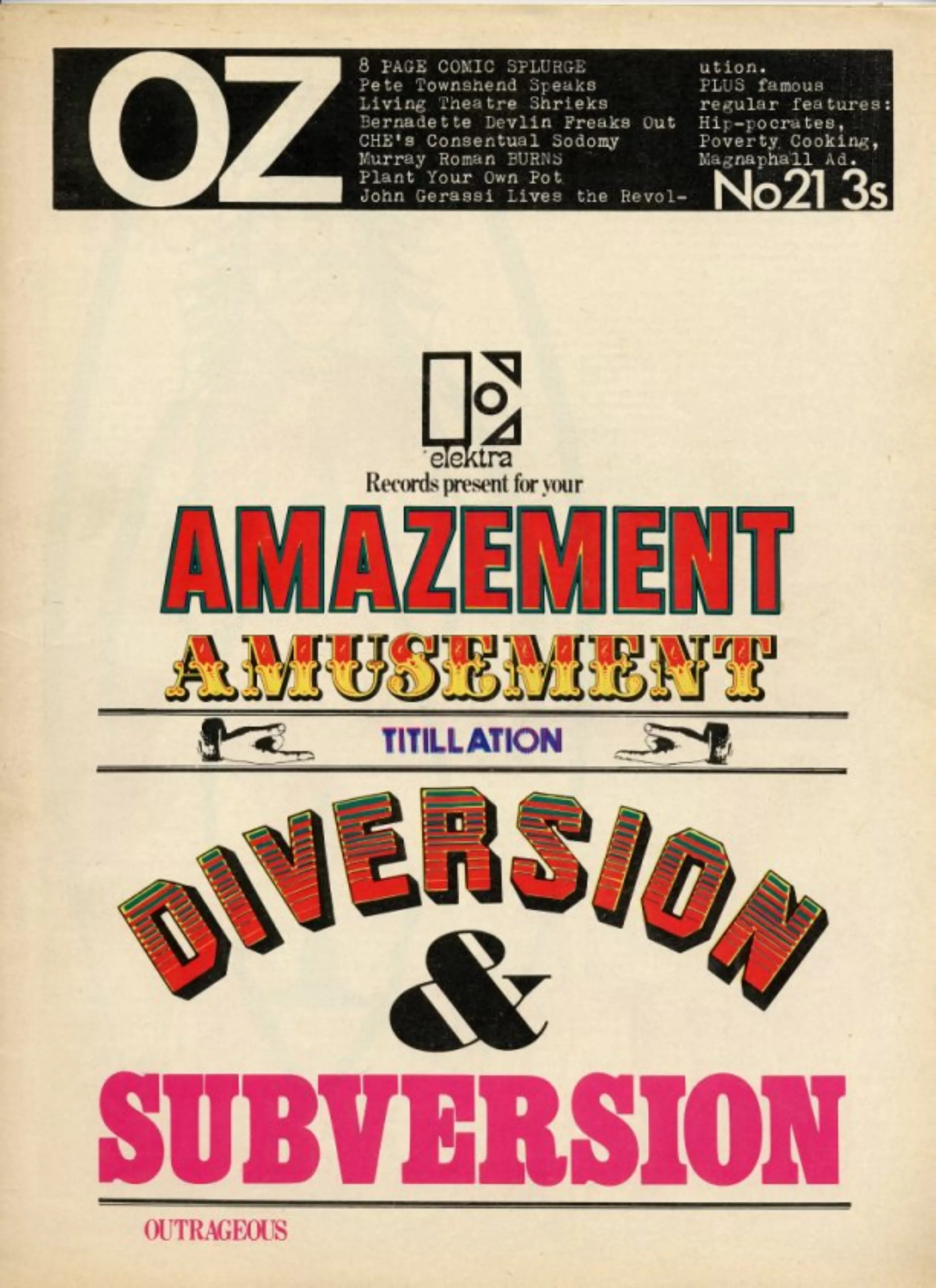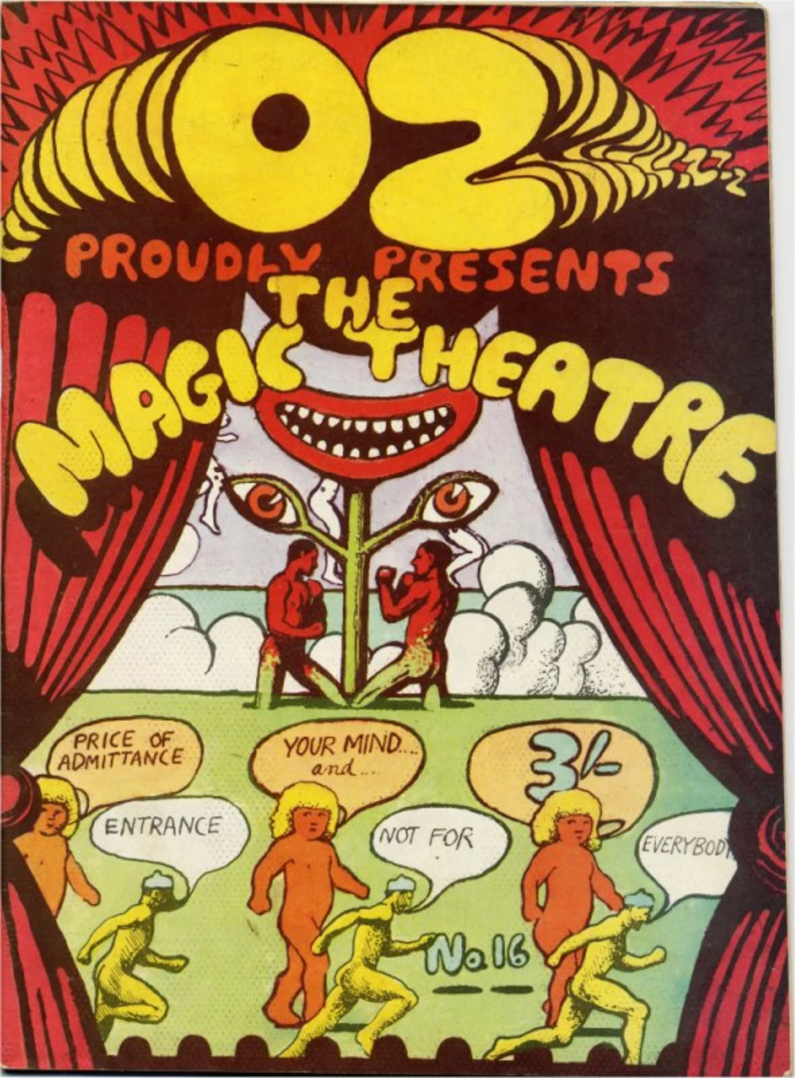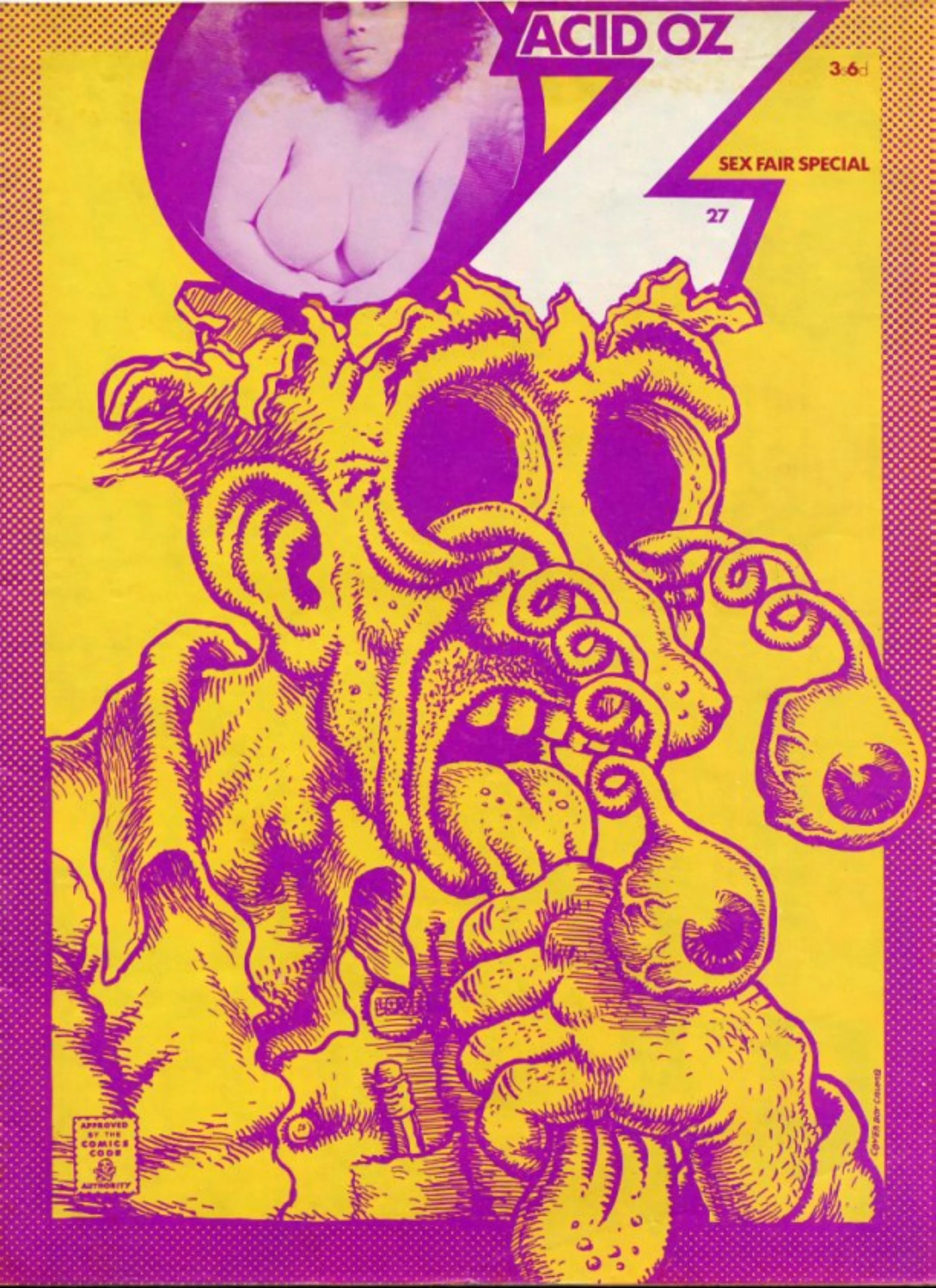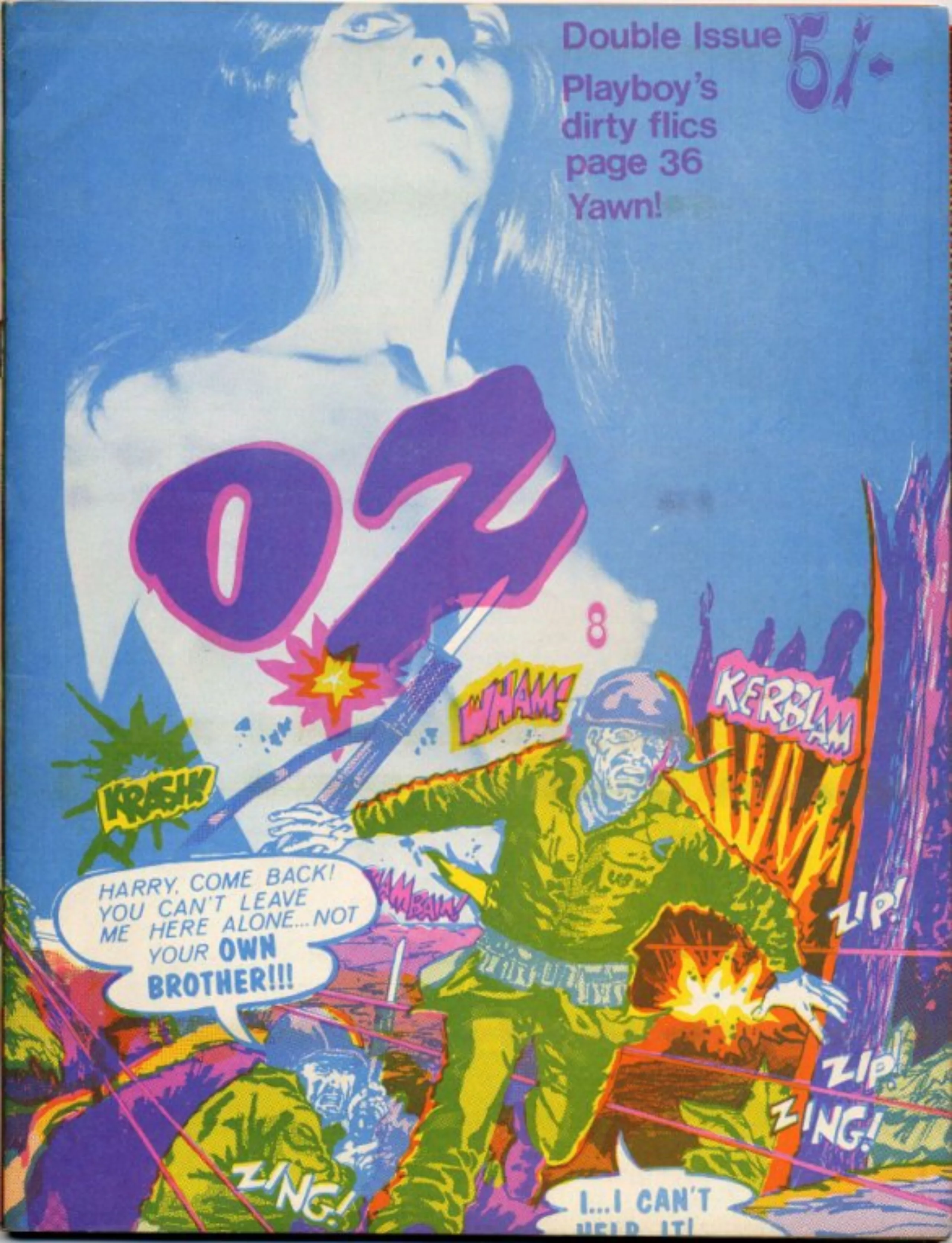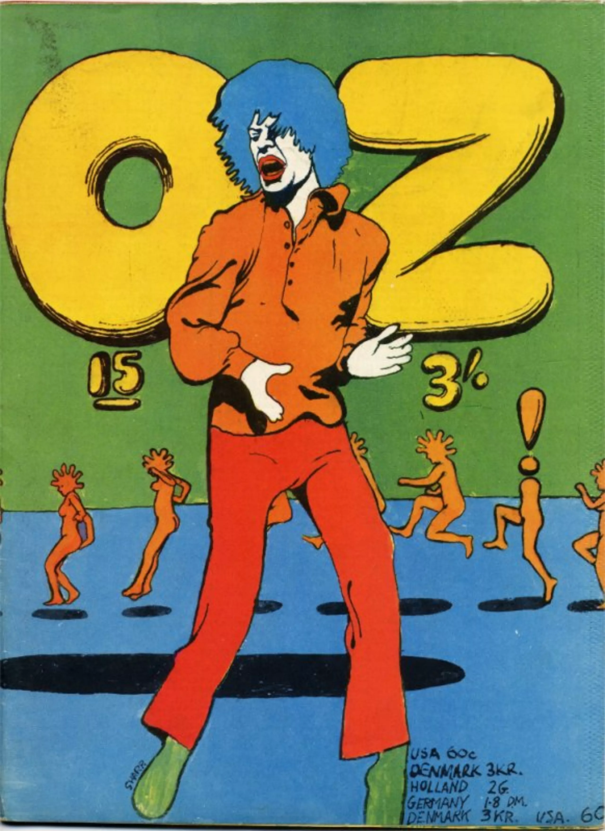 Quand certains voulaient faire la révolution avec leur voix ou leur guitare, Sharp s’armait de ses crayons et de ses pinceaux. On était au début des années 60, et Kennedy n’était pas encore un aéroport. C’est au cœur de ces années “Beatniks” que ce jeune graphiste-illustrateur australien créa le sulfureux magazine “Oz” avec ses deux compères. Leur talent se déploiera de 1963 à 1969 dans 41 numéros où ils se font un plaisir de passer au vitriol la société conservatrice.
