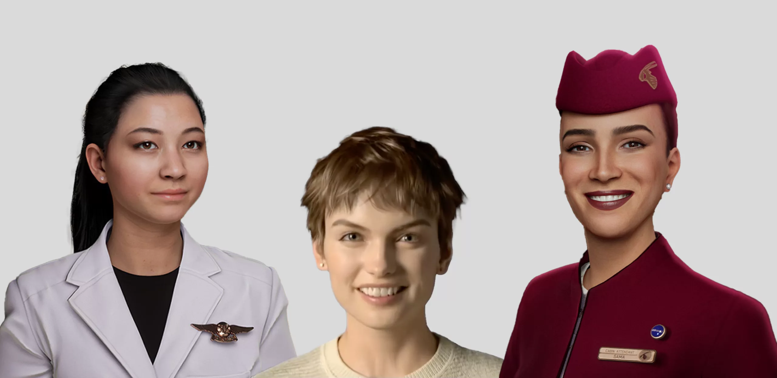 Certaines boutiques proposent d’essayer numériquement des produits, comme Nike NY avec des chaussures personnalisées, ou Sephora qui permet d’essayer du maquillage dans un salon virtuel. Qatar Airways a récemment présenté son assistante Sama 2.0 connectée à l’IA (créée par l’agence Uneeq Digital Humans), la première hôtesse de l’air virtuelle. Du côté des cosmétiques Kiehl’s, Eve assiste les clients et clientes en boutique, sur iPad.