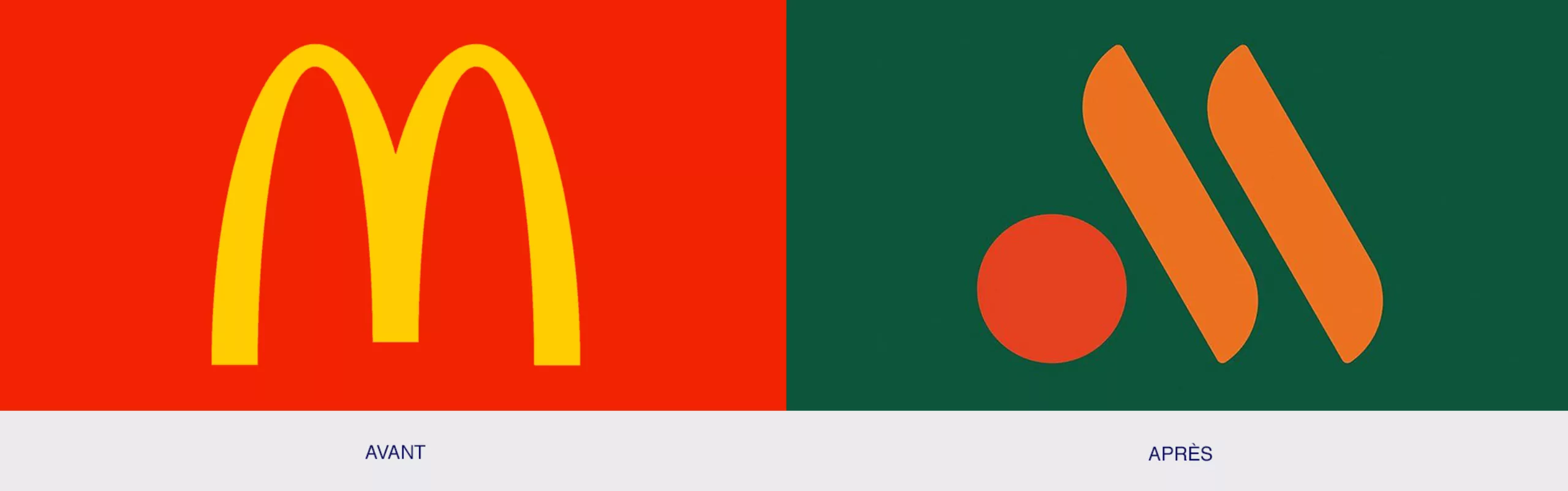Au premier abord, on pourrait percevoir une silhouette de lettre M, une seconde lecture pourrait laisser supposer que l’on a affaire à deux frites et une goutte de ketchup.