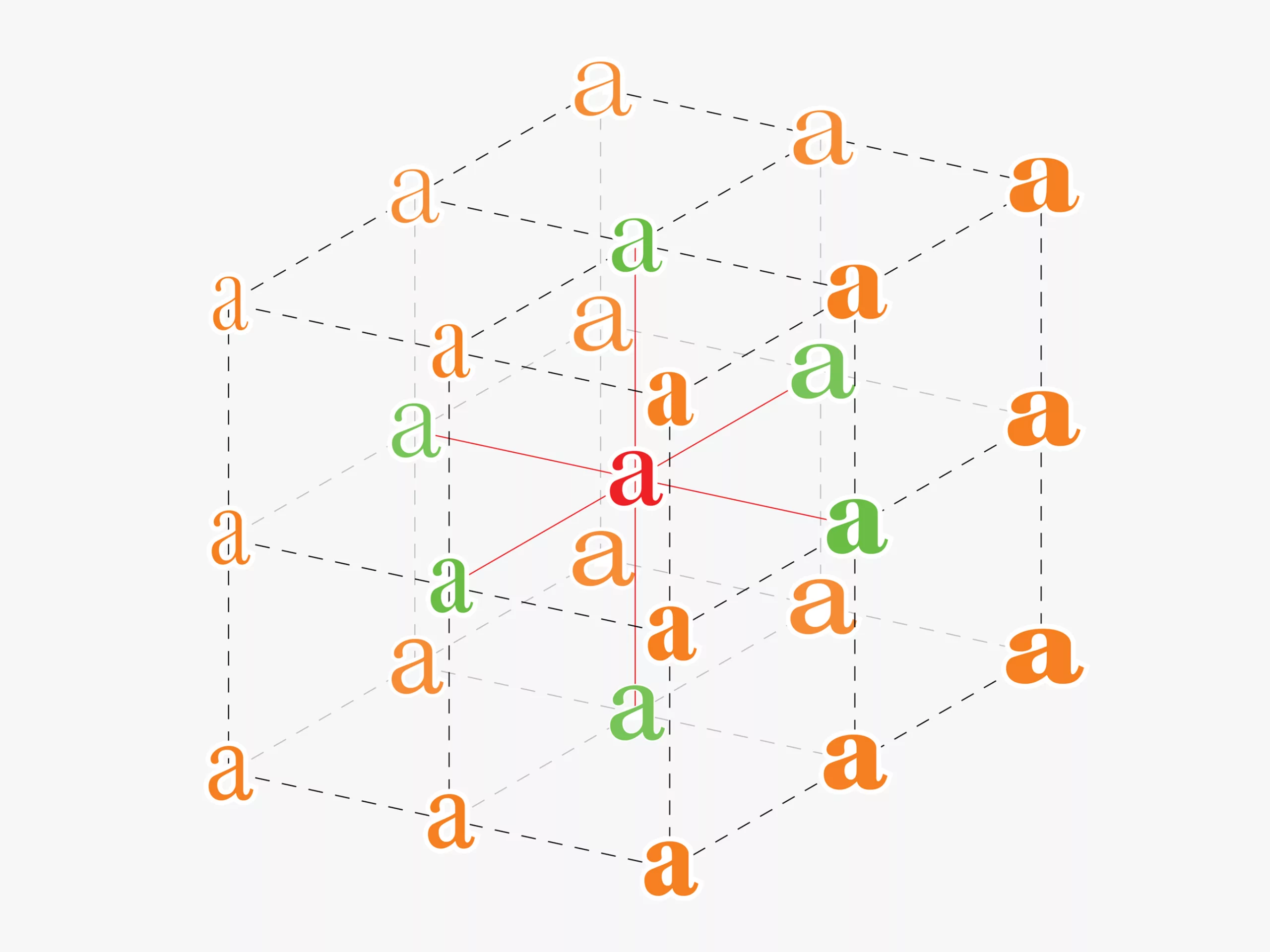 Par exemple sur cette illustration extraite du compte Medium du typographe John Hudson (Tiro Typeworks), la lettre a en rouge est le glyphe de référence. Les a verts sont les 5 extrêmes définis par les 5 axes, permettant la variation des noeuds avec plus ou moins de graisse. Les a oranges sont les dérivés des 5 axes, qui sont autant de possibilités inter-axiales d’évolutions de la lettre. Vous suivez ?