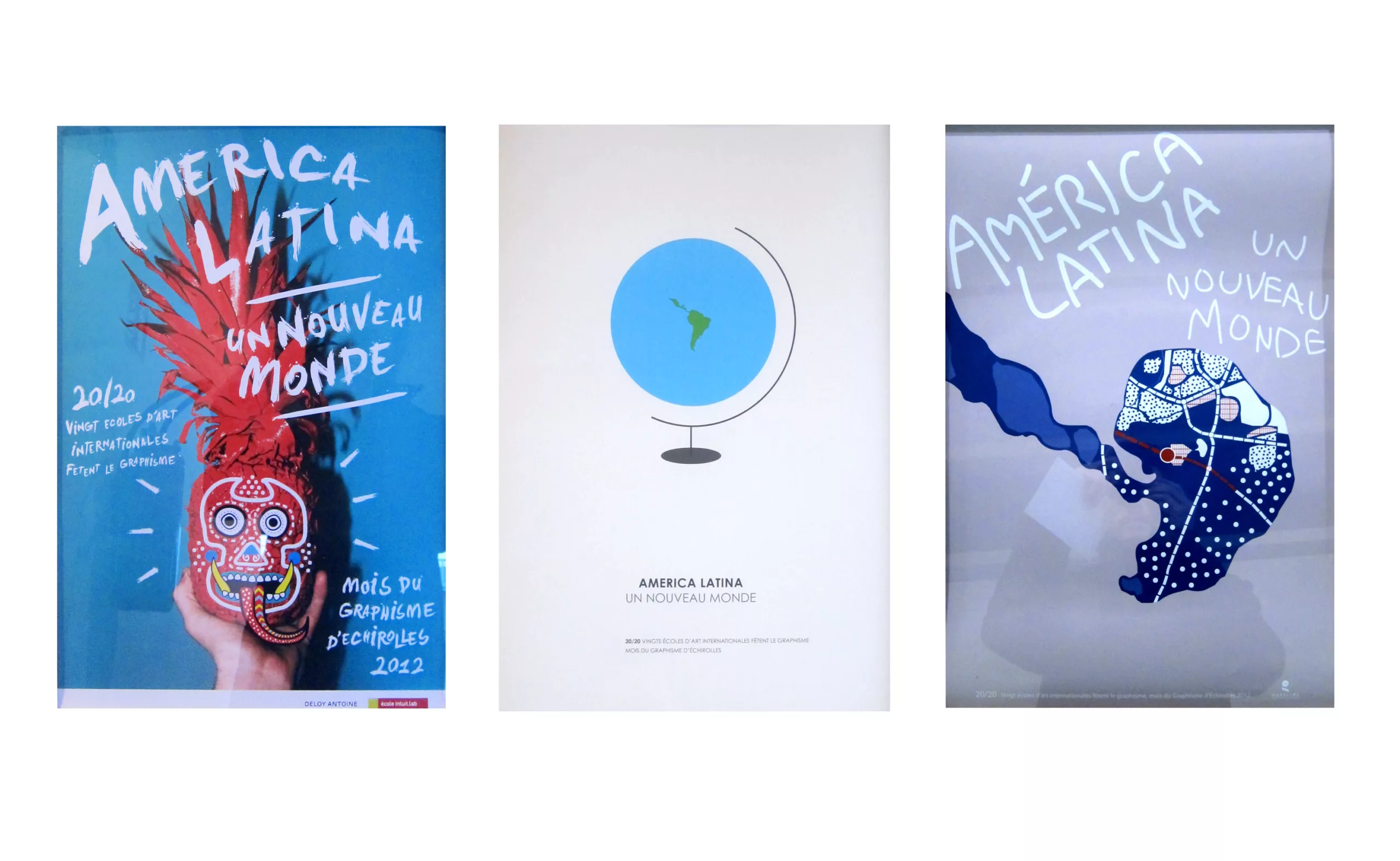 Les étudiants des Écoles d’Arts, de communication visuelle et en graphisme ont été invités à concevoir et réaliser une affiche sur le thème « AMERICA LATINA . Un nouveau monde». Ils ont traité du thème sous différents aspects : histoire, vie politique, vie sociale, culture visuelle, graphisme, architecture, musique, photographie… au moyen des techniques de leur choix. Voici un petit aperçu…