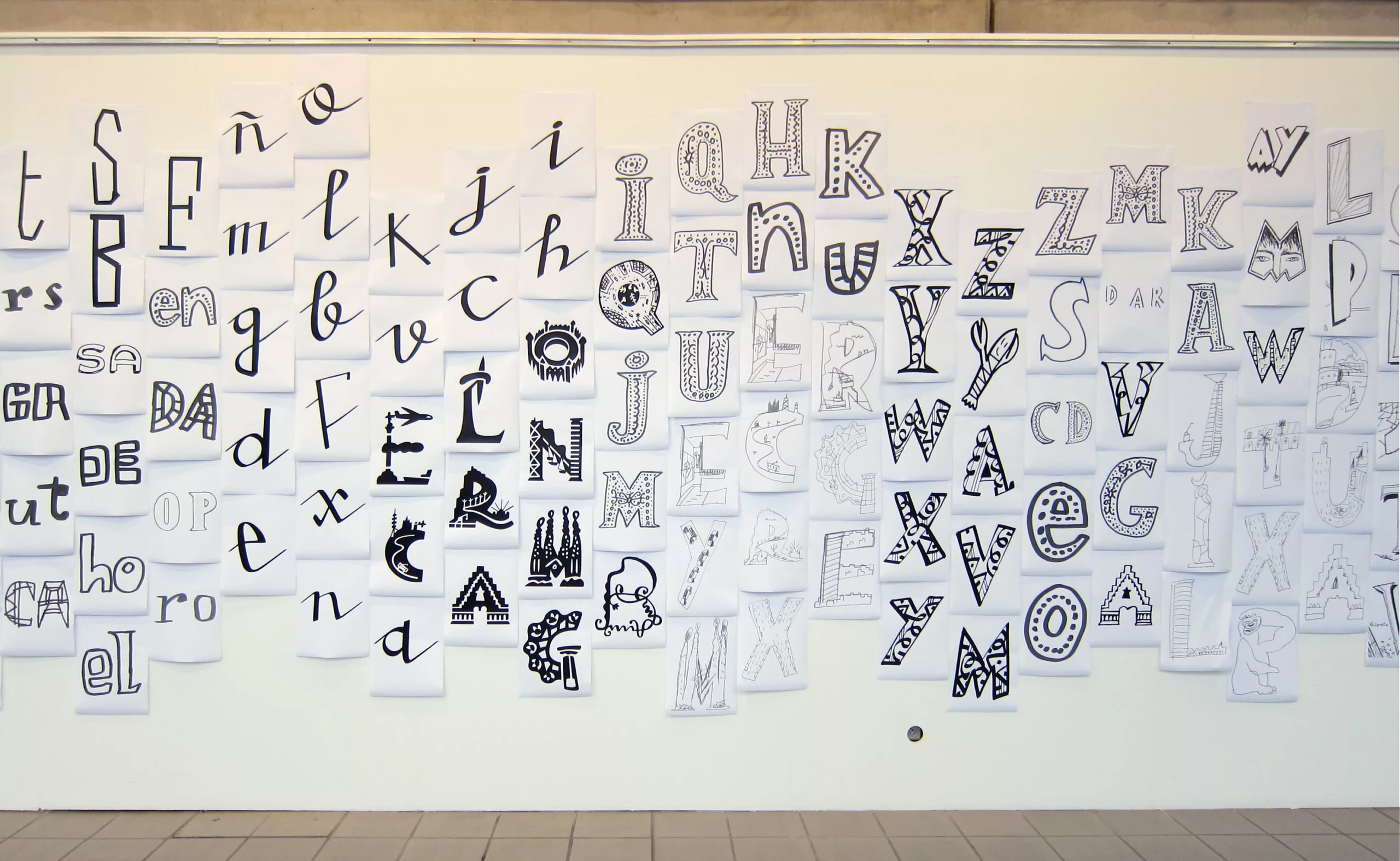 Invité d’honneur de cette année, Mariscal nous présente ses lettres monumentales et colorées, ses créations empreintes d’alegria de vivir (joie de vivre en espagnol). “Nous vivons dans un monde parfait, indiquait le graphiste. J’ai besoin de dessiner à la main pour retrouver une forme d’expression particulière, un B qui a trop mangé, un J joyeux. C’est une autre façon de s’exprimer avec passion.”