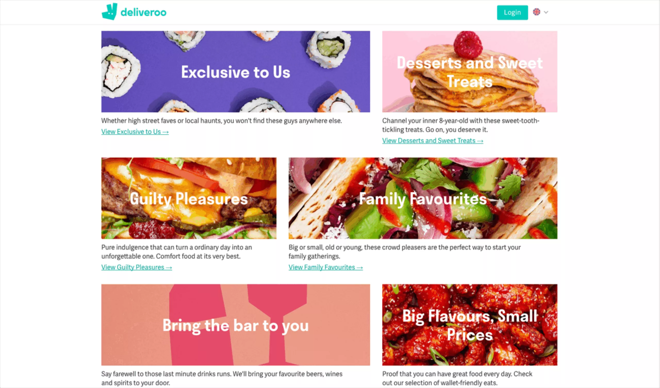 Le nouveau logo Deliveroo a poussé le bold jusque dans les photos, plongeant désormais le consommateur au coeur des aliments. Gros plans sur les aliments et des photos charnues qui sont censés mettre l’eau à la bouche. Personnellement, la vue en gros plan d’un big Mac me repousse plus qu’autre chose, mais admettons…