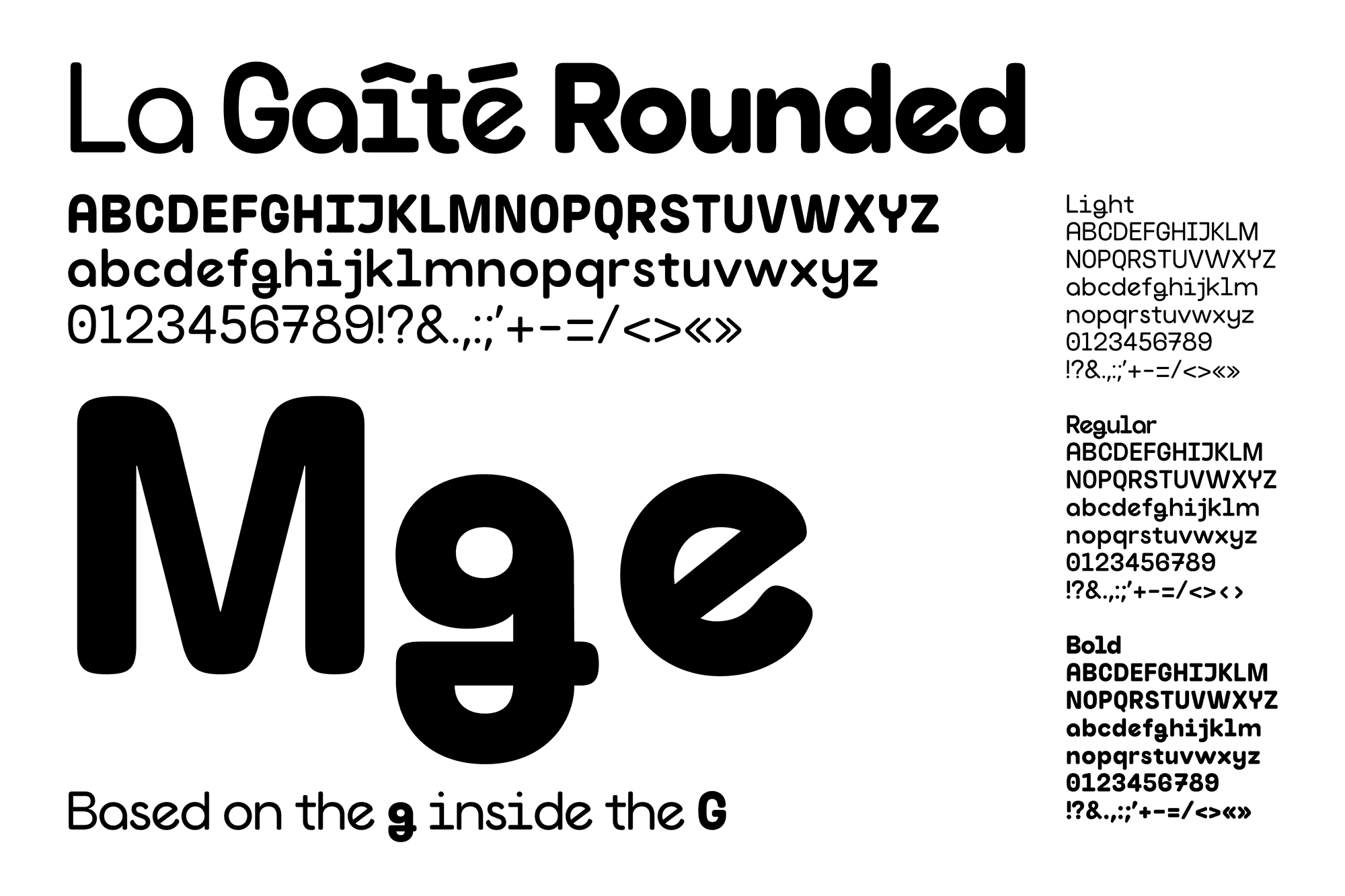 Le “Gérobase” donc – étrange symbole – qui est l’équivalent d’un arobase ou la lettre G remplace le A. Avec ce néologisme intriguant mais “catchy”, on sent l’expérience et la ruse du communicant capable d’enrober son concept graphique d’une formule accrocheuse pour titiller le client. Et le résultat est une identité sympatoche qui plaira de 7 à 77 ans ! (donc un peu gérontophile quand même) L’emblème est accompagné d’un bloc typo composé avec une typo rounded. Celui-ci à ensuite servi de base à l’élaboration d’une typographie propriétaire étendue à trois variations de graisses. Cette nouvelle identité visuelle vient remplacer la précédente qui avait été créée en 2010 par Michel Mallard à l’occasion de la réouverture du lieu. Le logotype était alors composé avec un lettrage au style « dot » en référence au pixel des images numériques.