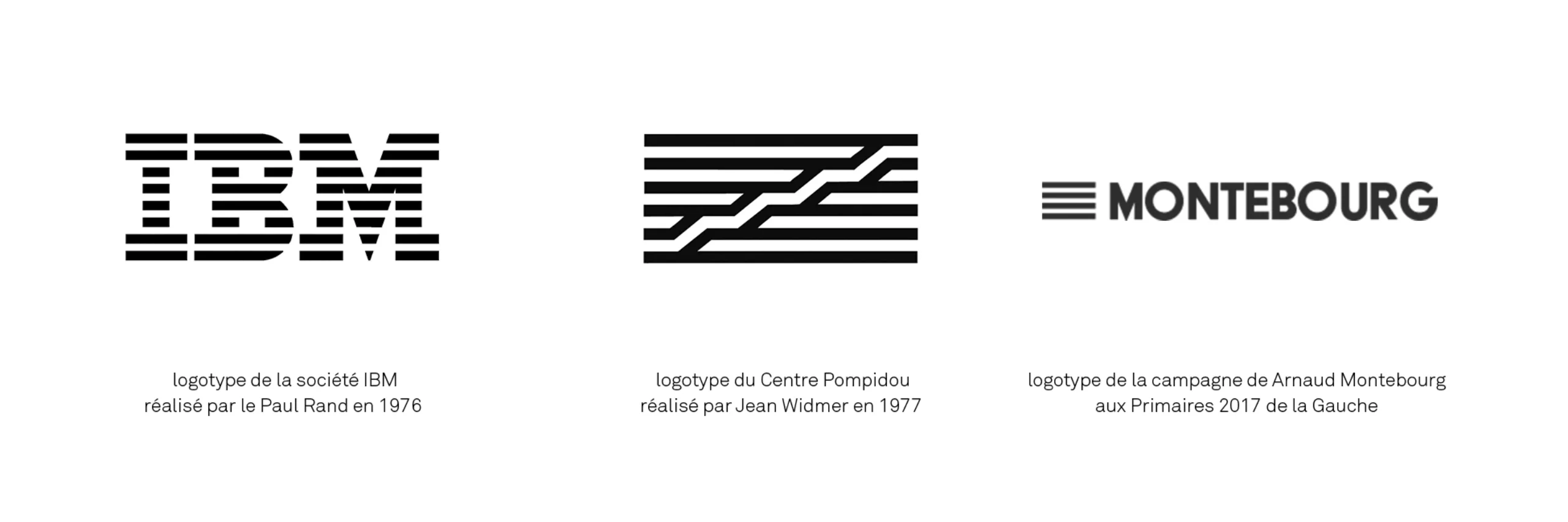 Pas du tout, se défend Yorgo, en citant l’exemple du logo réalisé par Jean Widmer pour le Centre Pompidou, dont le graphisme serait très proche de celui créé par Paul Rand pour IBM. Je vous laisse juger des similitudes éventuelles avec l’illustration ci-dessous. J’y ajoute le logo de Montebourg en bonus, mais celui d’Adidas aurait aussi très bien fait l’affaire :