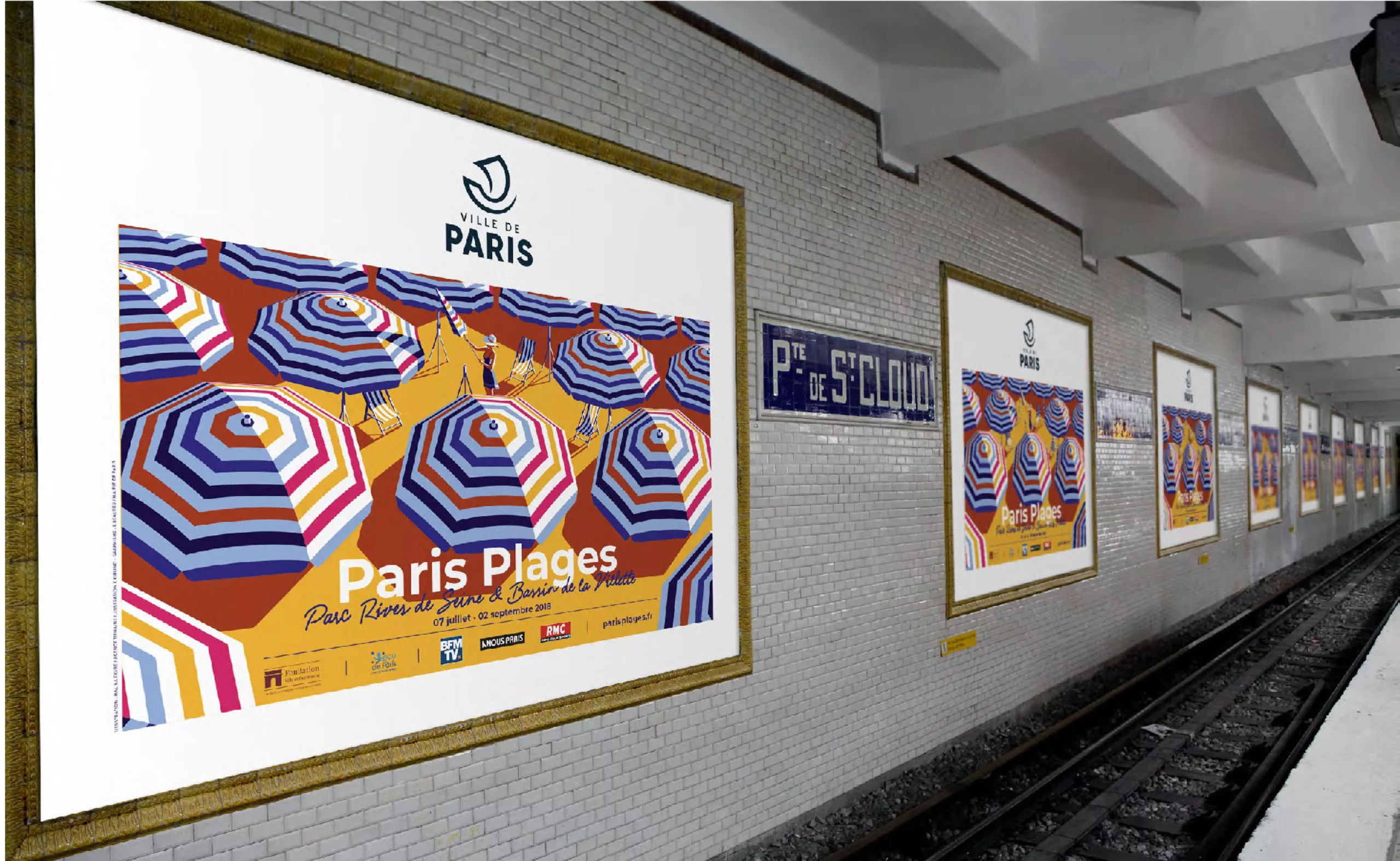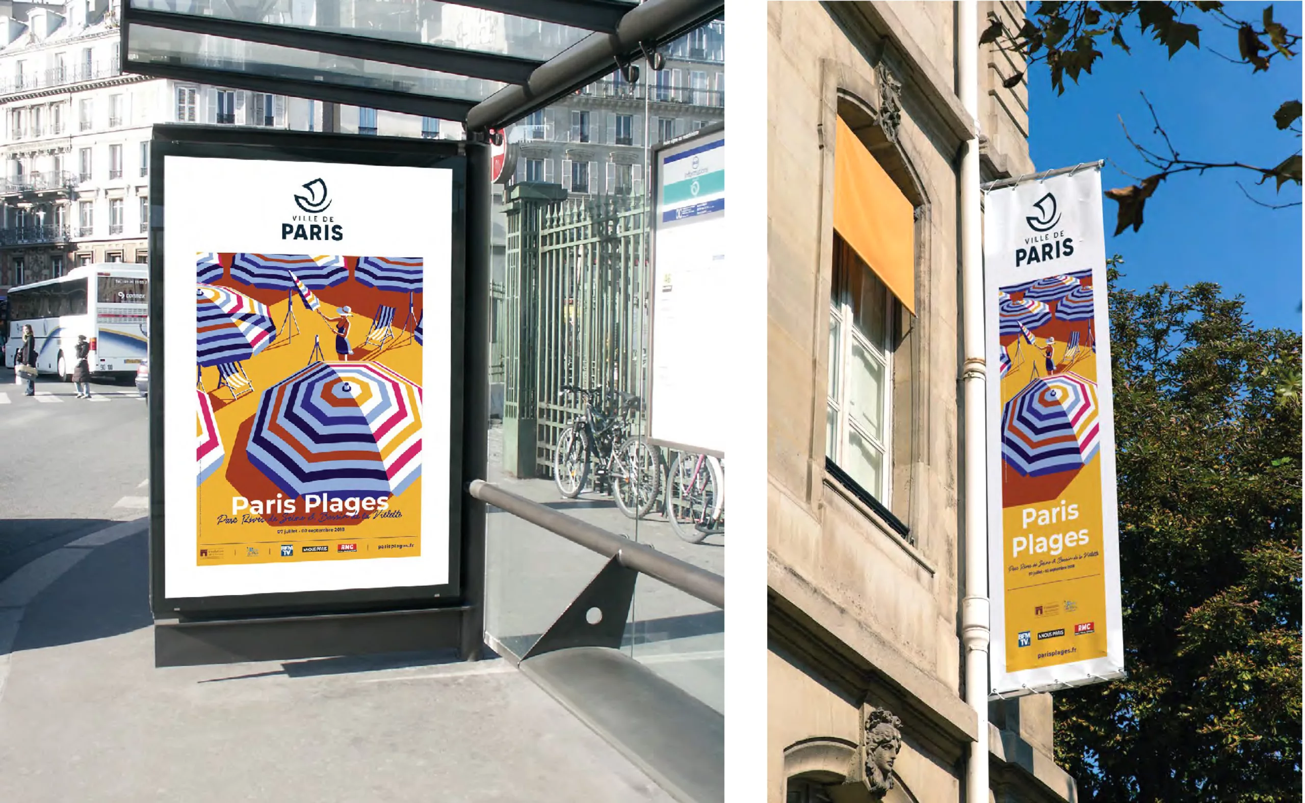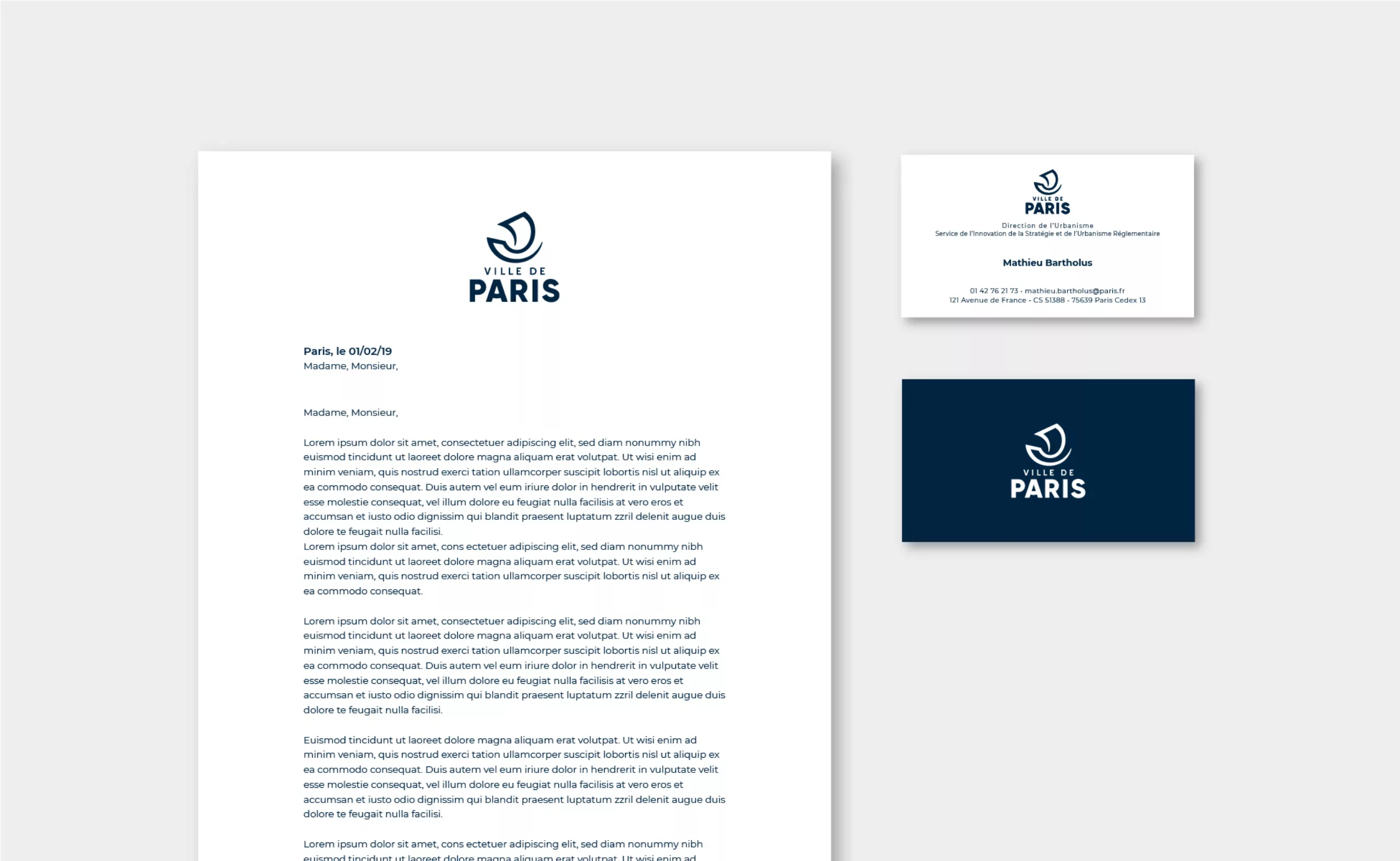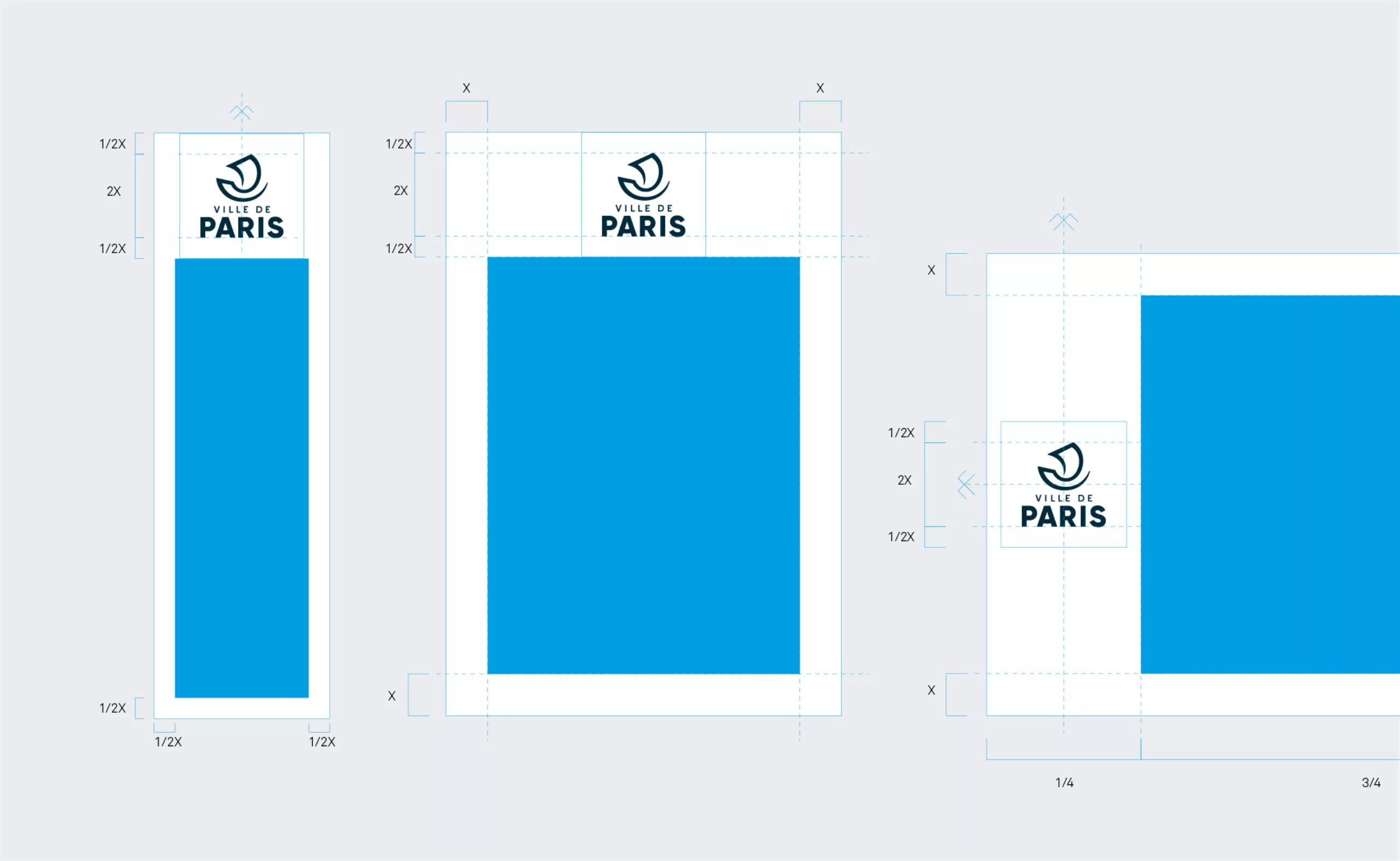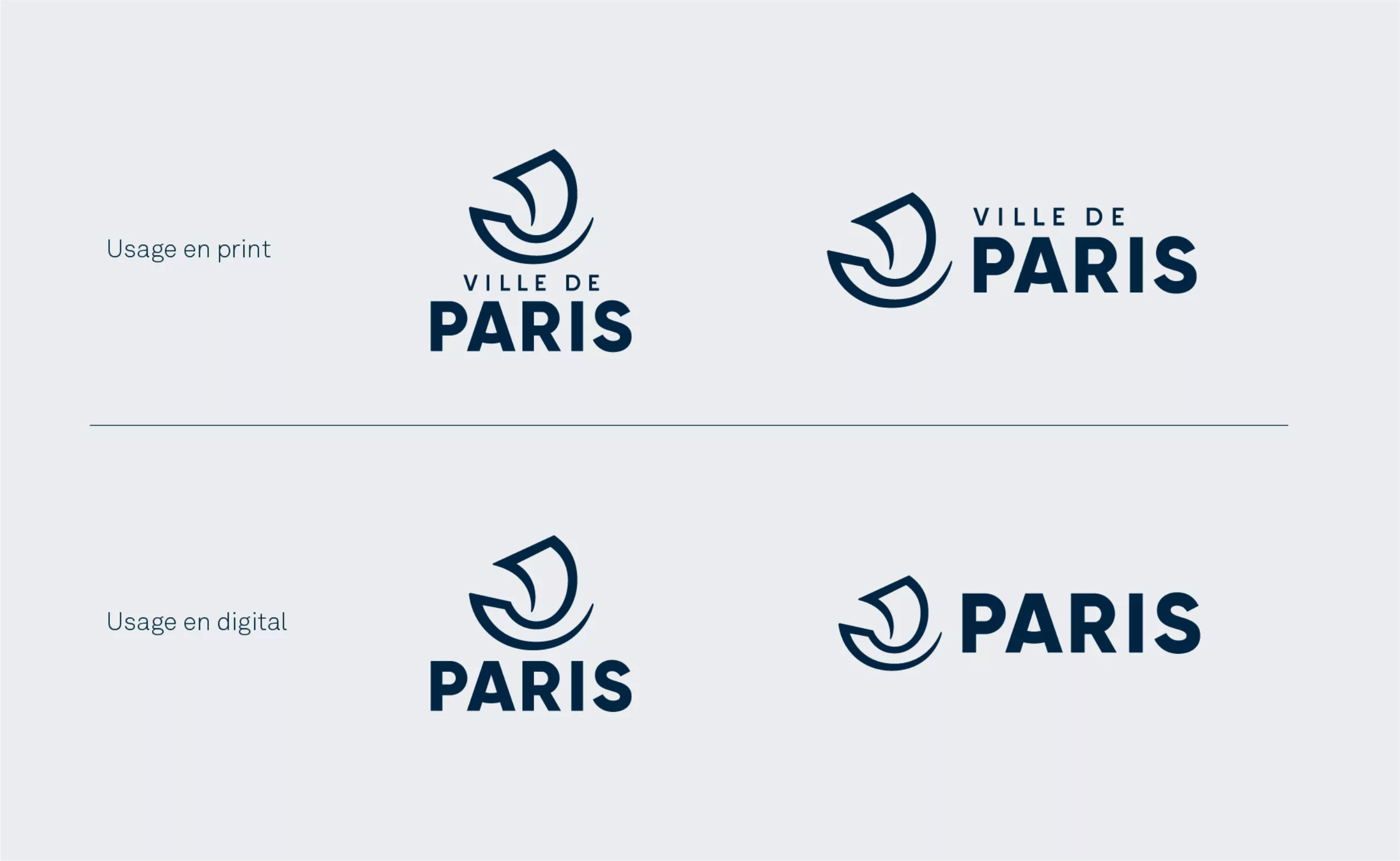 Notons ensuite que le logo abandonne l’expression « Mairie de » au profit de « Ville de Paris » (en print) ou tout simplement « Paris » (en digital).