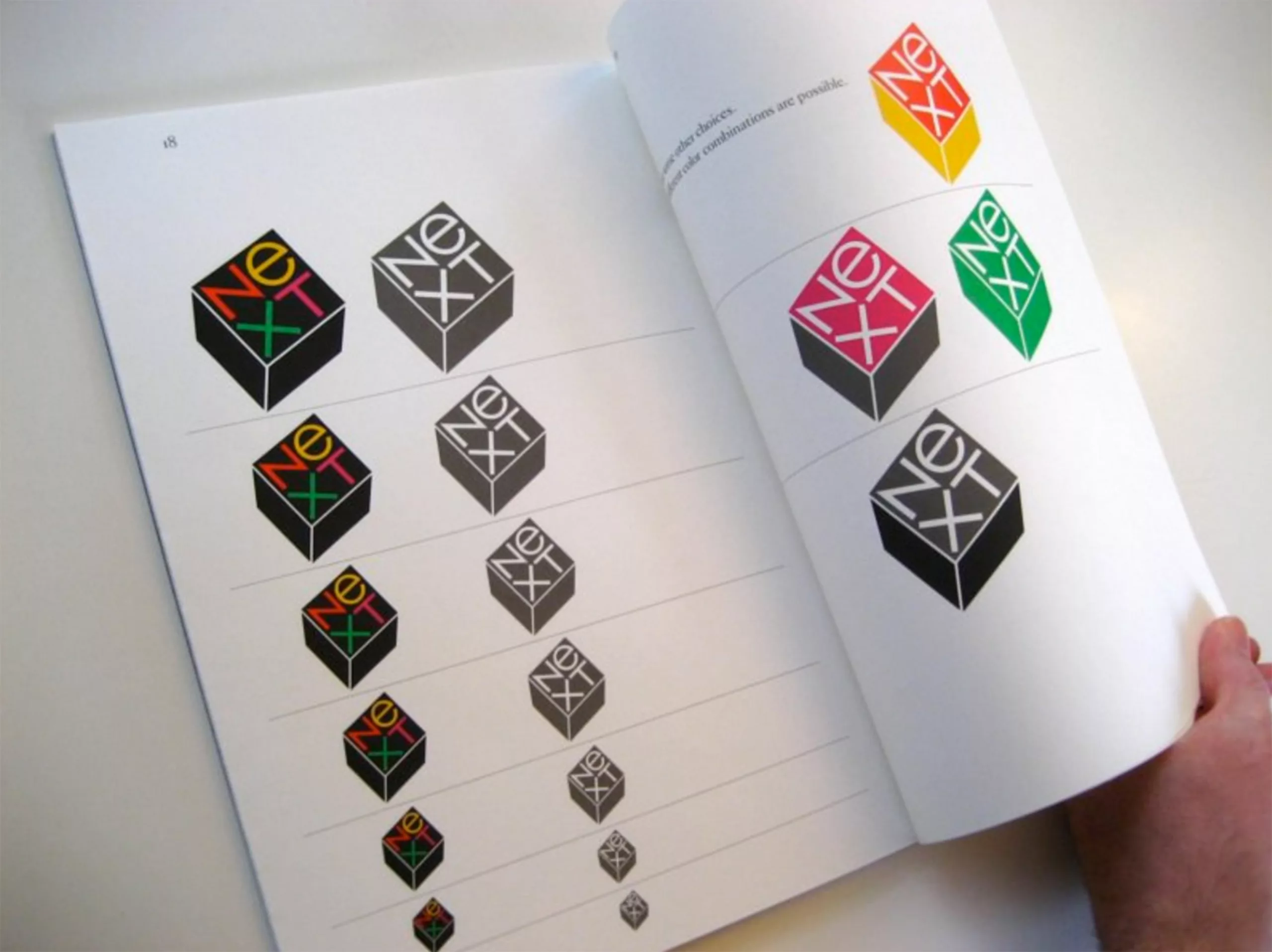 Pour la petite histoire, le cube du logo était d’abord posé droit sur le plan, sans axe oblique. Dans son dossier, Rand avait ajouté ce qui s’apparenterait aujourd’hui à un mock-up d’enveloppe, avec un autocollant du logo mis de biais. Pendant l’impression du rapport, quelqu’un lui demanda « Pourquoi ne les fais-tu pas tous comme celui de l’enveloppe ? ». Cette simple modification est l’élément clef qui acheva de convaincre Steve Jobs, tellement admiratif du travail de Rand qu’il réimprima le dossier pour le diffuser.