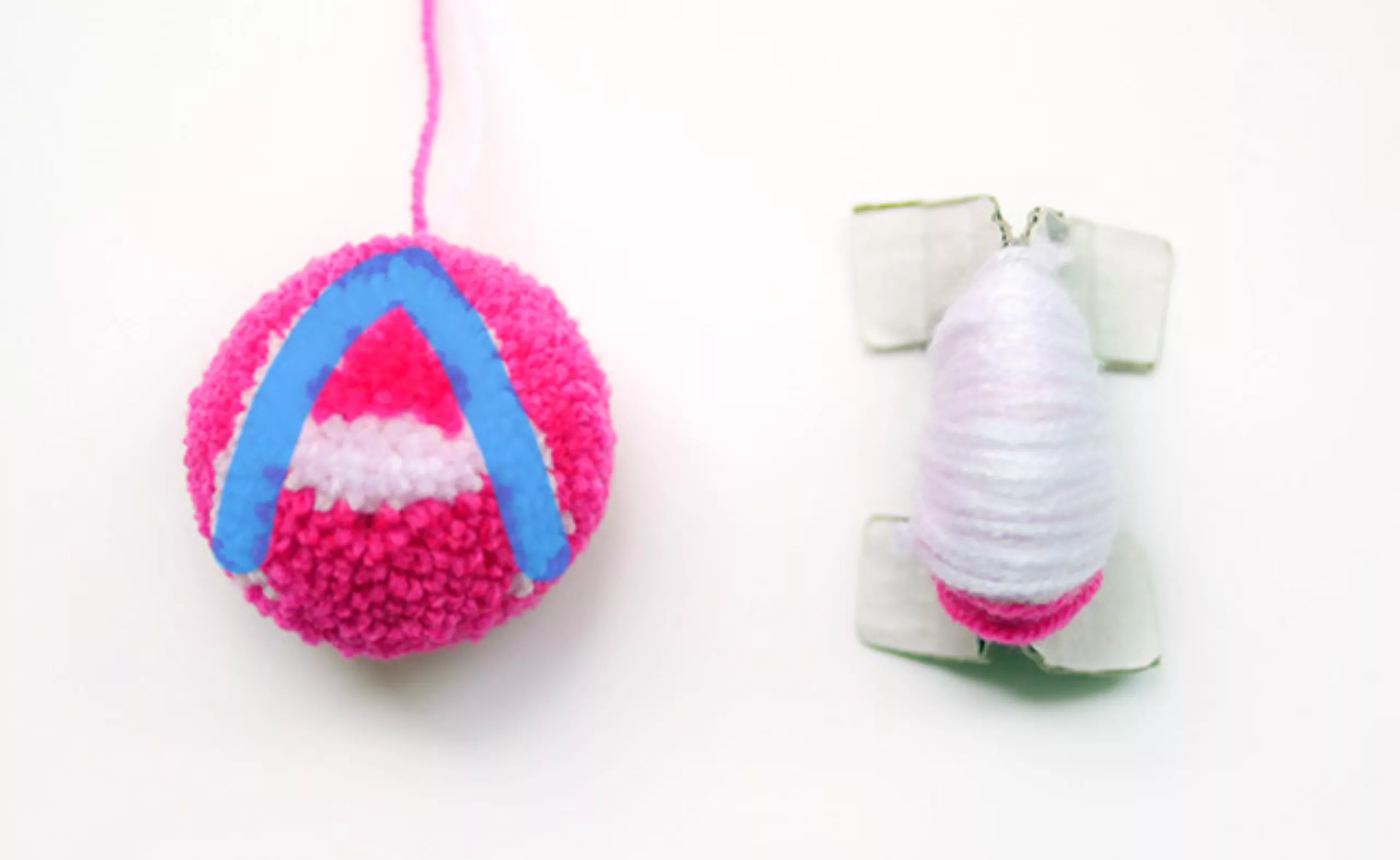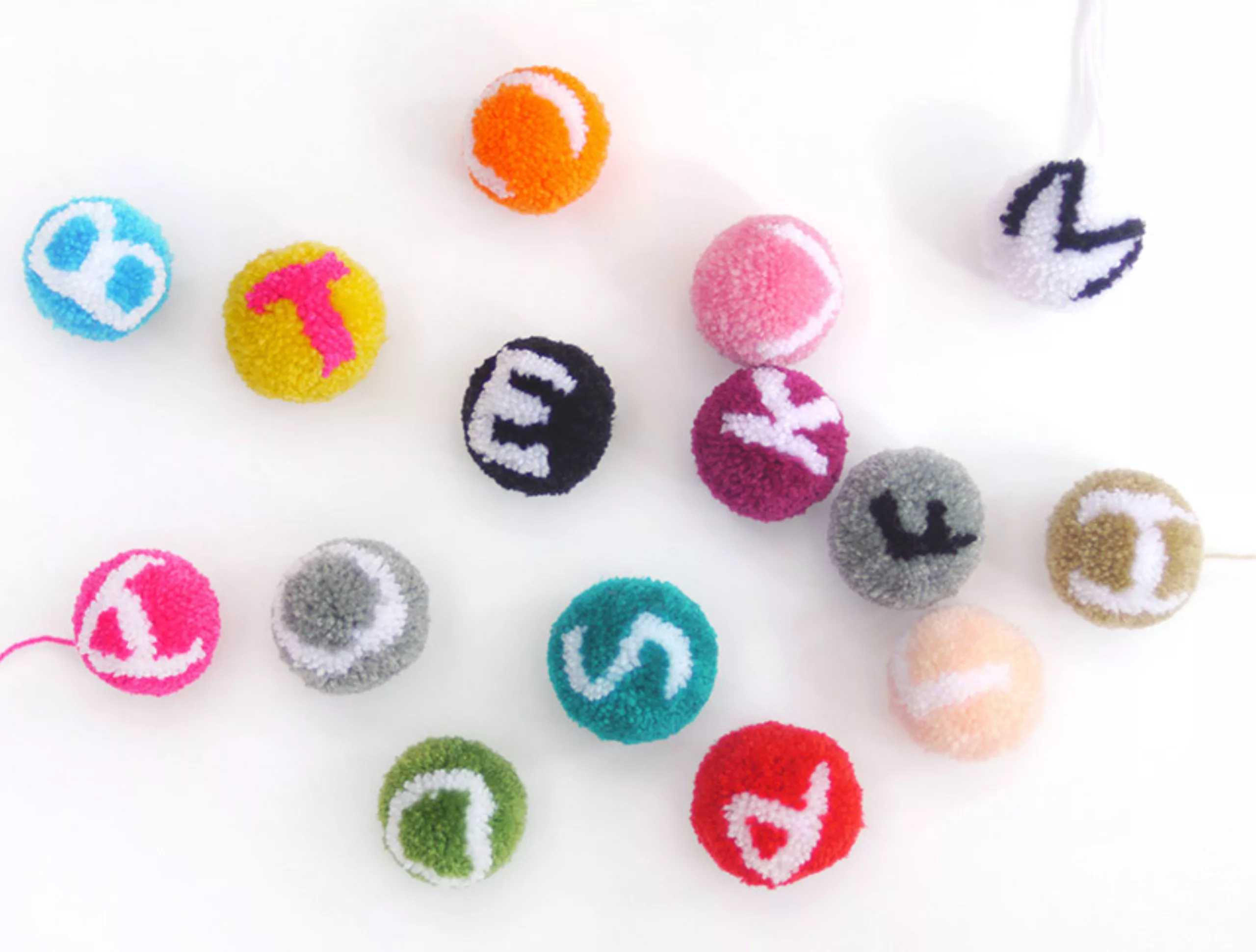 Lorsqu’on aime jouer avec la typographie, qu’on a une âme d’enfant, et une super mamie qui fait du tricot, alors on peut faire des pompons typographiques !