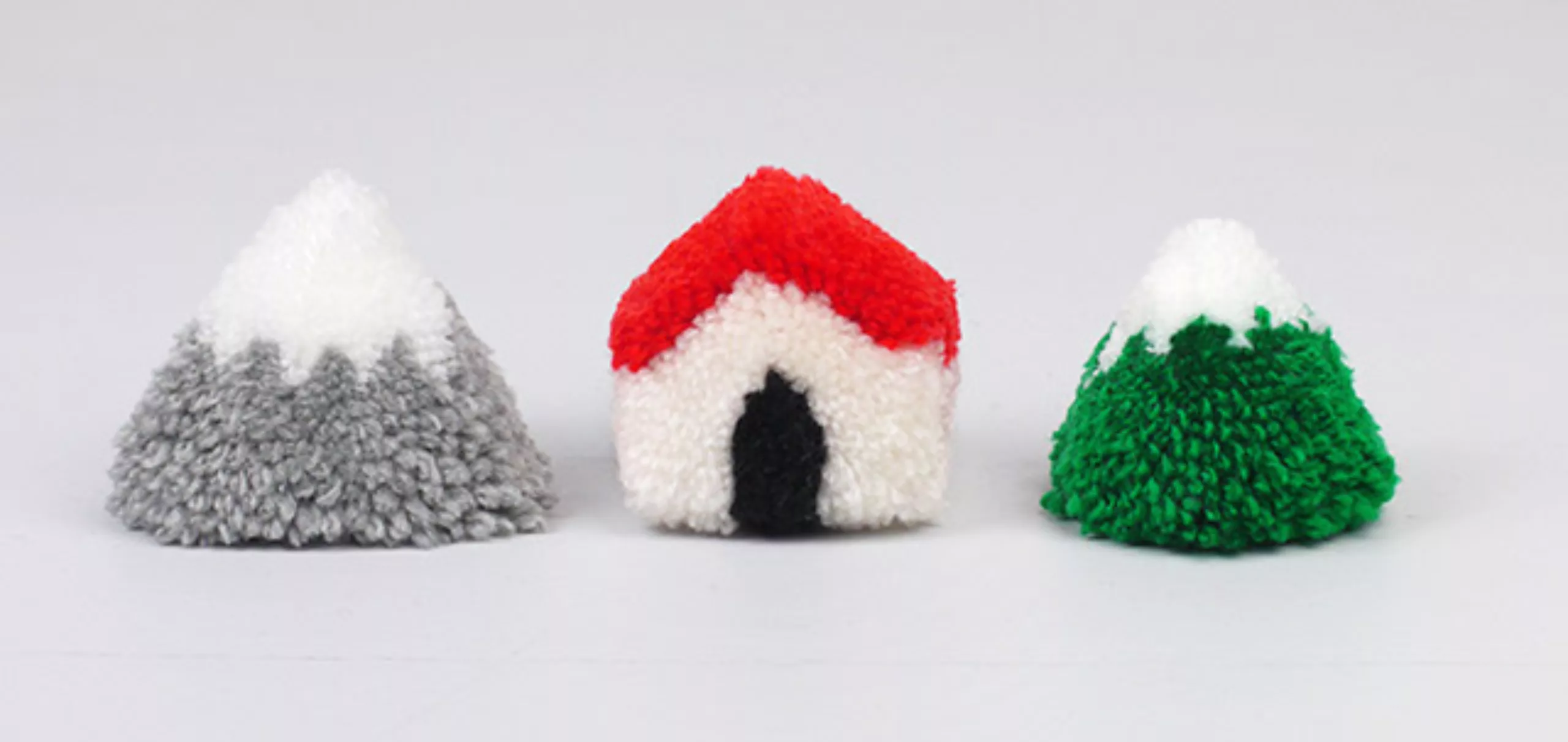Pour ceux qui n’aurait plus en tête les bases de la fabrication des pompons, il s’agit d’enrouler de la laine autour d’un bout de carton en forme de “u”. ( cf: la démo en vidéo ).