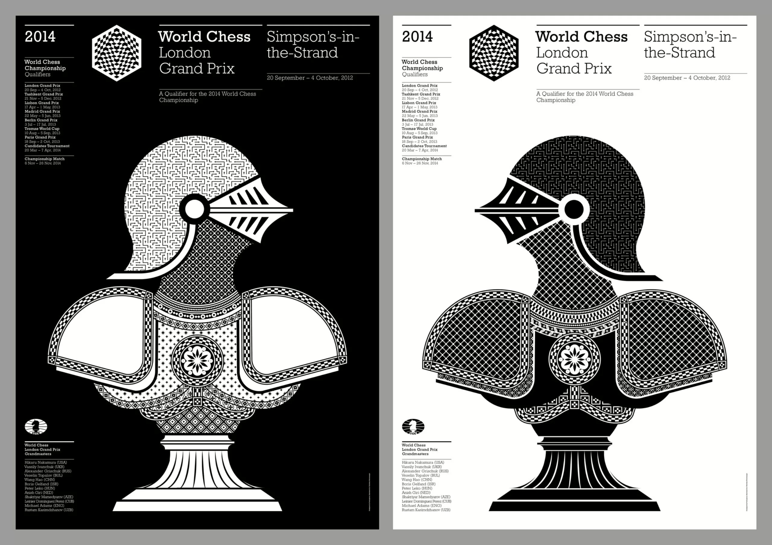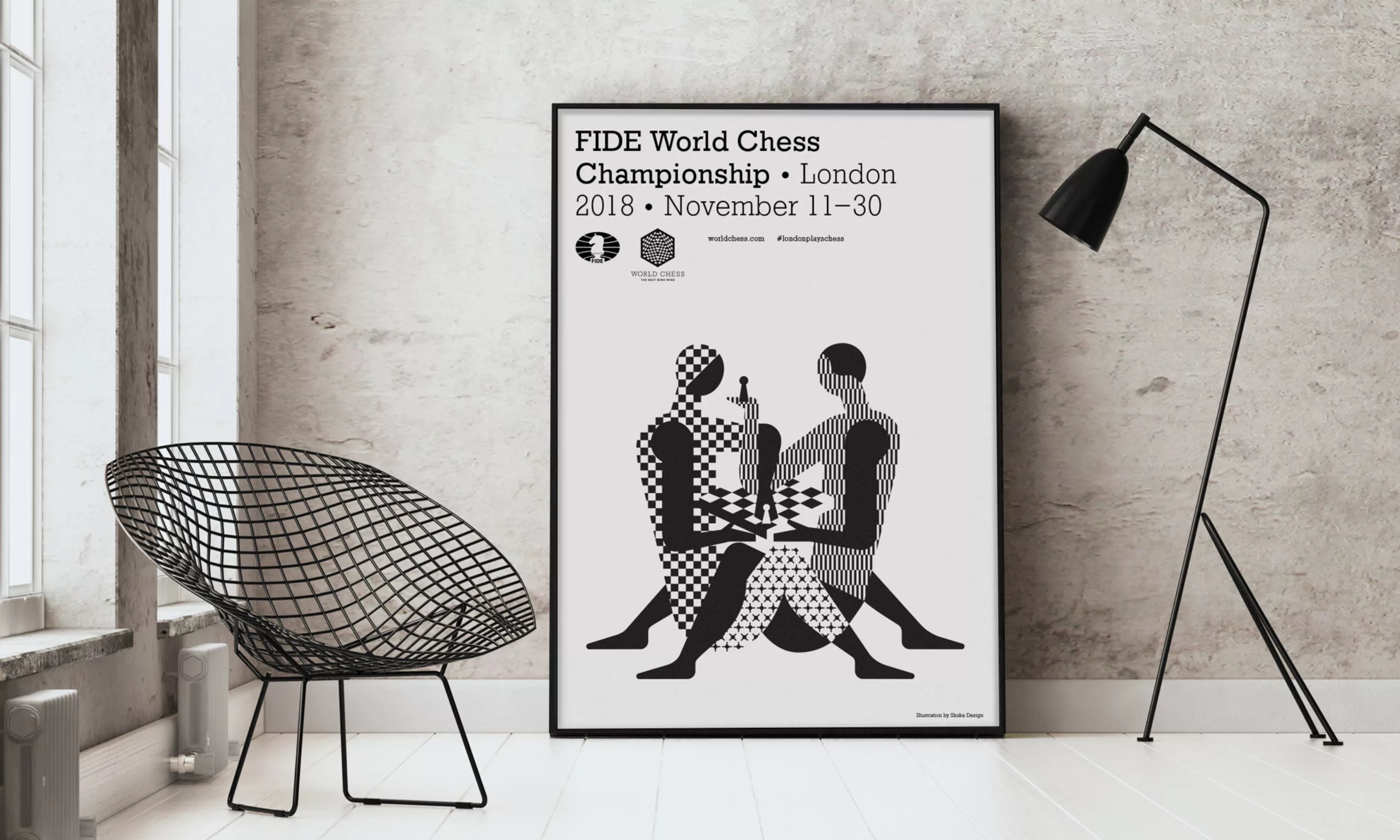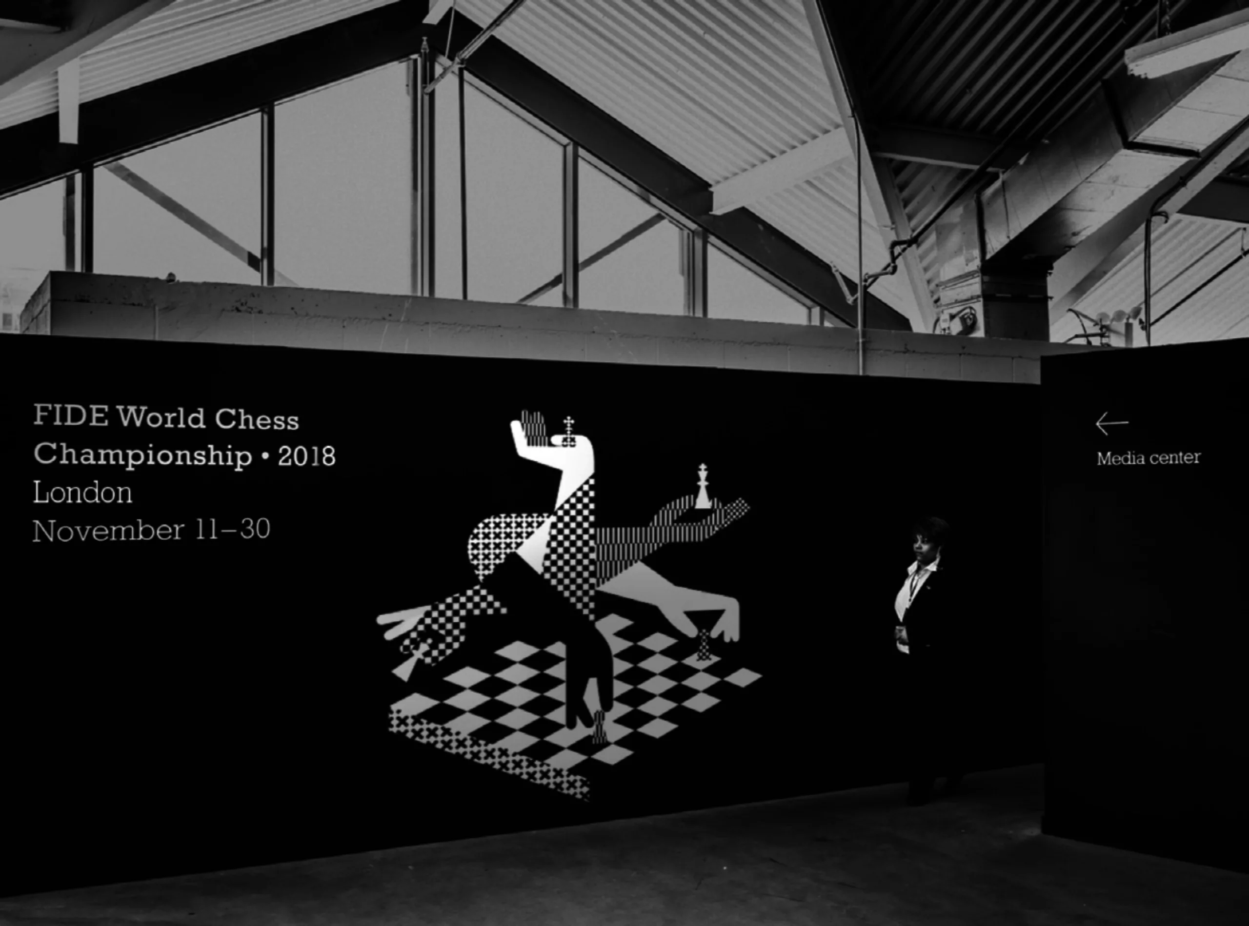 En 2016, l’agence avait repris les “reines” (blague) en proposant de nouvelles affiches pour l’édition de New York à partir du délicieux travail de Pentagram, à qui l’on doit l’identité du championnat depuis l’acquisition des droits par l’entrepreneur Andrew Paulson, en 2011. Bâtie en noir et blanc dès son origine, couleurs de contraste et d’opposition qui reflètent l’état d’esprit du jeu, l’identité du “World Chess” avait été déclinée jusque dans le design d’objet avec la création de tables et d’espaces de jeu.