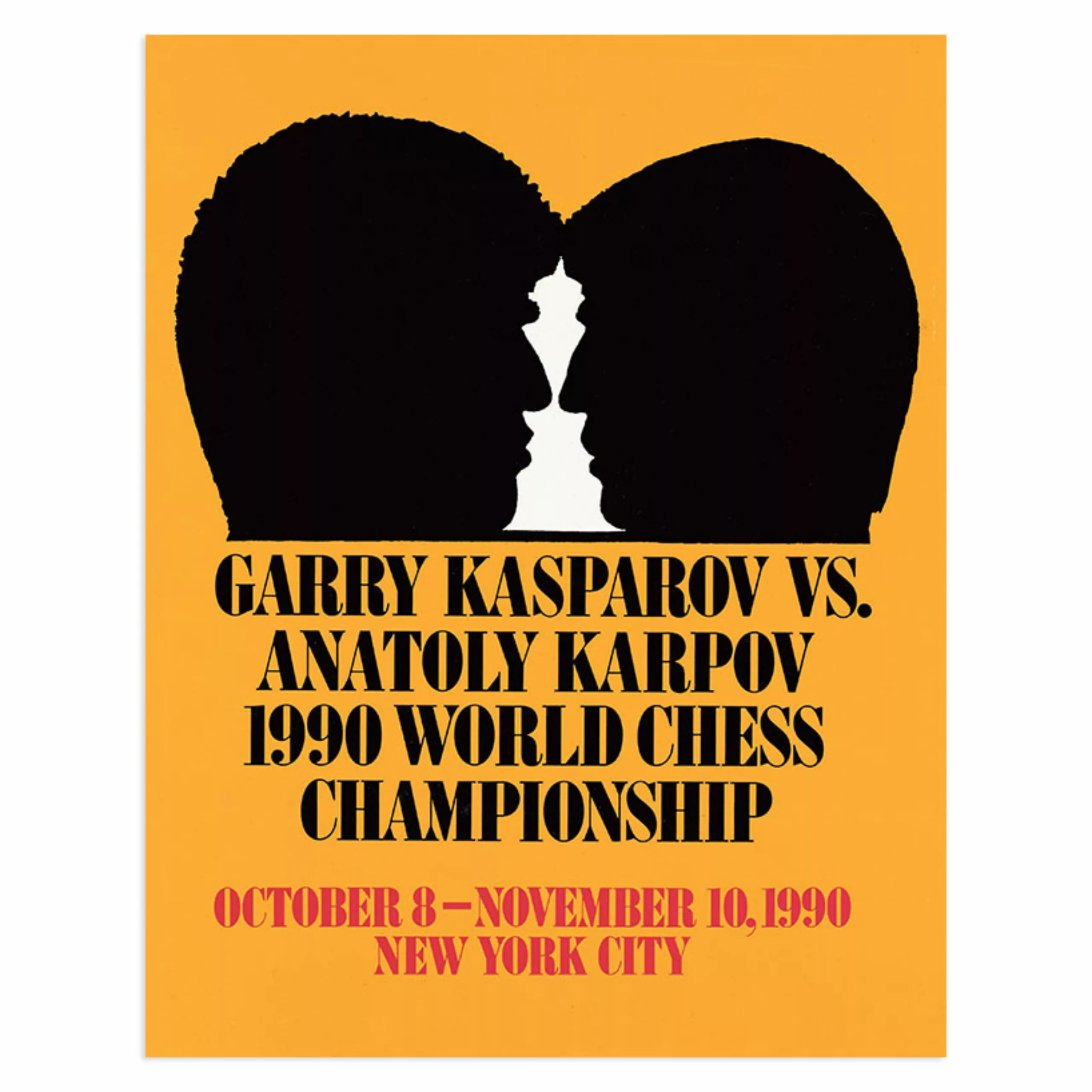 Dans l’esprit “affiche coup de poing” cela nous fait un peu penser à celle imaginée par George Lois en 1990 dans laquelle les profils de Kasparov et Karpov révélaient le Roi. Un événement qui marquera longtemps nos esprits car, comme l’a dit Coluche, “si la victoire est brillante, l’échec est mat.