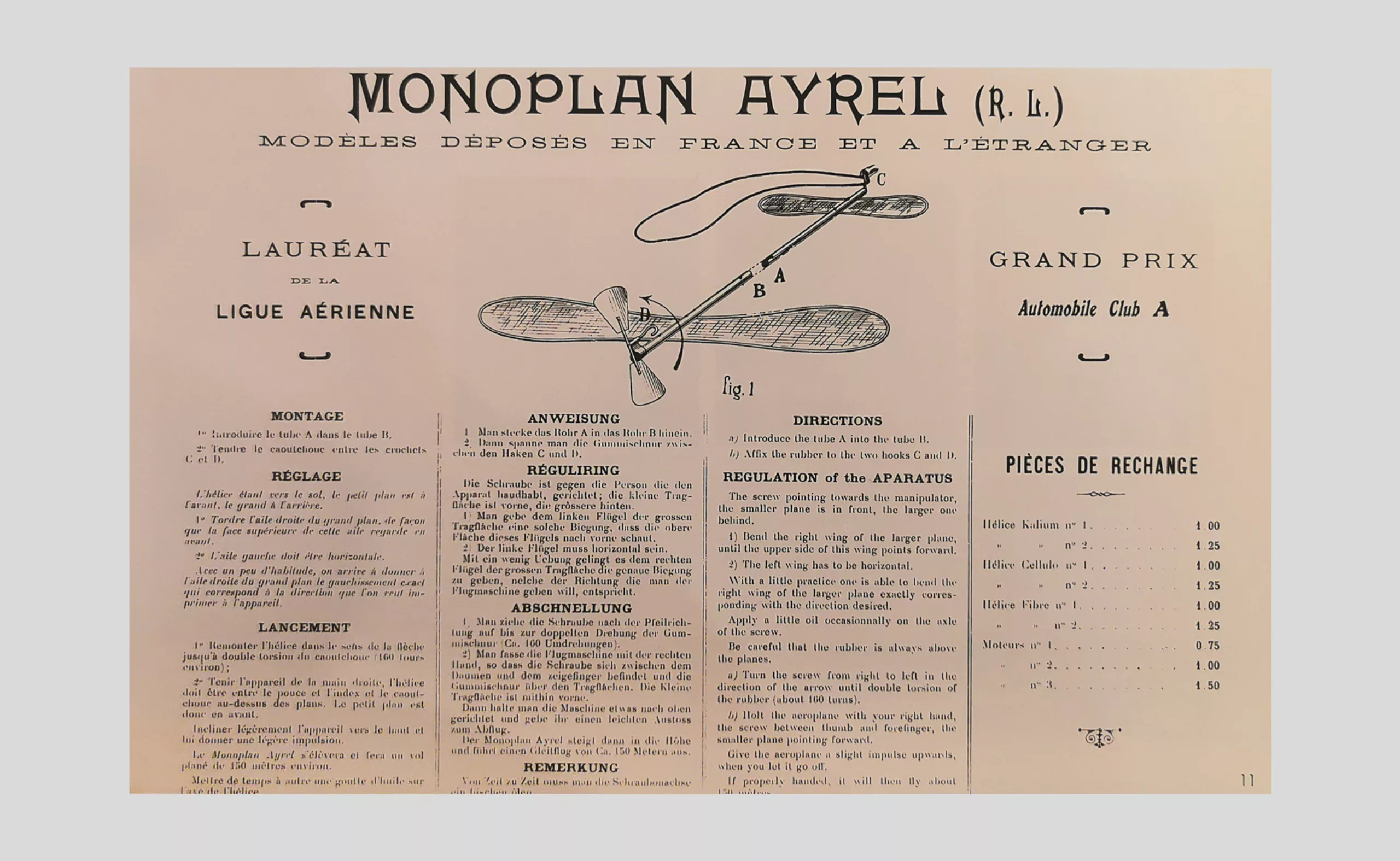 Son goût pour l’ingénierie ne naît pas lors de sa transatlantique, puisqu’à 14 ans déjà il conçoit et dépose un brevet pour l’Ayrel (RL comme ses initiales), un petit avion volant avec deux hélices montées sur élastique et 150 m d’autonomie, qu’il dessine et dont il fait aussi la promotion avant de le vendre au Louvre et dans des magasins en France et à l’étranger. Les revenus de cette “affaire dont il était l’ingénieur, le manufacturier, le vendeur et le publicitaire” lui permettent non seulement de passer de très belles et longues vacances, mais aussi de réaliser que “le design, l’inventivité et l’entreprise peuvent être amusantes et rentables”.