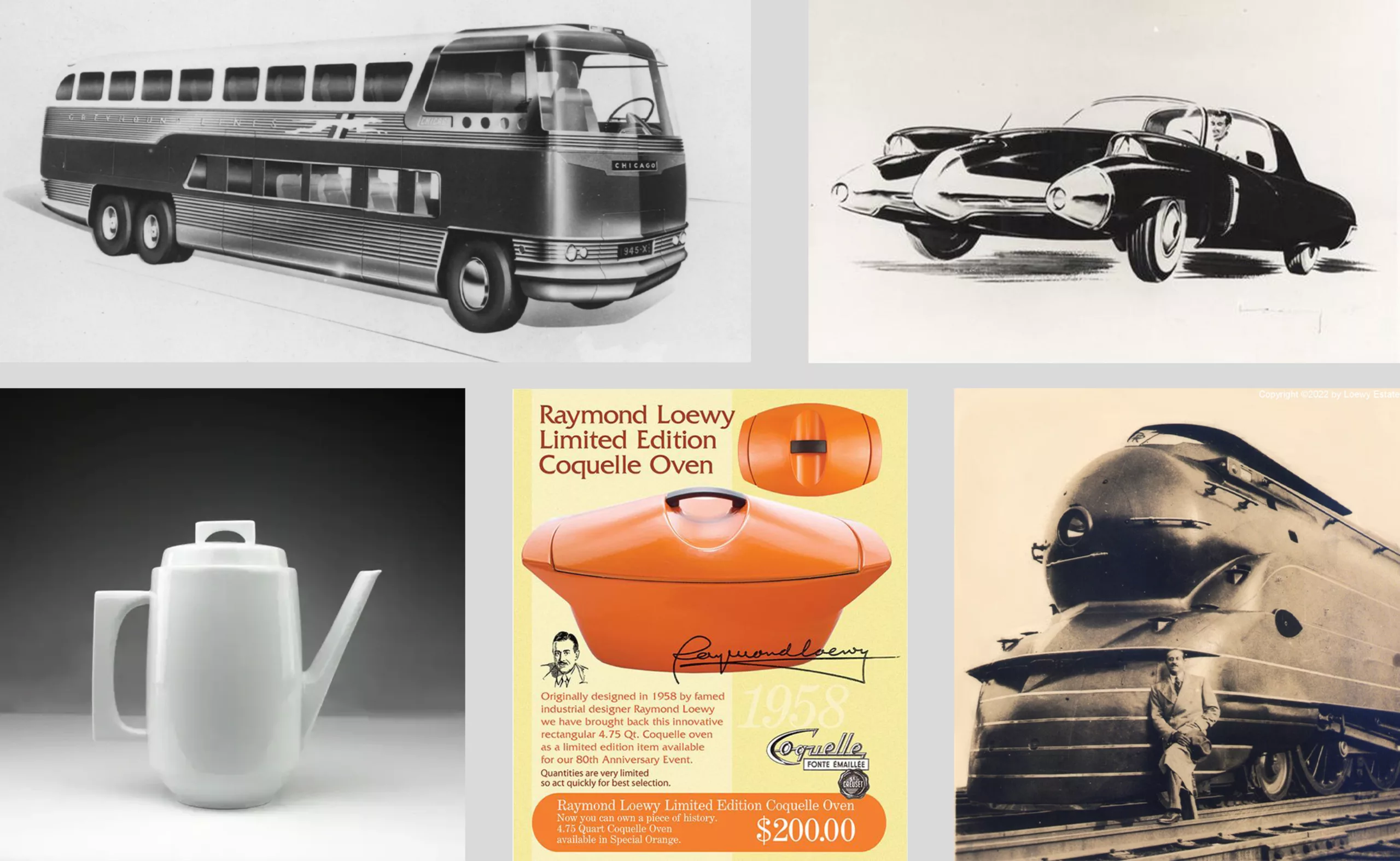 Après 4 ans dans les tranchées où il a d’ailleurs redessiné son uniforme -qu’il trouve laid- Loewy quitte la France en 1919 à 26 ans sur le paquebot France, après avoir perdu ses deux parents, morts de la grippe espagnole la même année. Son premier frère est déjà aux États-Unis, le second est exilé au Mexique, et Raymond veut tenter le rêve américain. Sur le France, il dessine, vend des portraits et se fait remarquer : on lui suggère de faire du design industriel, alors qu’il n’a aucune idée de ce que c’est, et que la profession telle qu’on la connaît aujourd’hui existe à peine. On parle de l’industrial design depuis 1919 aux États-Unis (même si le terme kôgyô-zuan (industrie + dessin) existe déjà depuis 1880 au Japon, pays précurseur dans ce domaine).