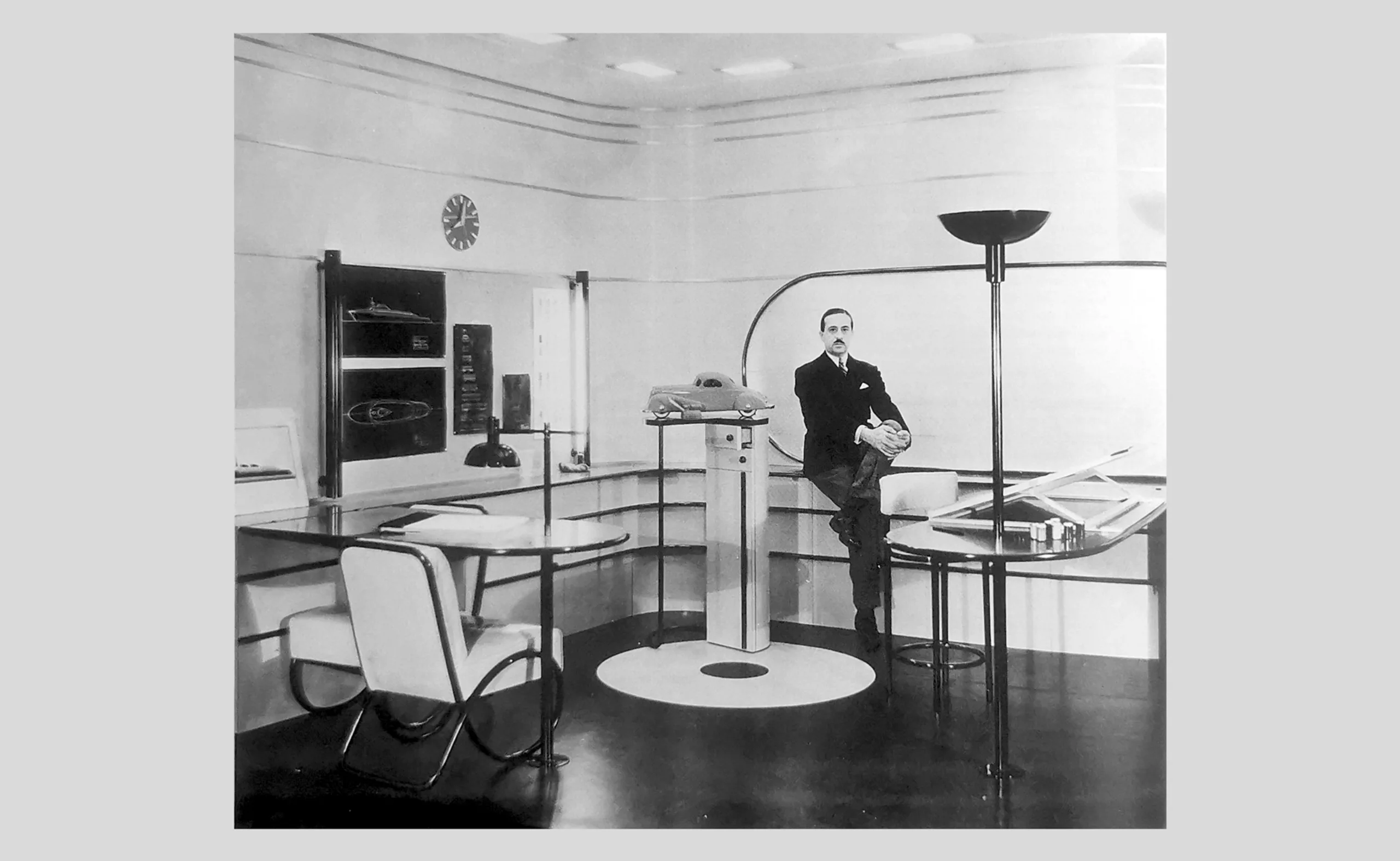 Raymond Loewy dans ses bureaux reconstitués au MoMA, en 1934
